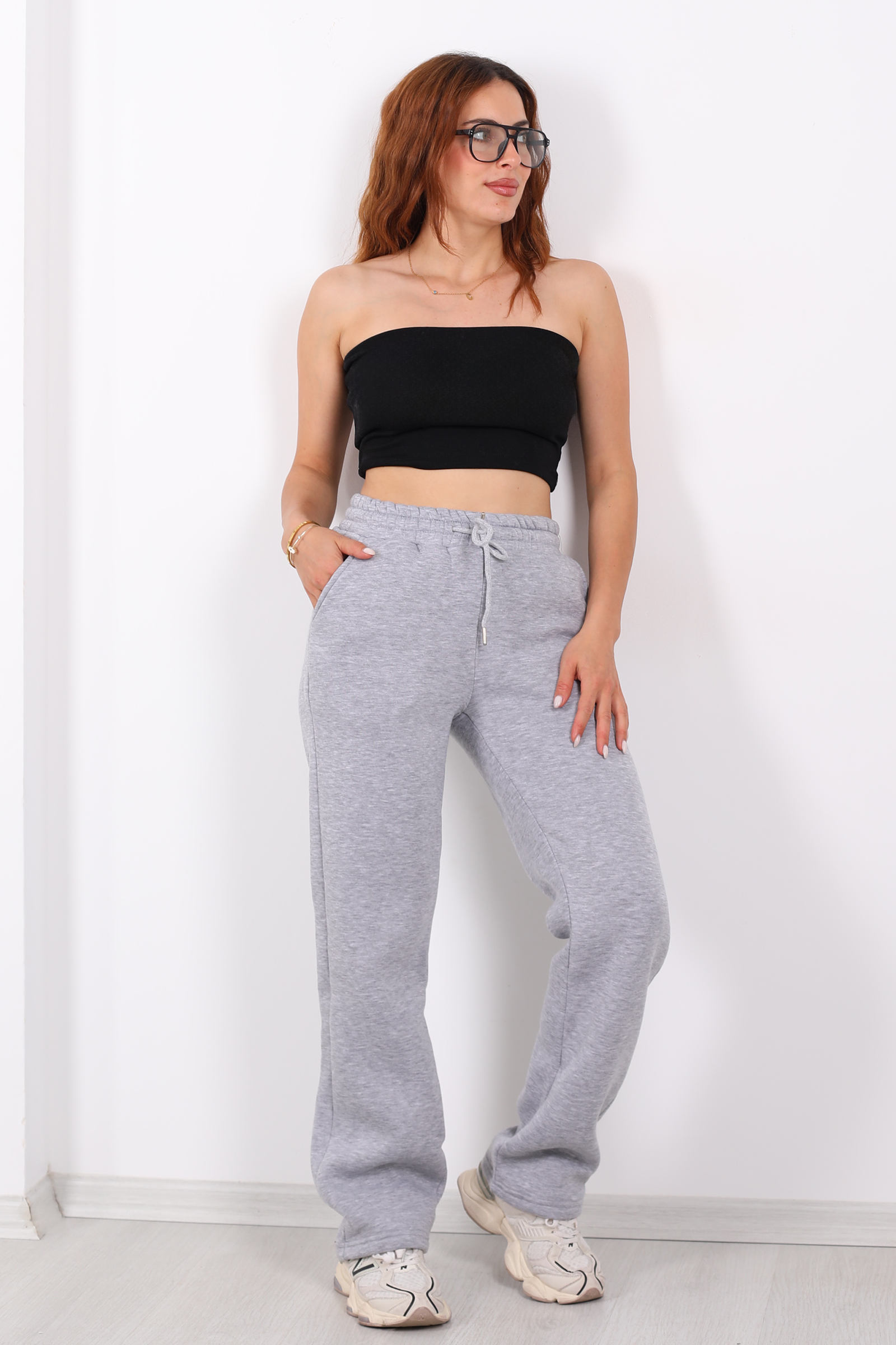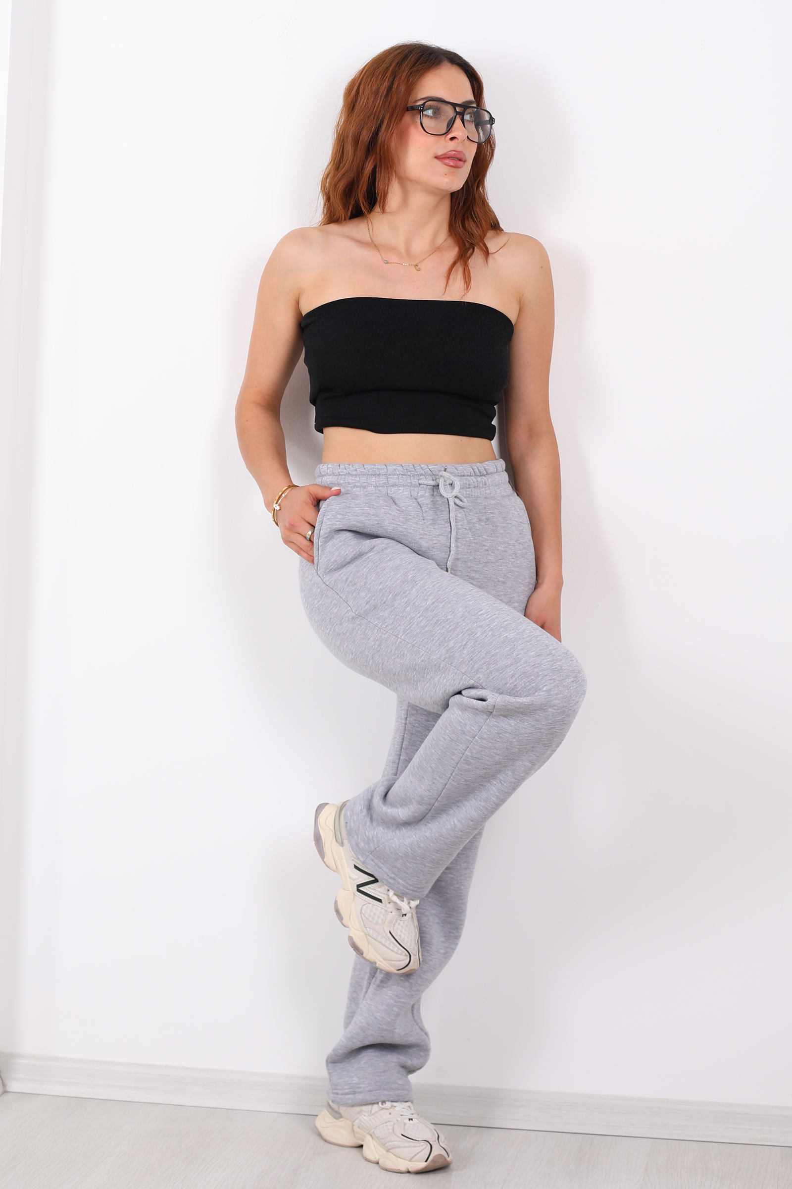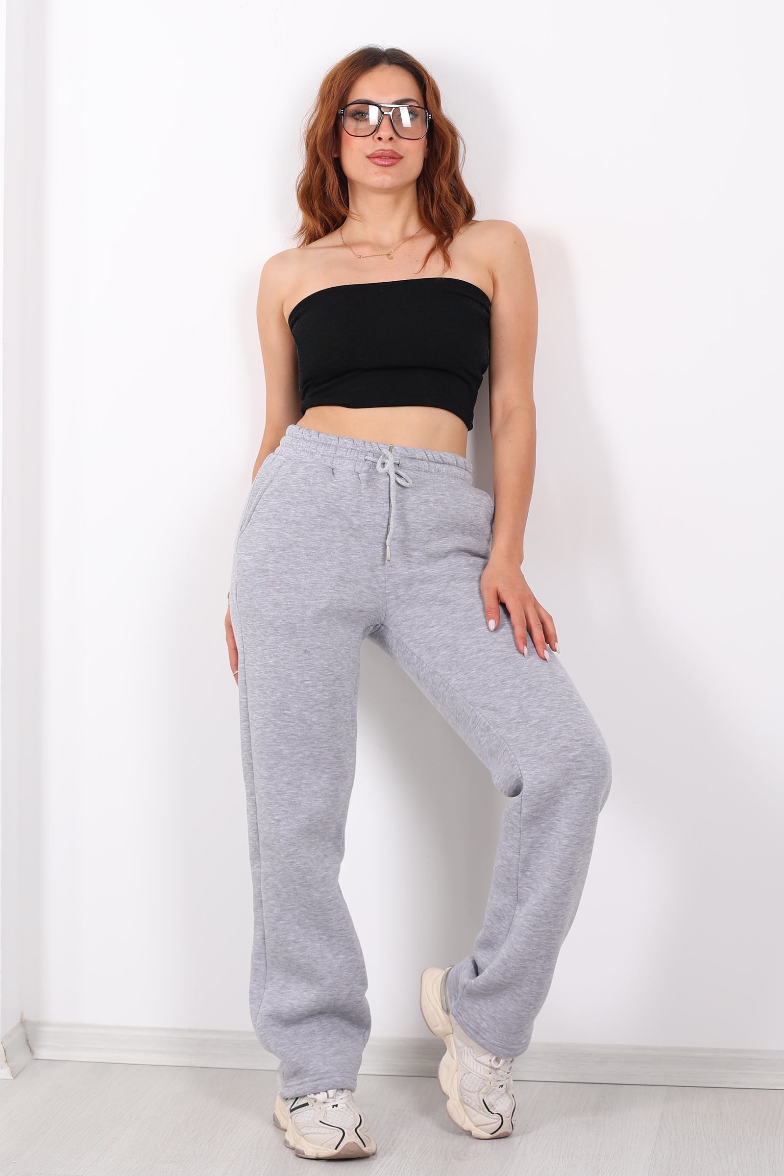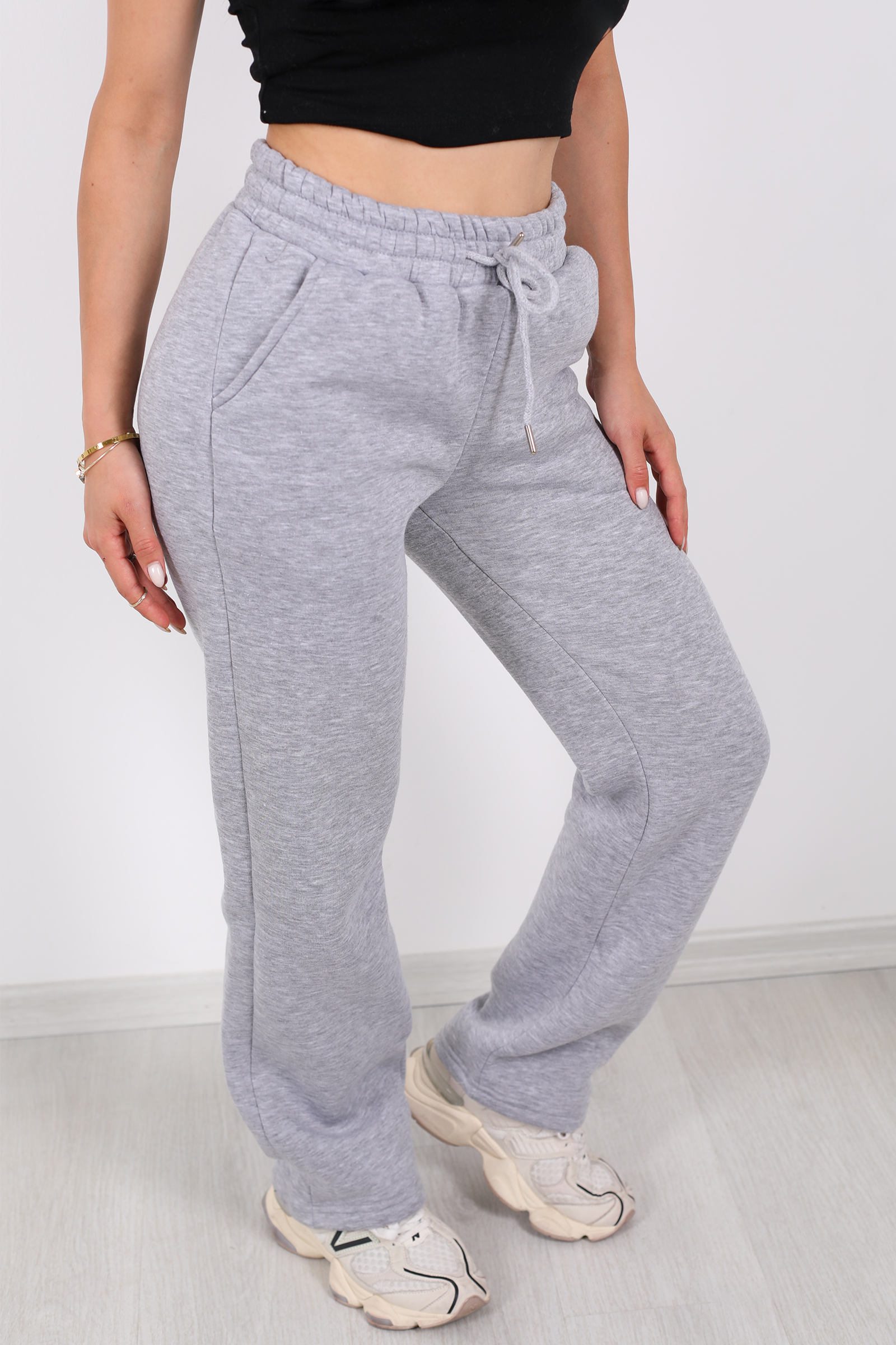 Beli lastikli üç ip boru paça gri melanj kadın eşofman altı, sade tasarımı ve rahatlığıyla günlük kombinlerinizi tamamlar. Üç iplik kumaş yapısı, uzun ömürlü kullanım, yumuşak doku ve nefes alabilirlik sunar; gri melanj tonu da hem sıcak hem de modern bir görünüm yakalamanızı sağlar. Ayarlanabilir beli lastikli yapısı sayesinde kişisel konfora göre ayarlanabilen fit; boru paça kesimiyle zarif ve güncel bir siluet sunar.