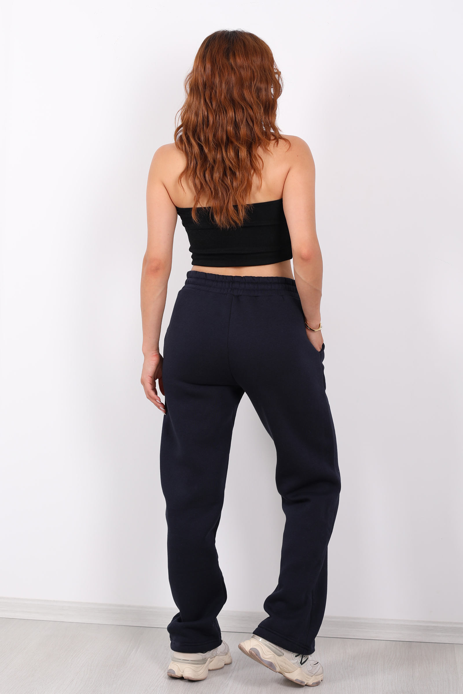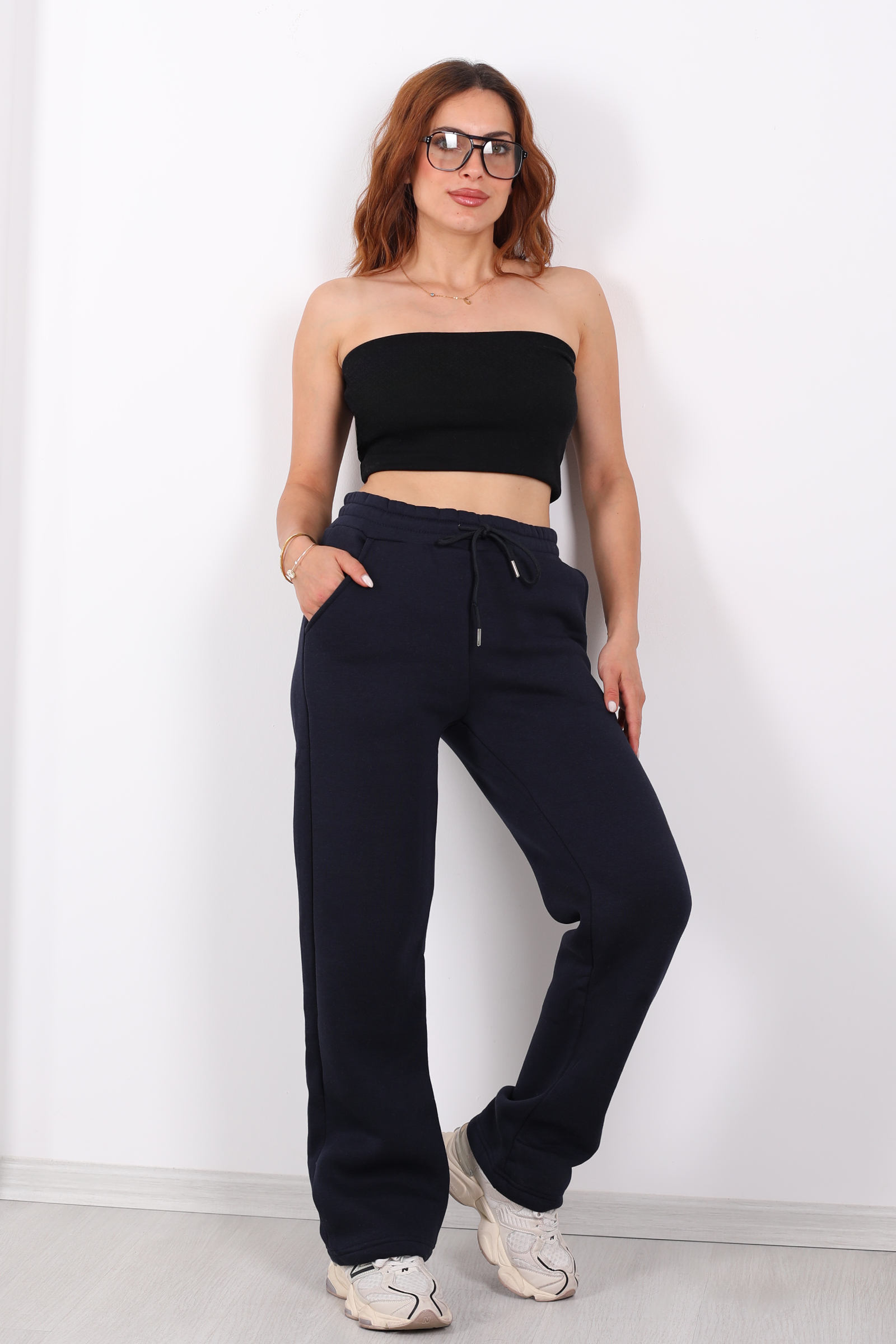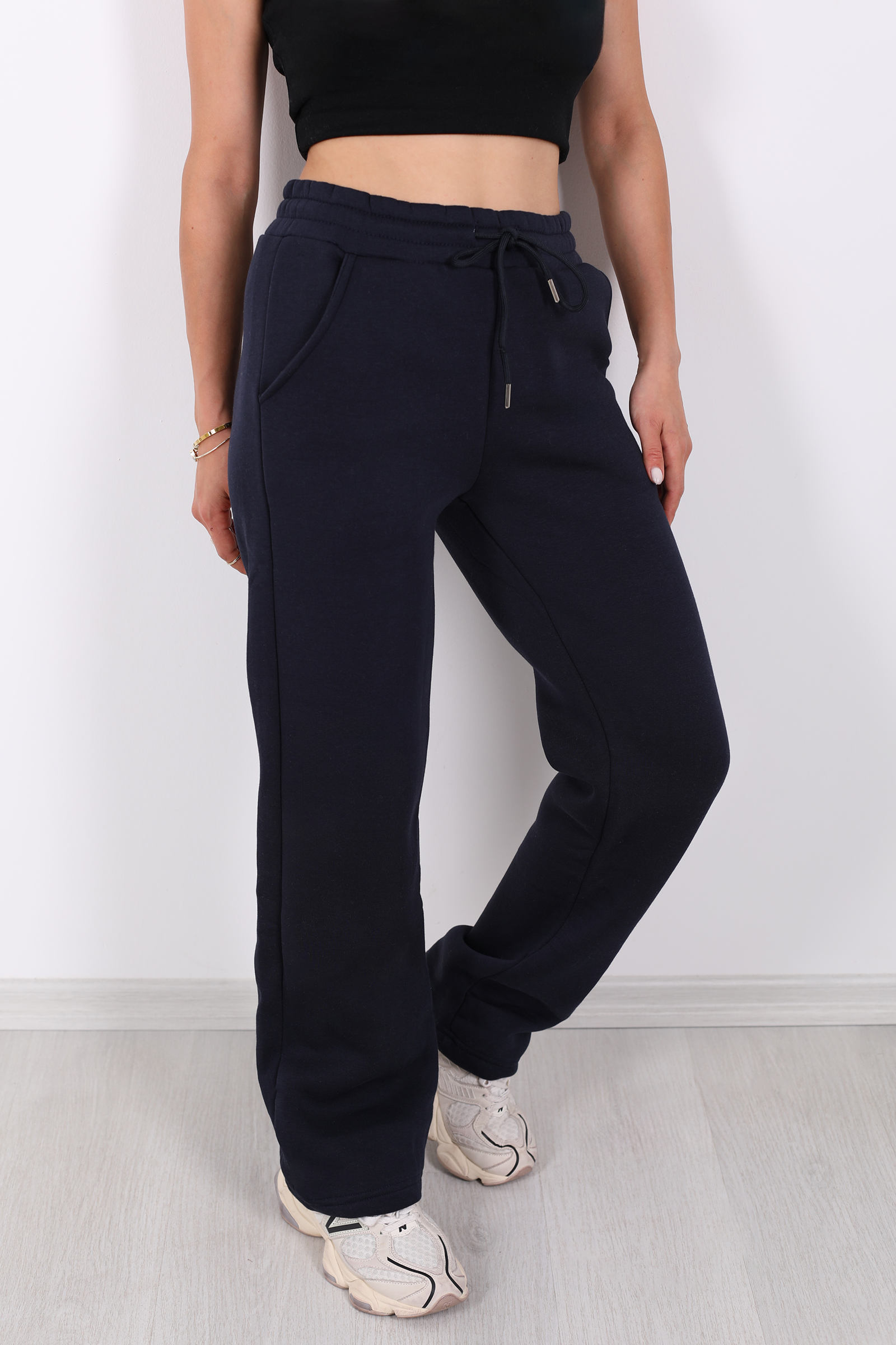Beli lastikli üç ip boru paça lacivert kadın eşofman altı, hem modern görüntüsü hem de üstün kullanım rahatlığıyla günlük stilinizi tamamlar. %70 pamuk ve %30 polyesterden oluşan üç iplik kumaşı, uzun ömürlü kullanım ve yumuşaklık sağlar. Normal kalıp yapısıyla vücuda fazla sıkmadan iyi bir oturuş sunarken, beli lastikli tasarımı sayesinde ayarlanabilir fit sağlayarak gün boyu konfor sunar.