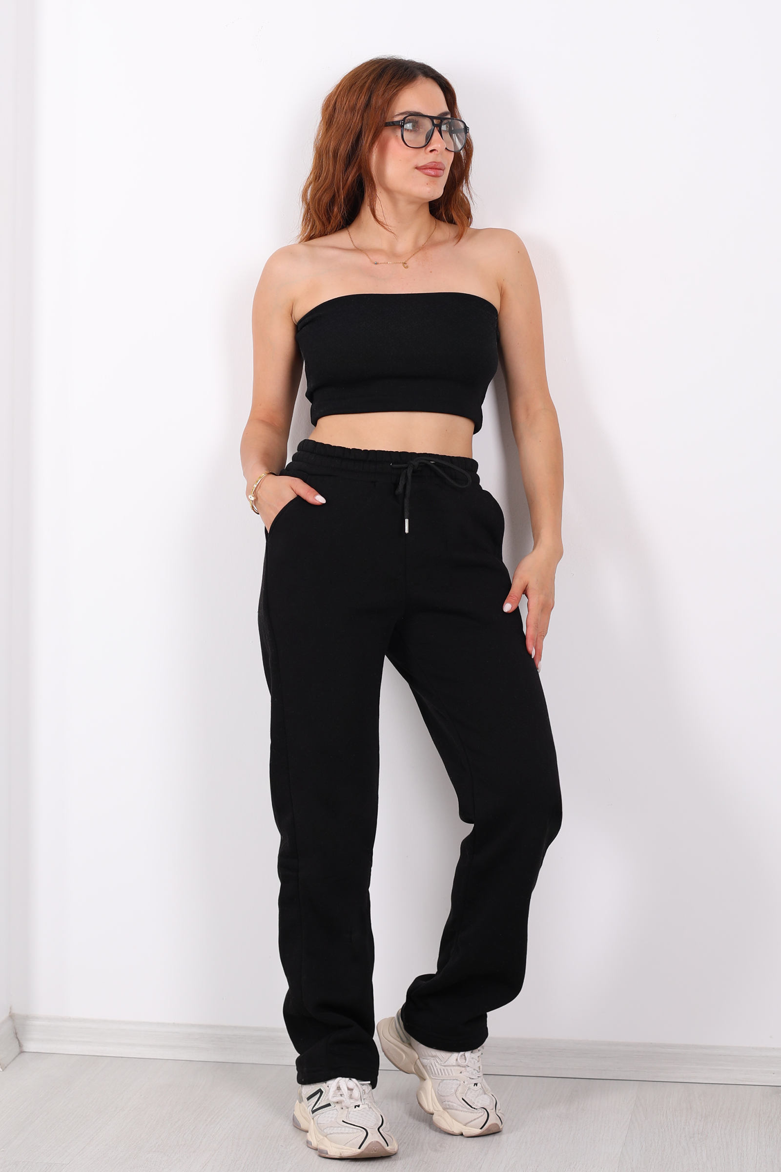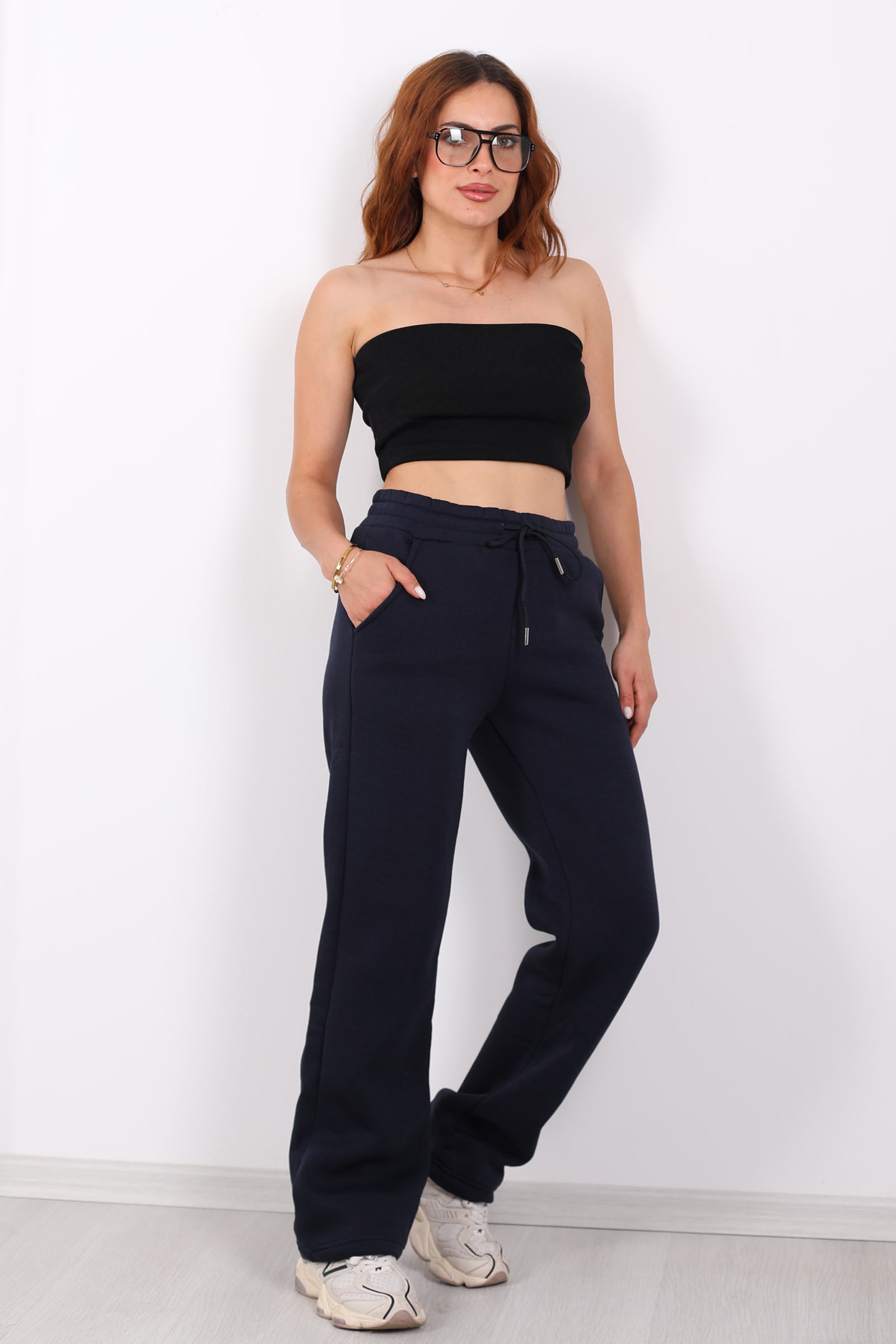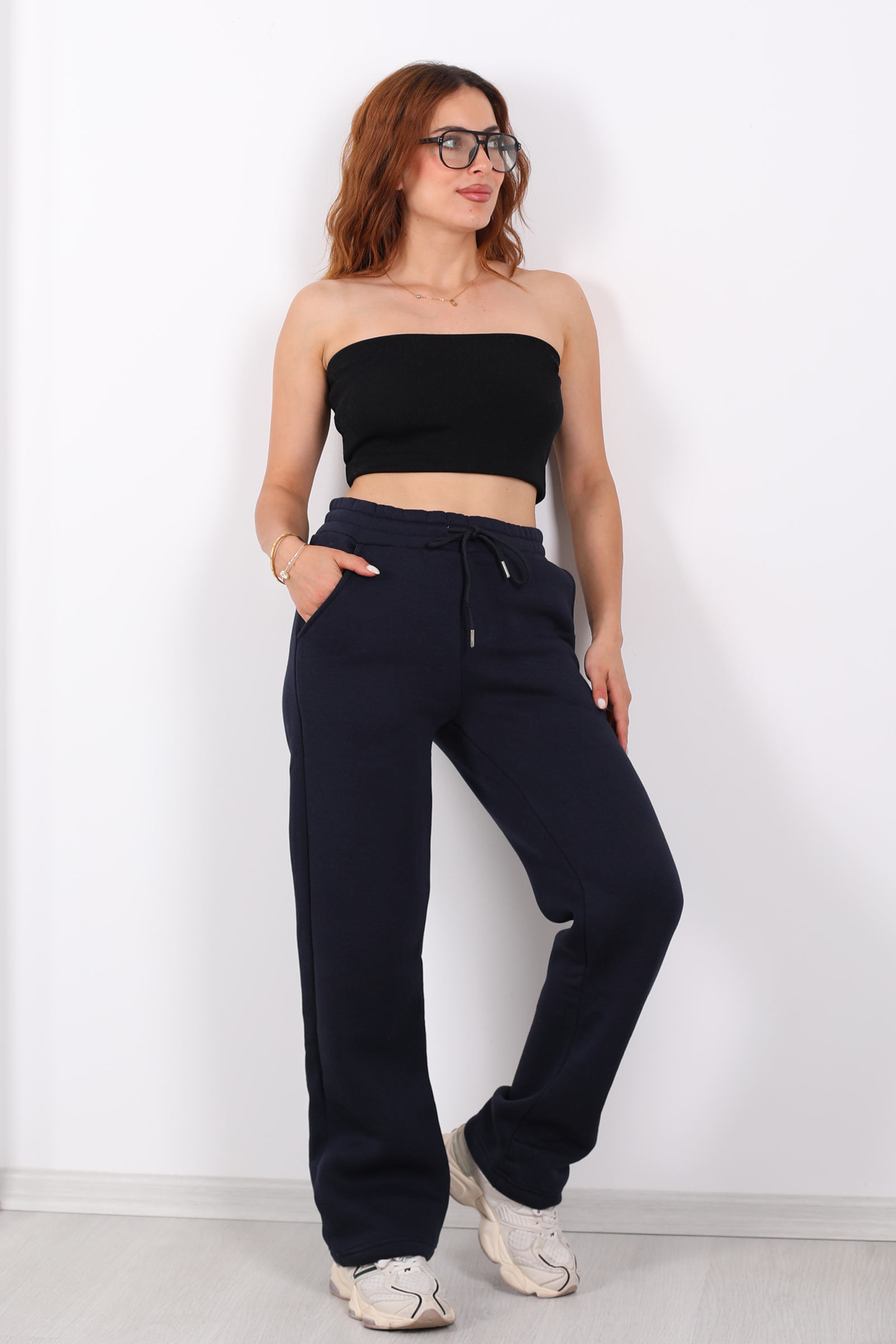 Beli lastikli üç ip boru paça lacivert kadın eşofman altı, hem modern görüntüsü hem de üstün kullanım rahatlığıyla günlük stilinizi tamamlar. %70 pamuk ve %30 polyesterden oluşan üç iplik kumaşı, uzun ömürlü kullanım ve yumuşaklık sağlar. Normal kalıp yapısıyla vücuda fazla sıkmadan iyi bir oturuş sunarken, beli lastikli tasarımı sayesinde ayarlanabilir fit sağlayarak gün boyu konfor sunar.