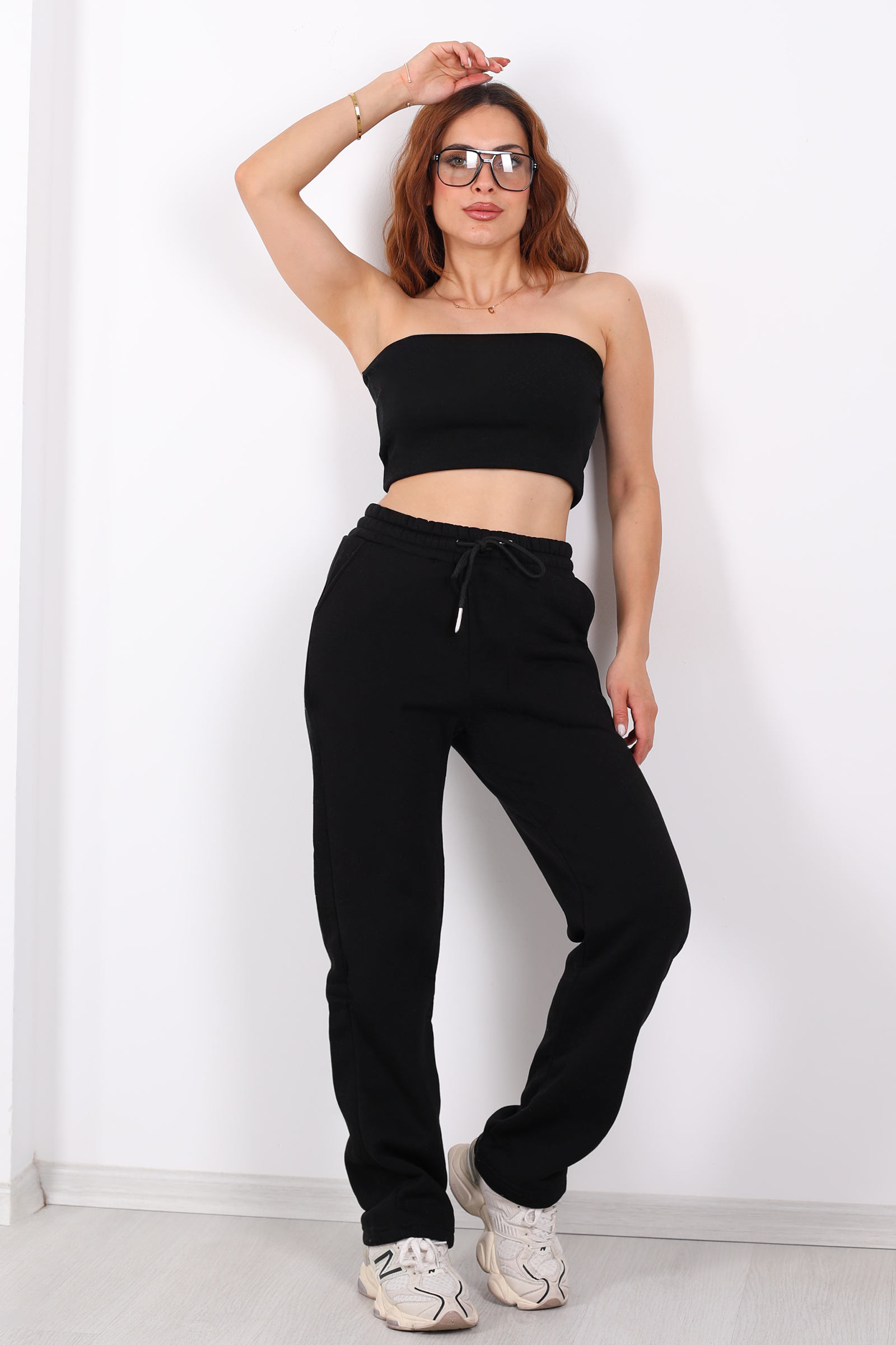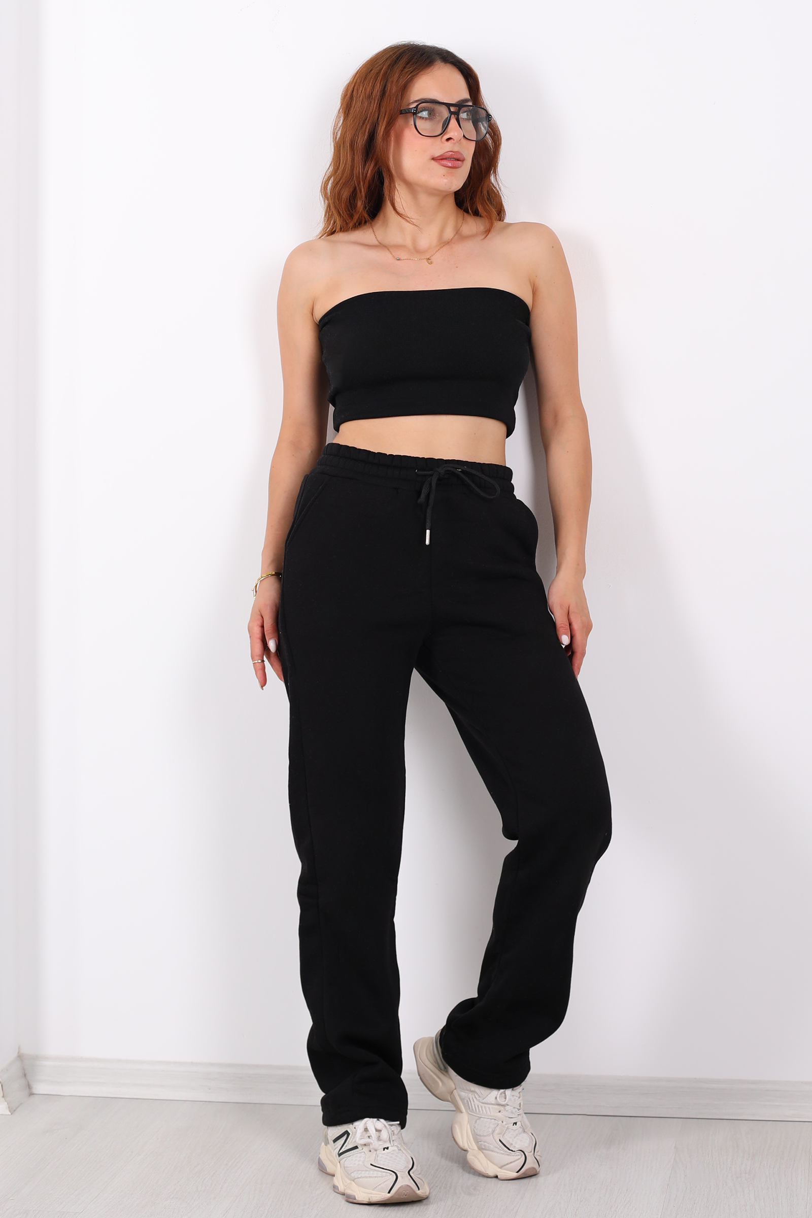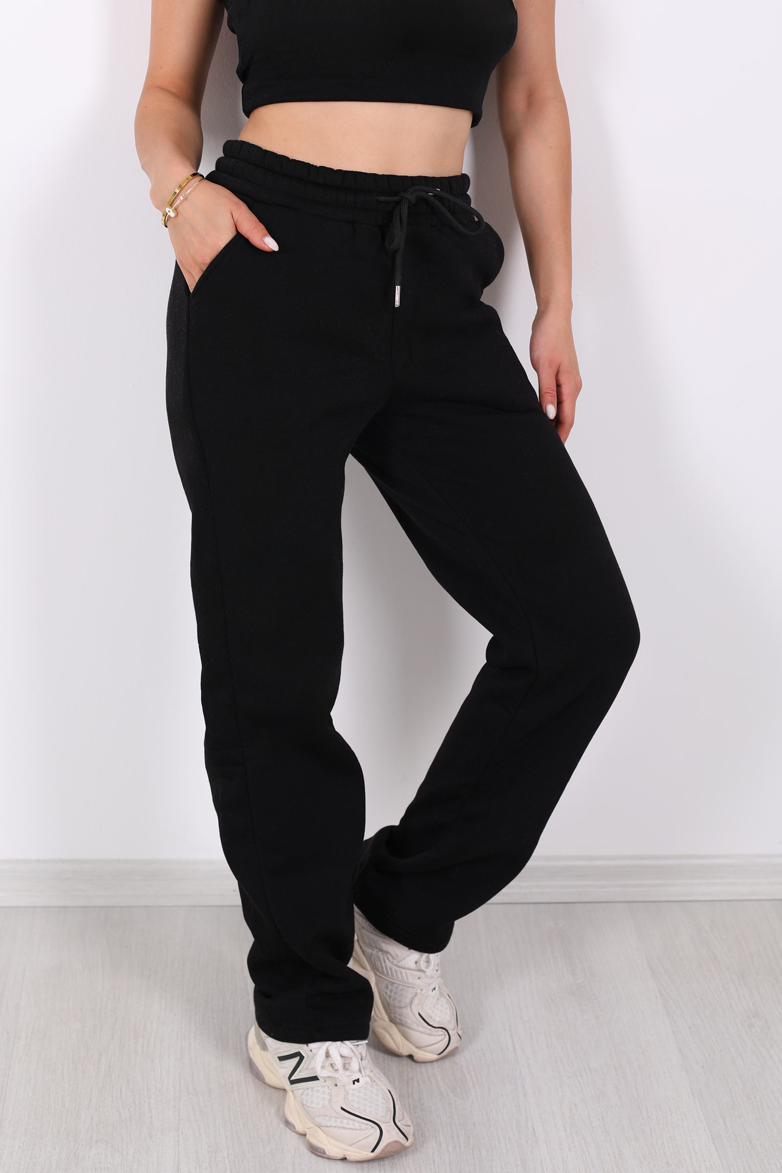 Beli lastikli üç ip boru paça siyah kadın eşofman altı, rahatlığı ve modern duruşu bir arada sunan ideal bir tercihtir. %100 pamuk (bazı varyasyonlarda %70 pamuk %30 polyester) kumaştan üretilmiş olup yumuşak dokusu ile gün boyu konfor sağlar . Ayarlanabilir beli sayesinde sıkmadan konturlu bir kullanım sunarken, sade siyah rengiyle kombininizi kolayca tamamlar.