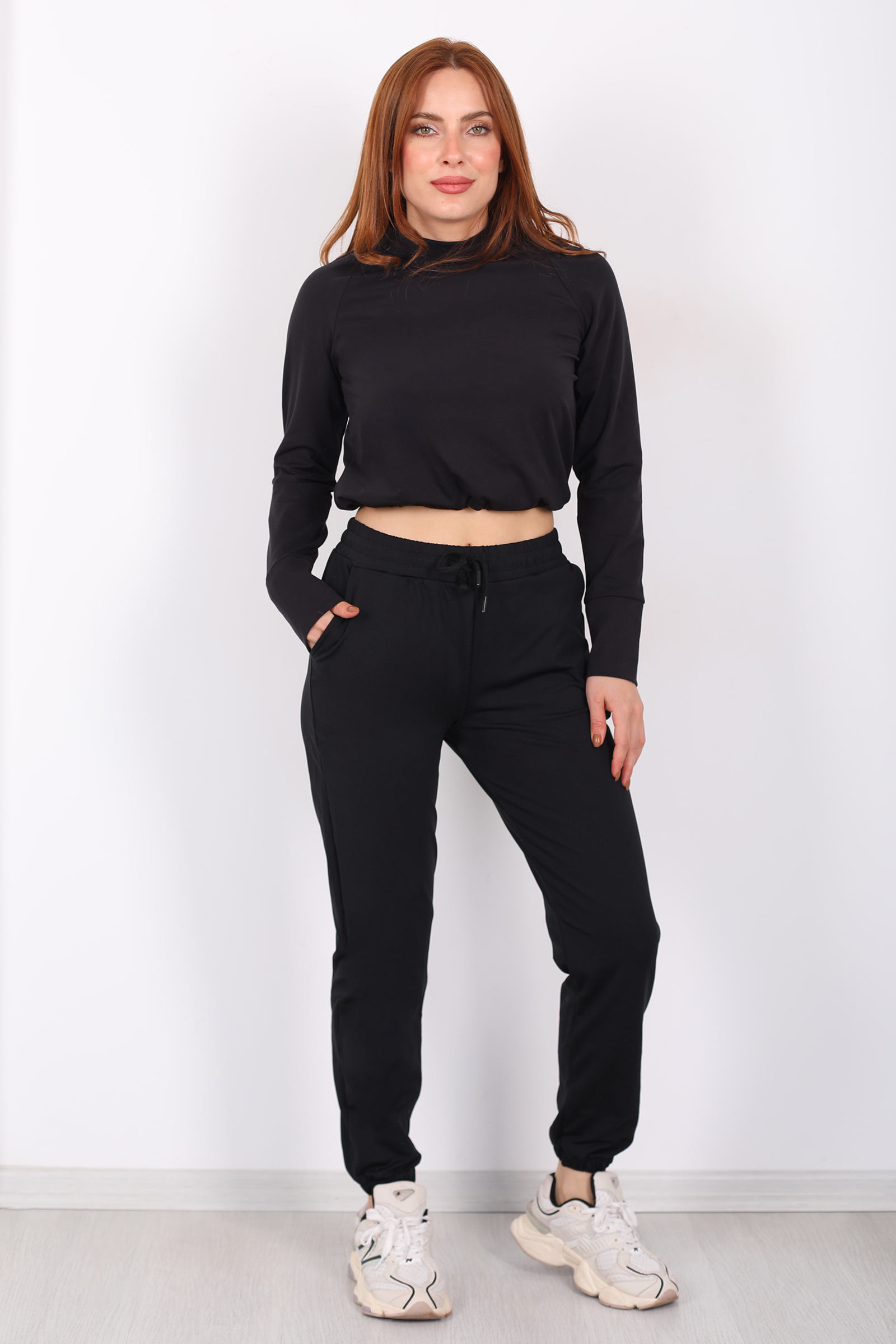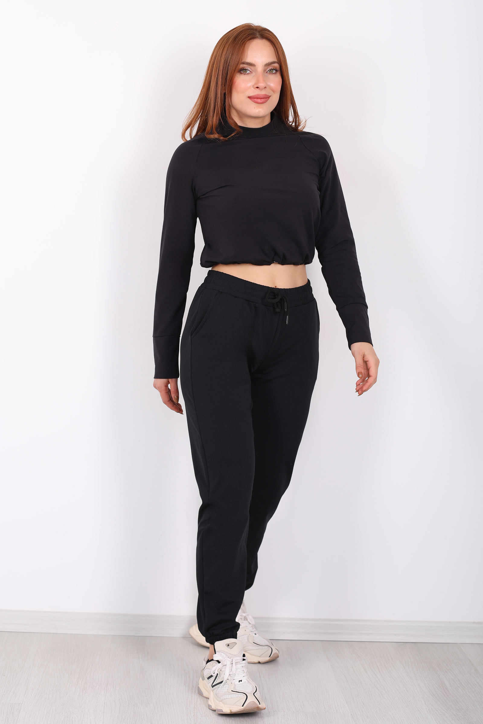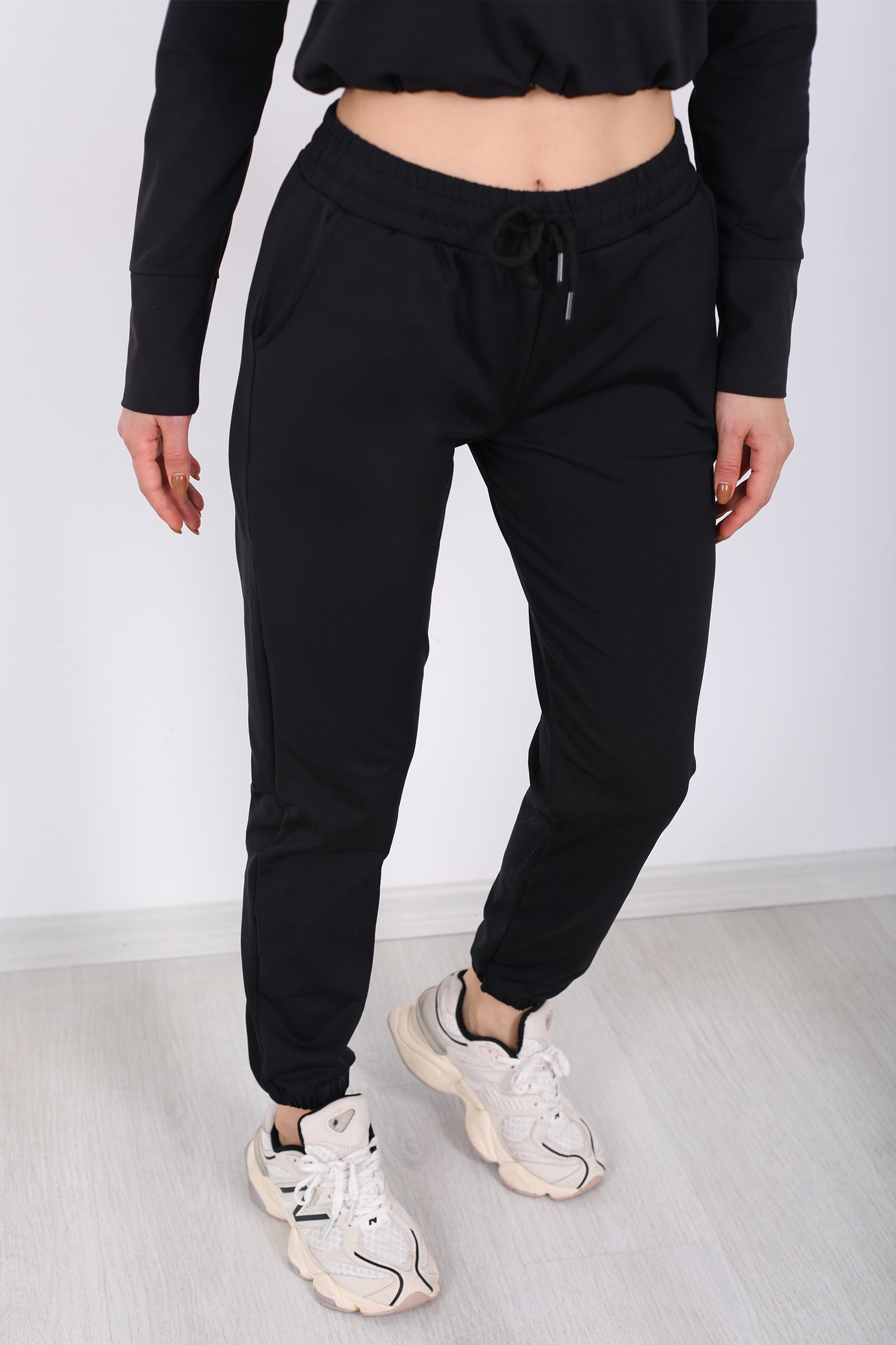 Beli Lastikli Üç İplik Siyah Kadın Jogger Eşofman Altı