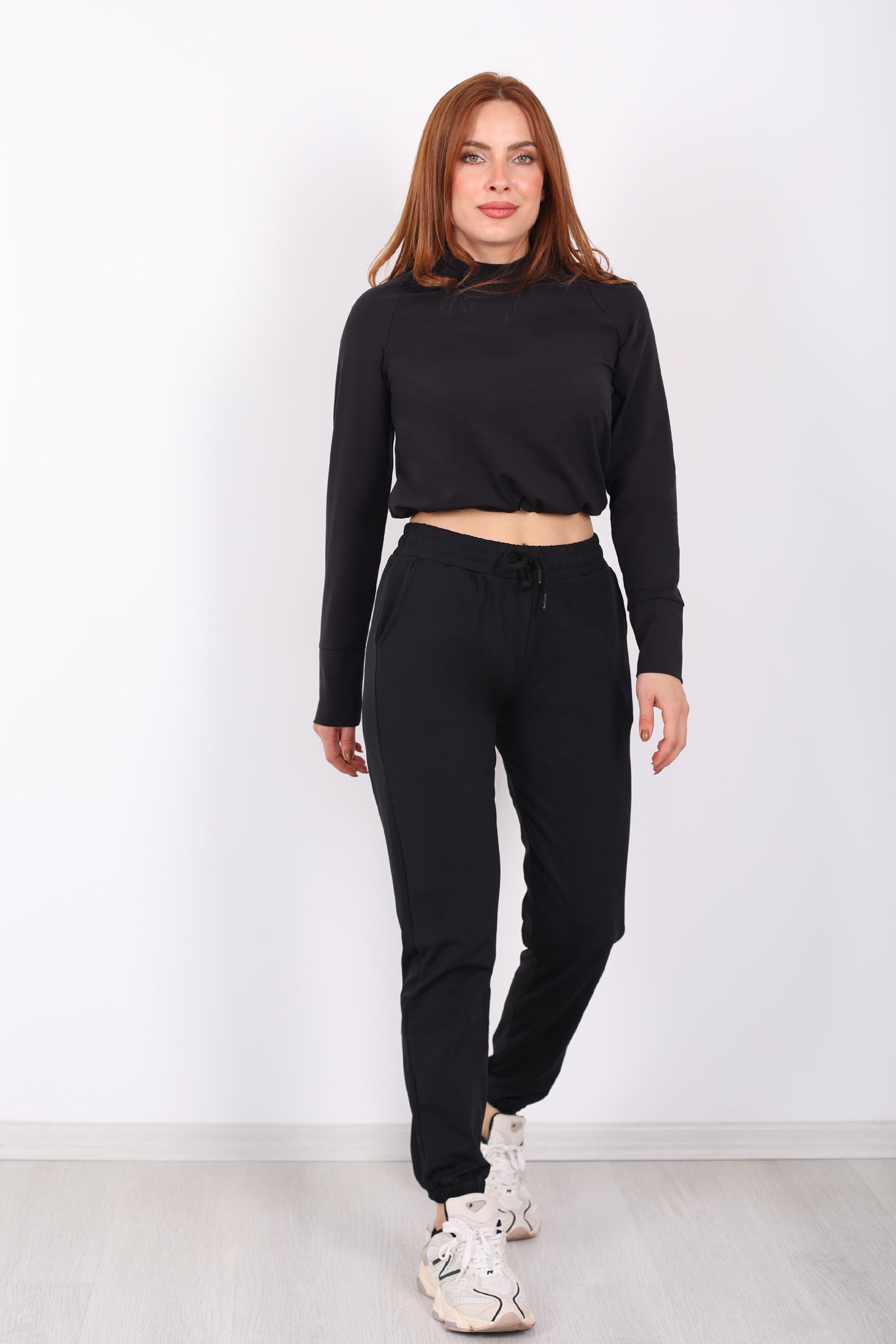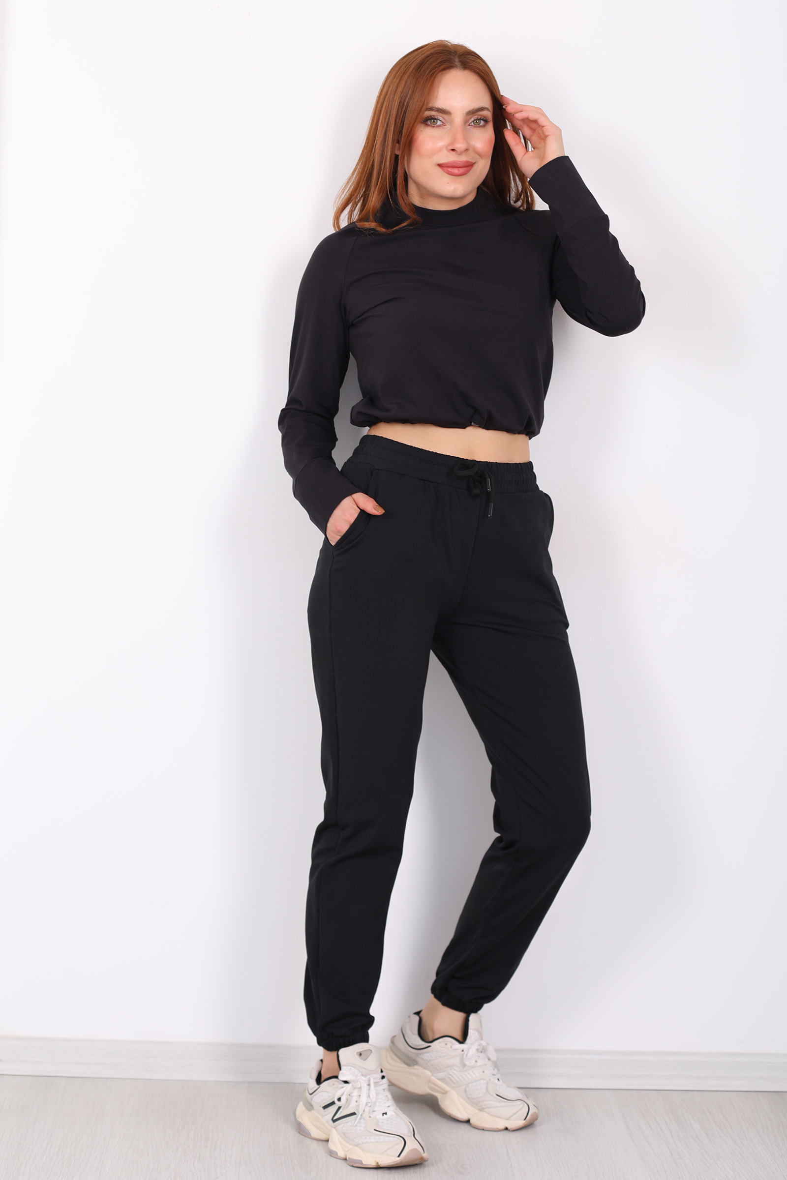 Armalı Beli Lastikli Parçalı Siyah Kadın Modal Eşofman Altı