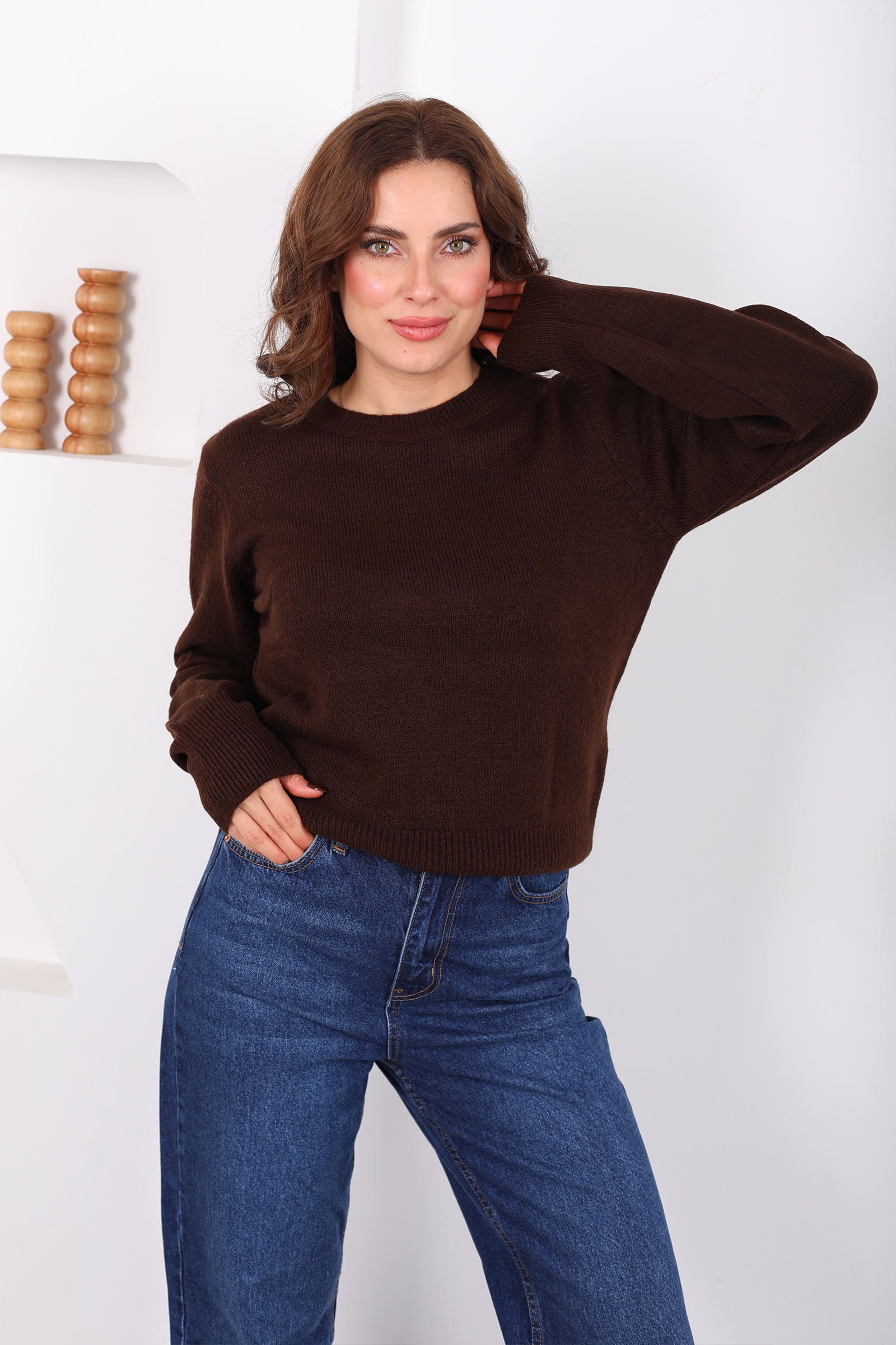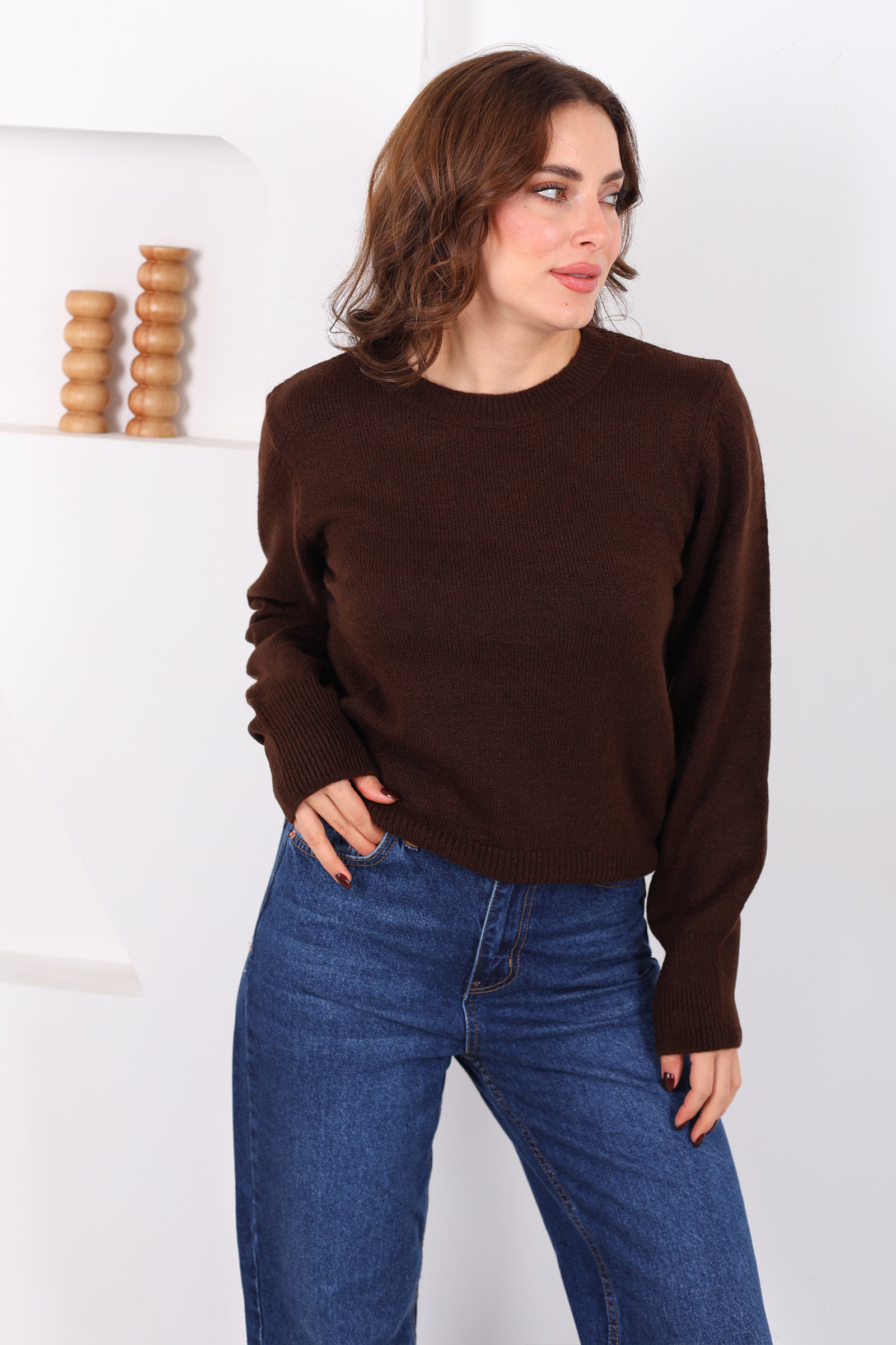 Bisiklet Yaka Kahverengi Kadın Triko Kazak
