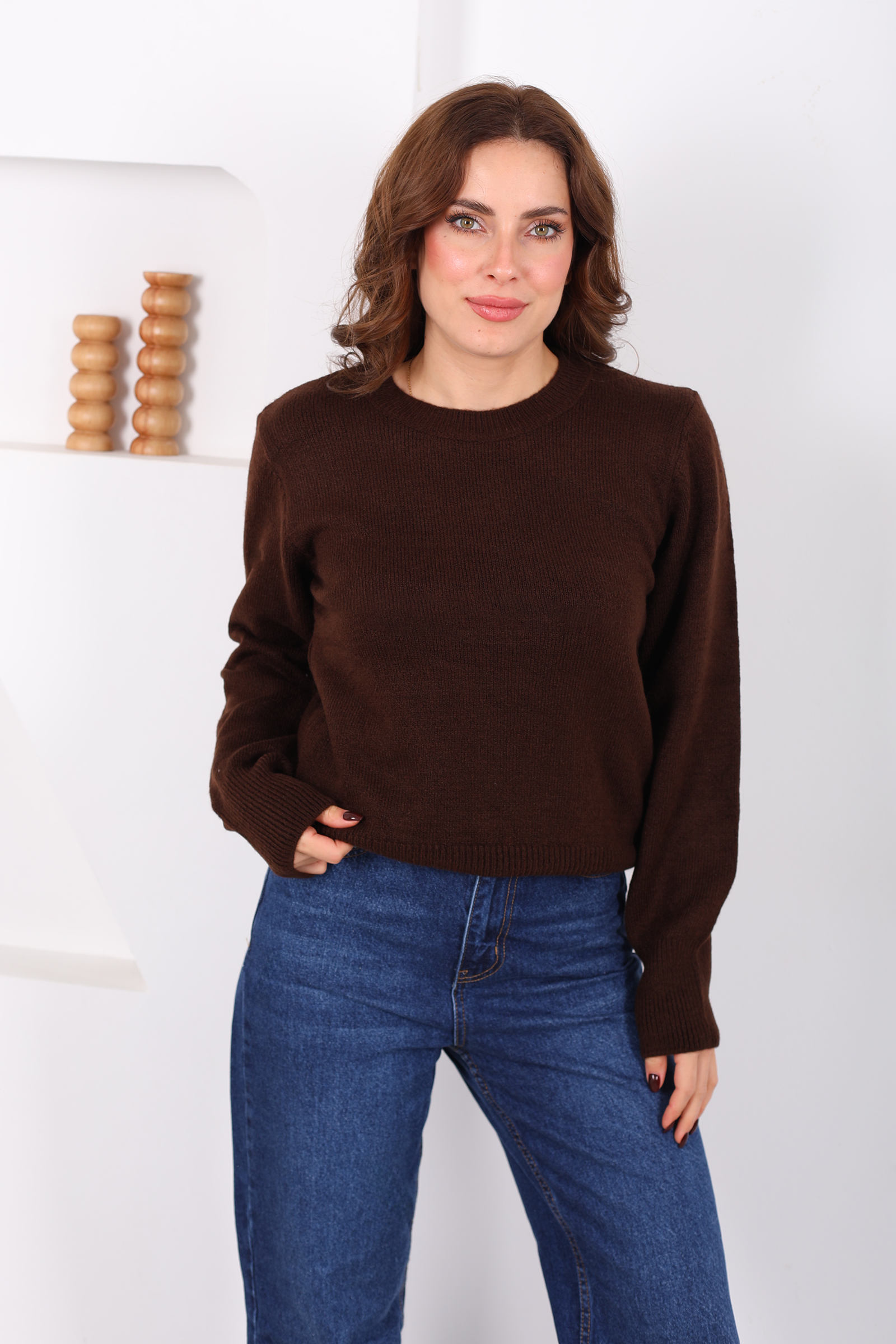 Bisiklet Yaka Acı Kahve Kadın Triko Kazak