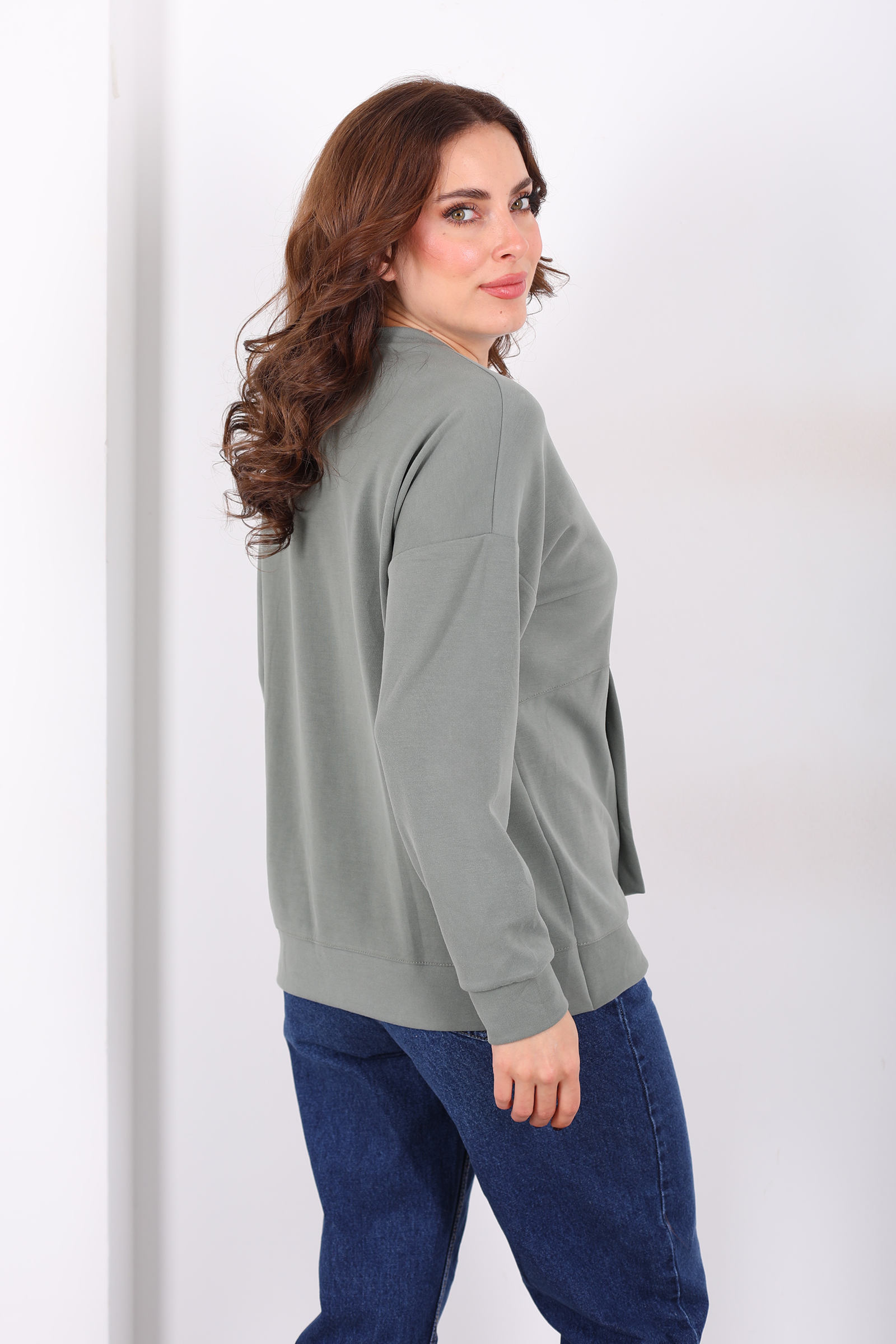 Bisiklet Yaka Asimetrik Parçalı Mint Yeşili Kadın Sweat
