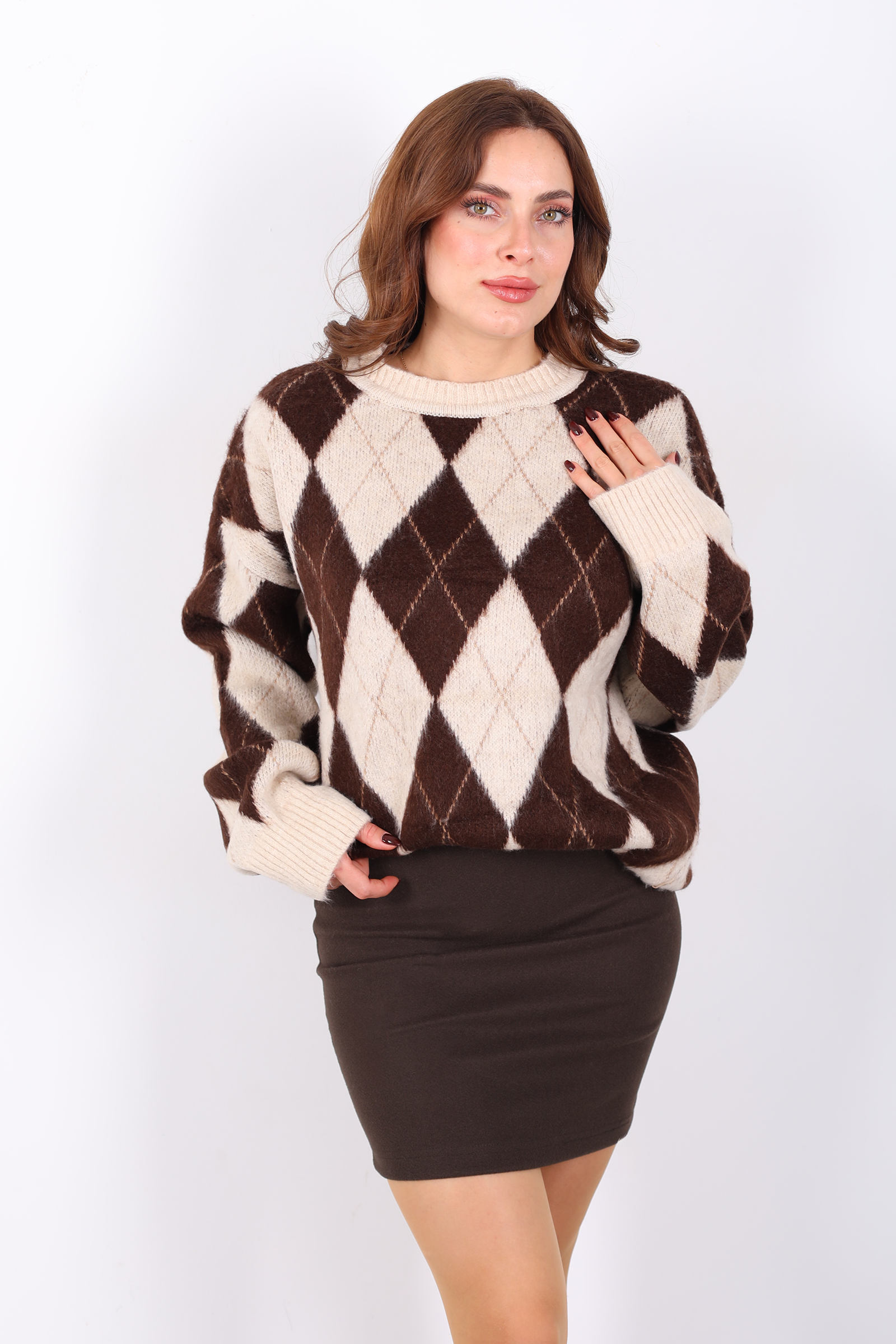 Bisiklet Yaka Kahverengi Kadın Triko Kazak