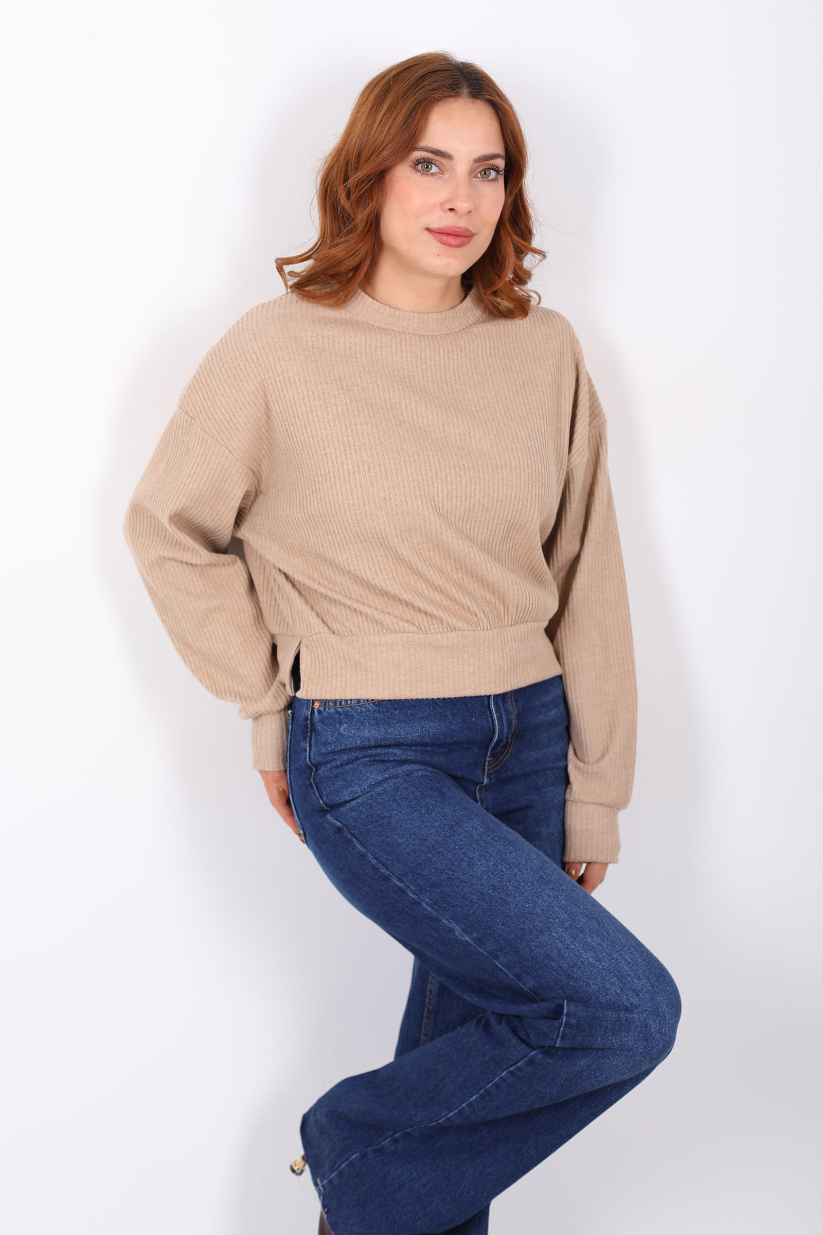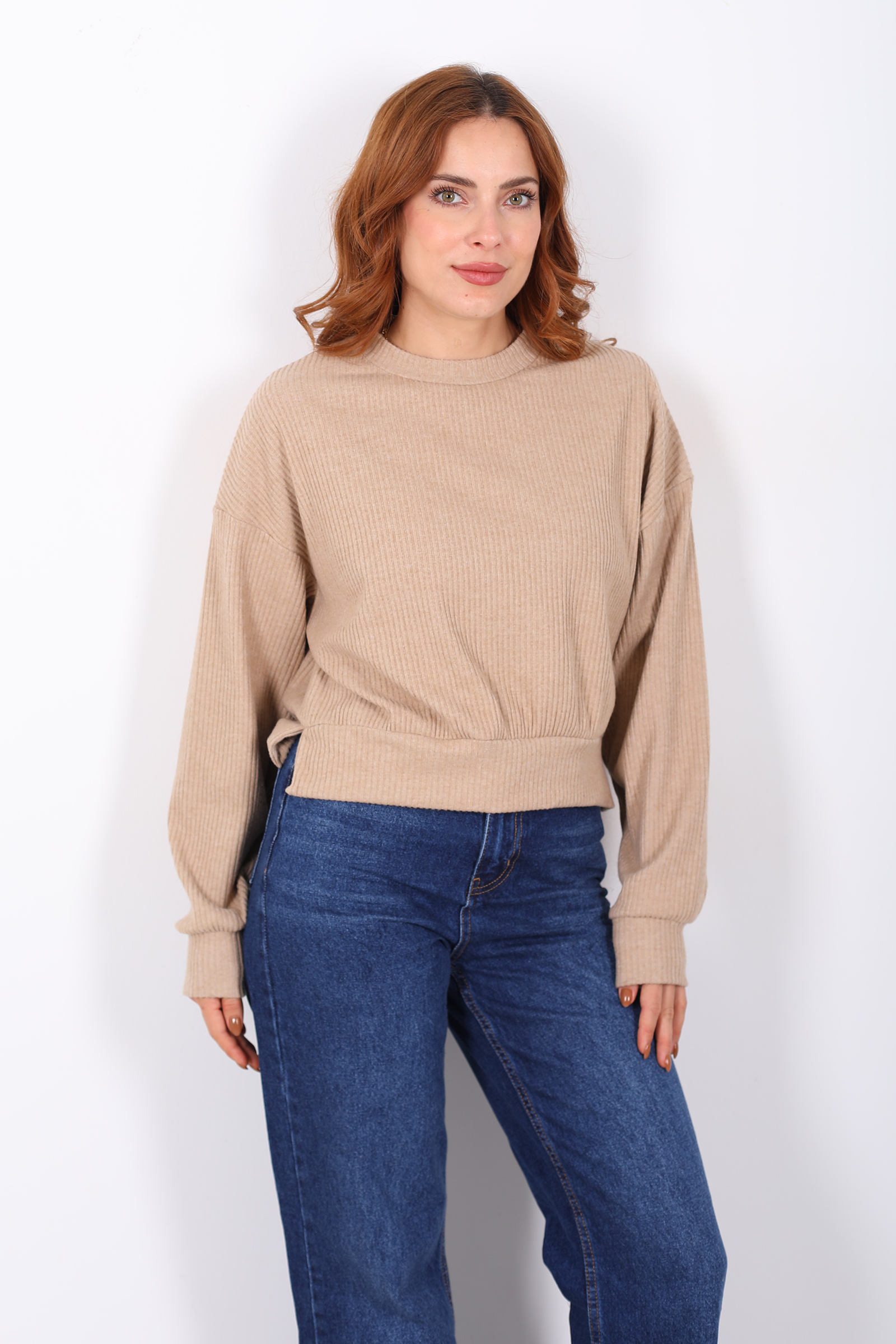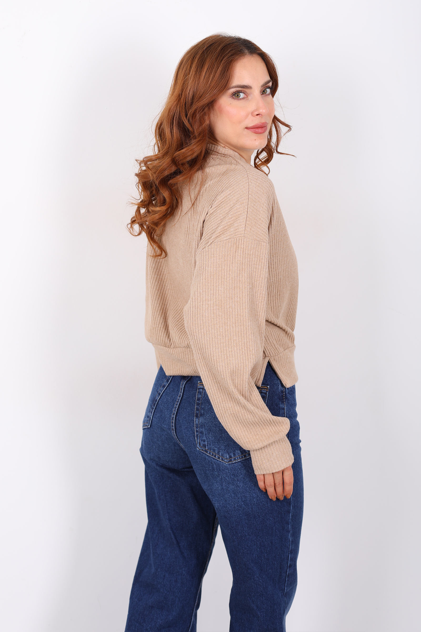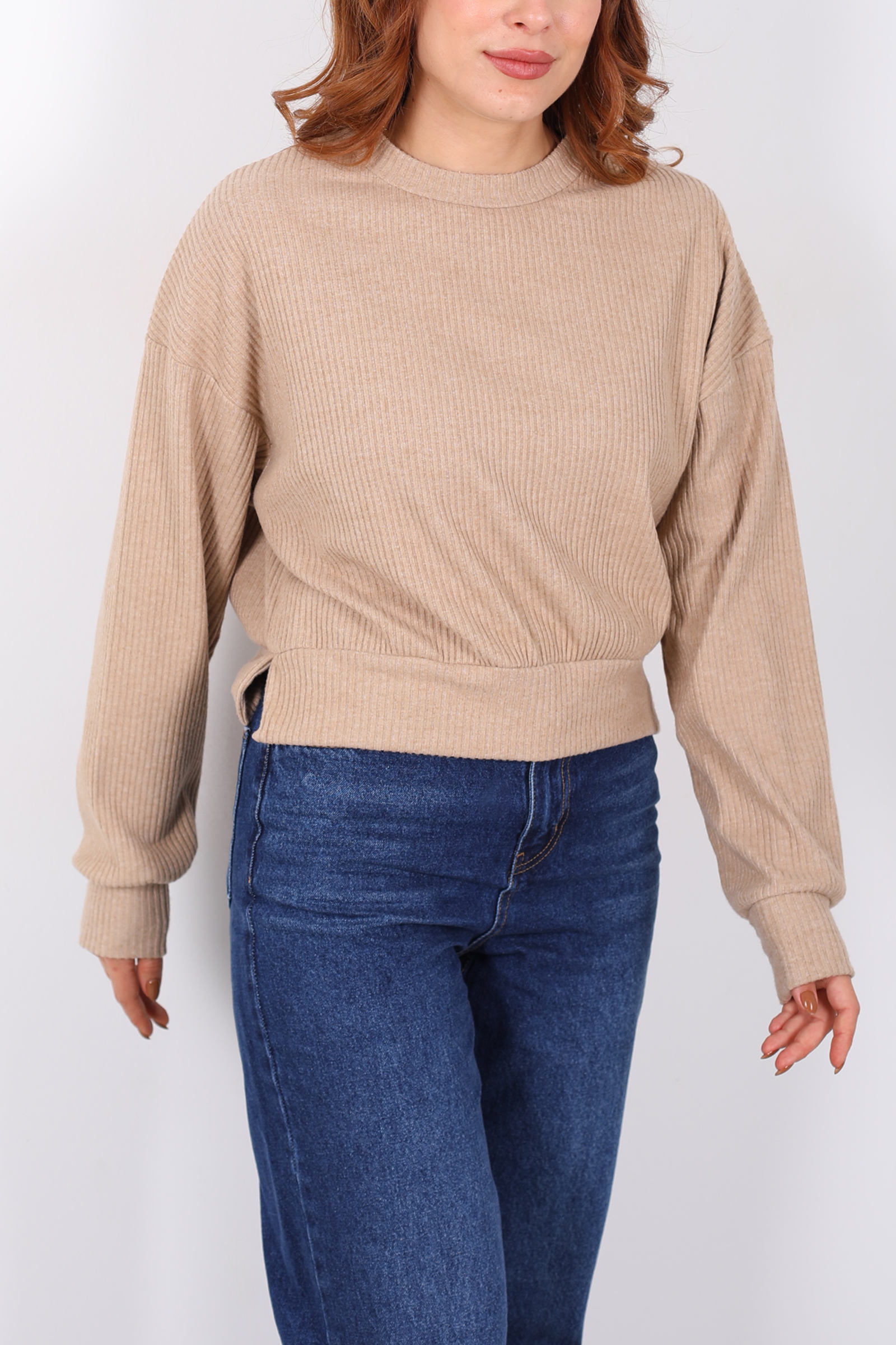 Bisiklet Yaka Bej Kadın Triko Kazak