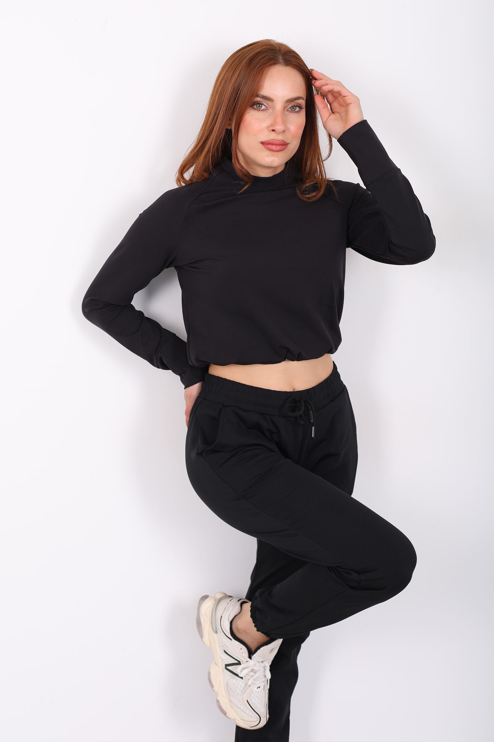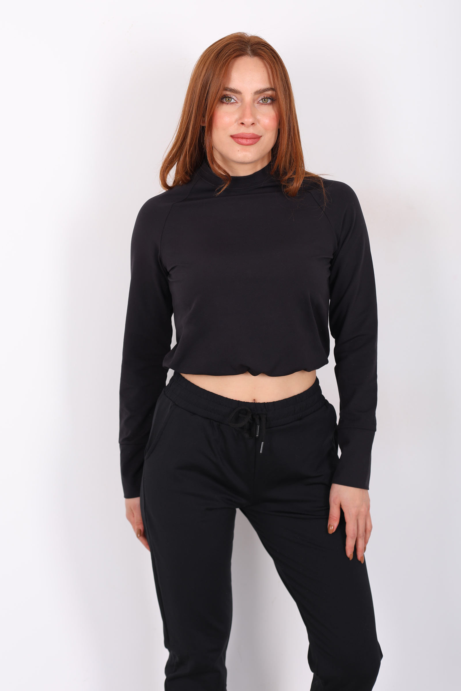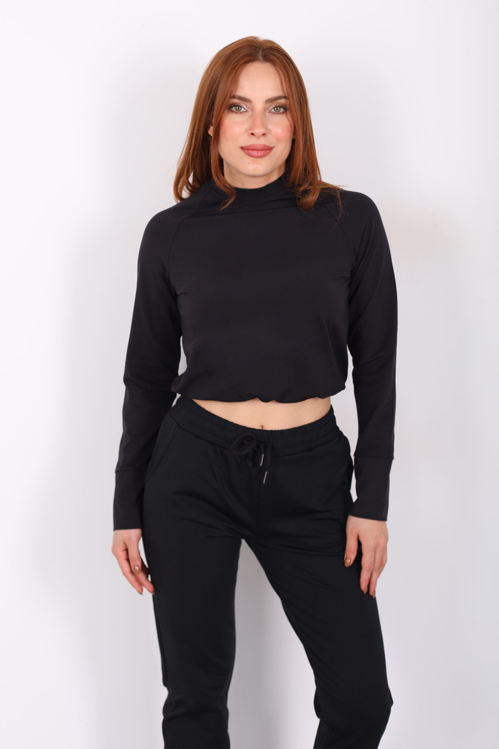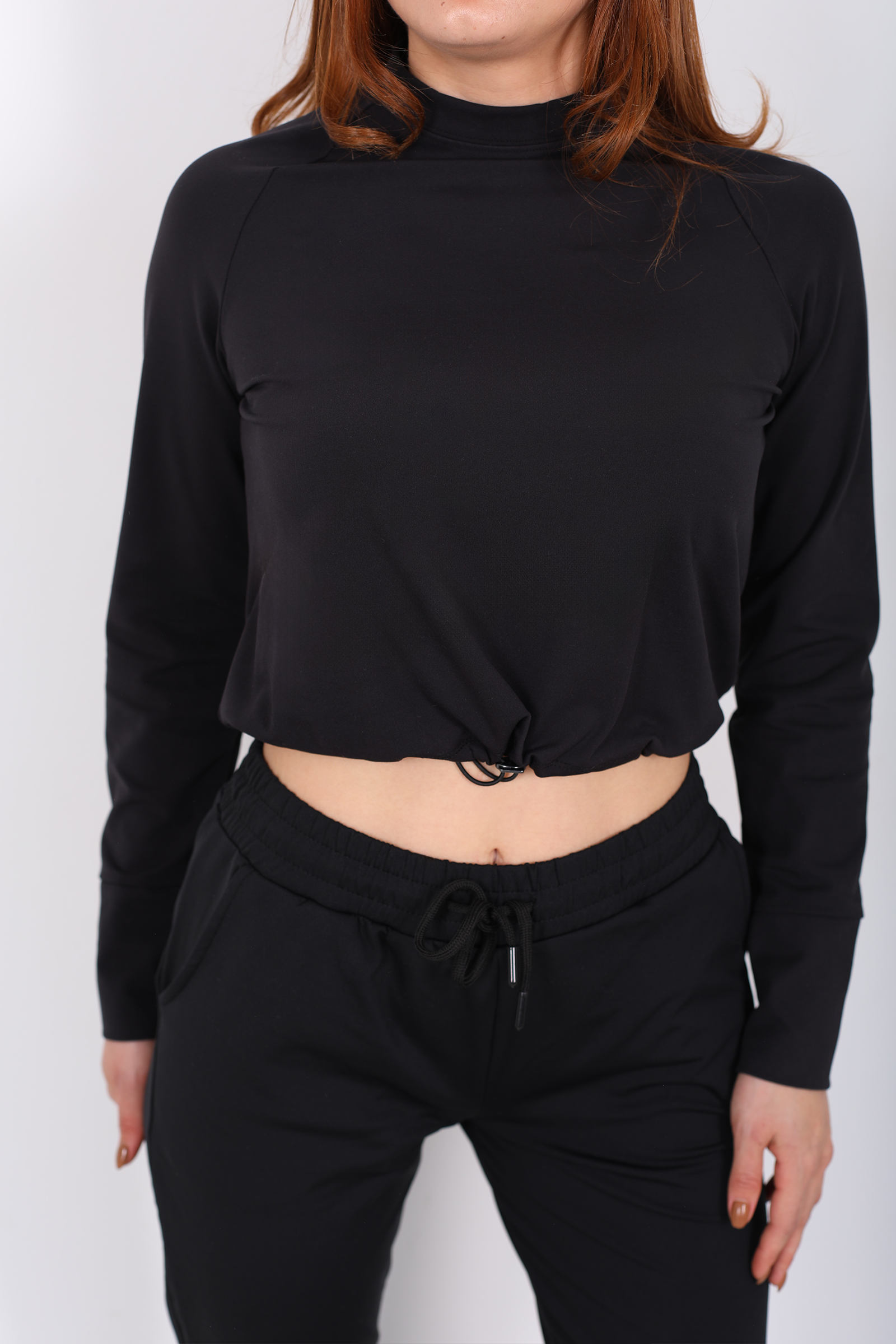 Bisiklet Yaka Belden Kordonlu Kadın Siyah Belize Bluz