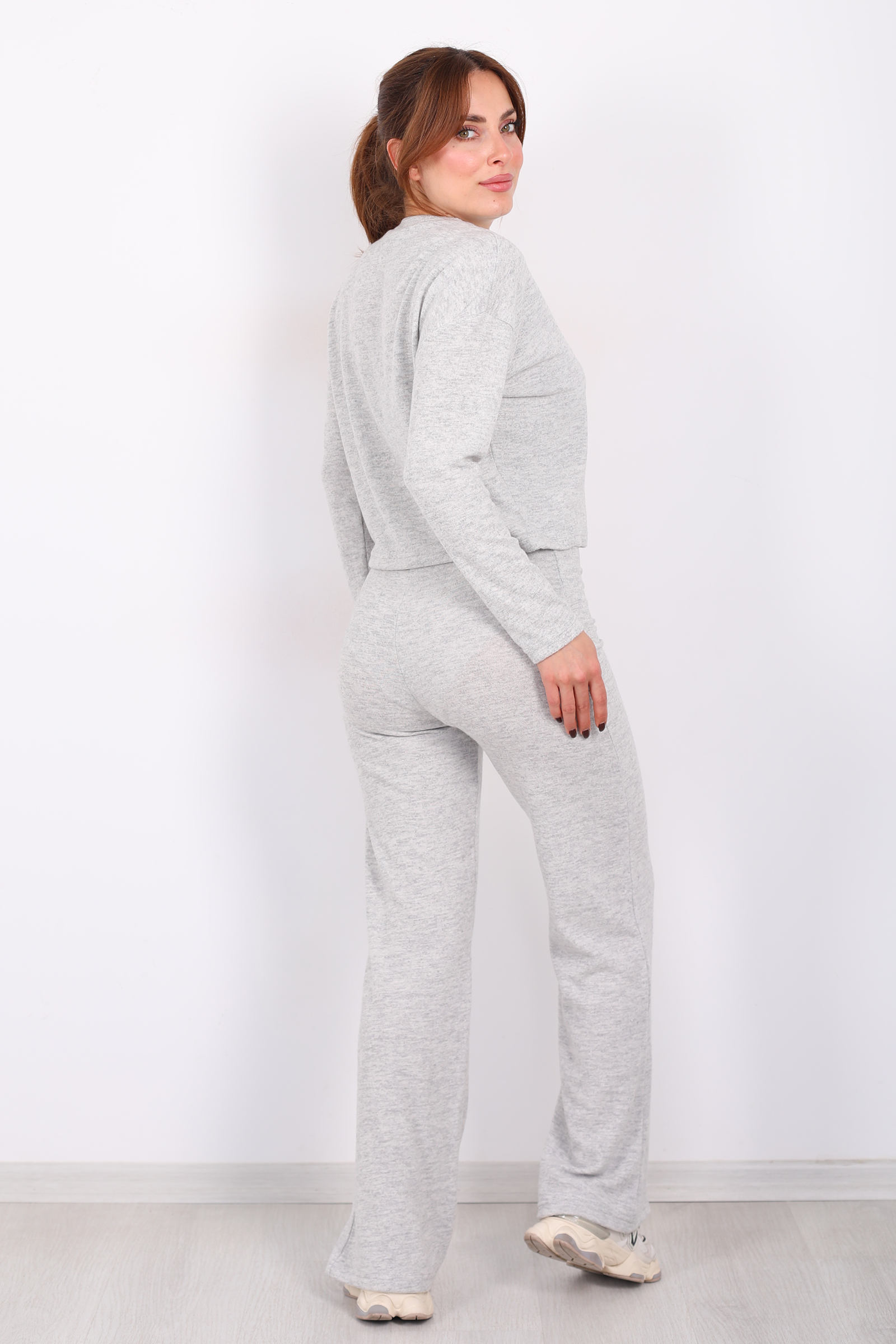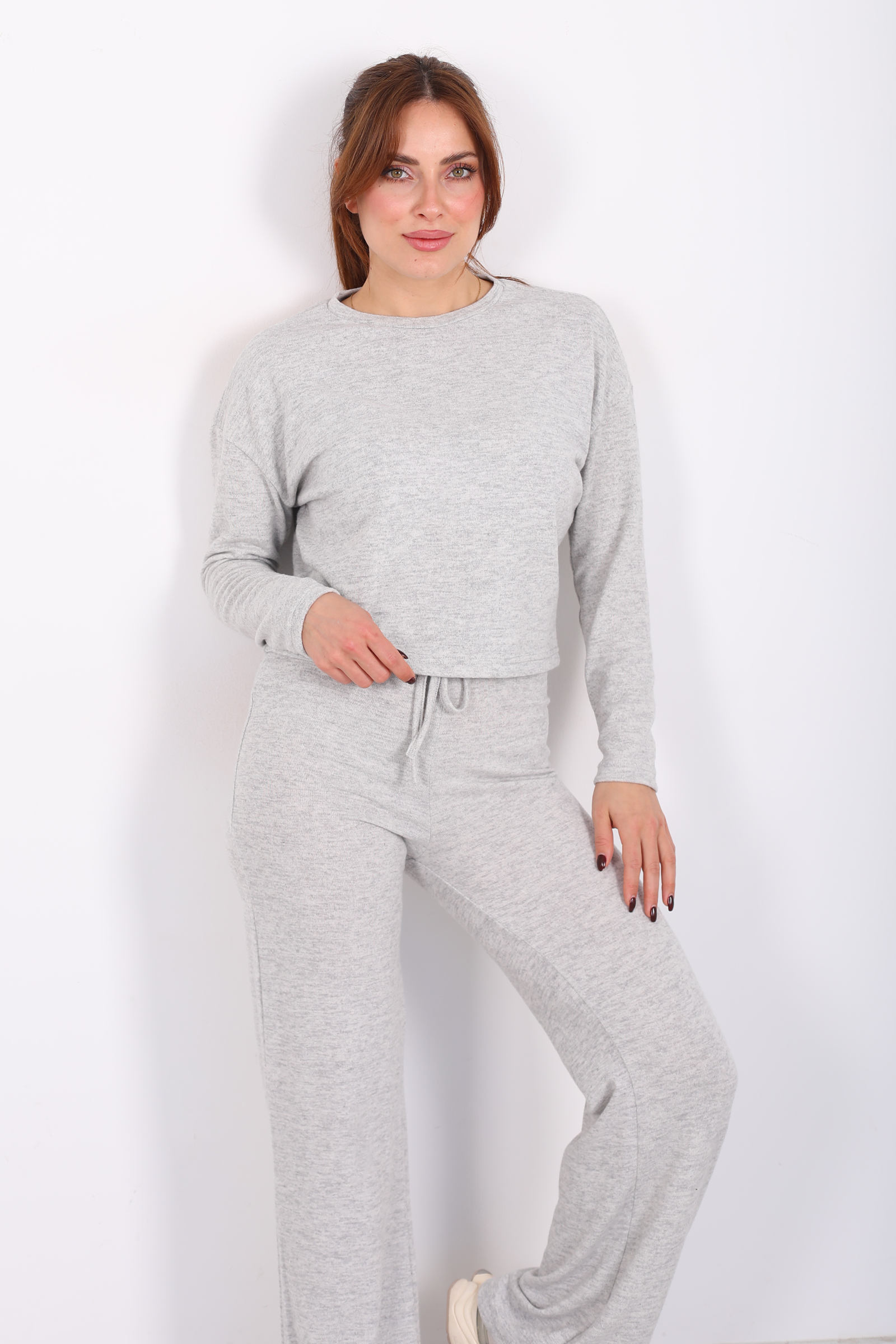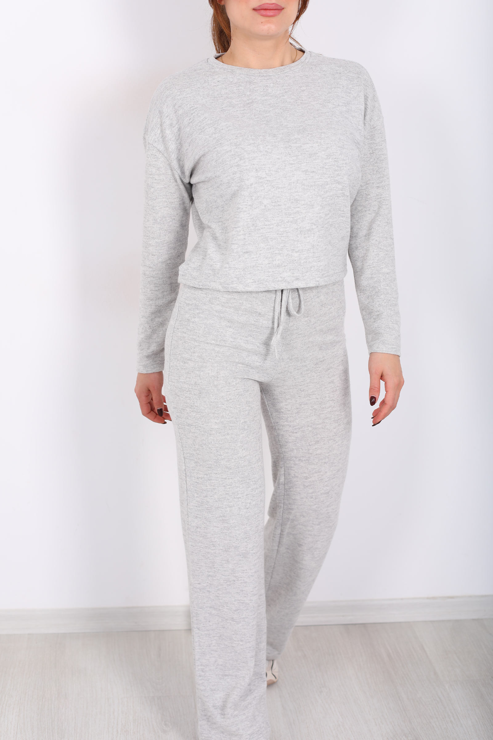 Gri yumoş takım, bisiklet yaka üst ve beli bağlamalı detaylarla rahatlığı modern çizgilerle buluşturuyor. Yumuşacık kumaş dokusu, gün boyu konfor hissi verirken beli bağlamalı tasarım üst parçaya sportif bir karakter kazandırır. Takım bütünlüğü sayesinde zahmetsiz bir kombin yaratmanız kolaylaşır; nötr gri tonu jean, etek veya sneaker gibi farklı parçalarla dengeli uyum sağlar. Sade tasarımın enerjisini yansıtan bu takım, hem ev stilinde hem dışarıda hareketli günlerde tercih edebileceğiniz çok yönlü bir seçenek sunar.