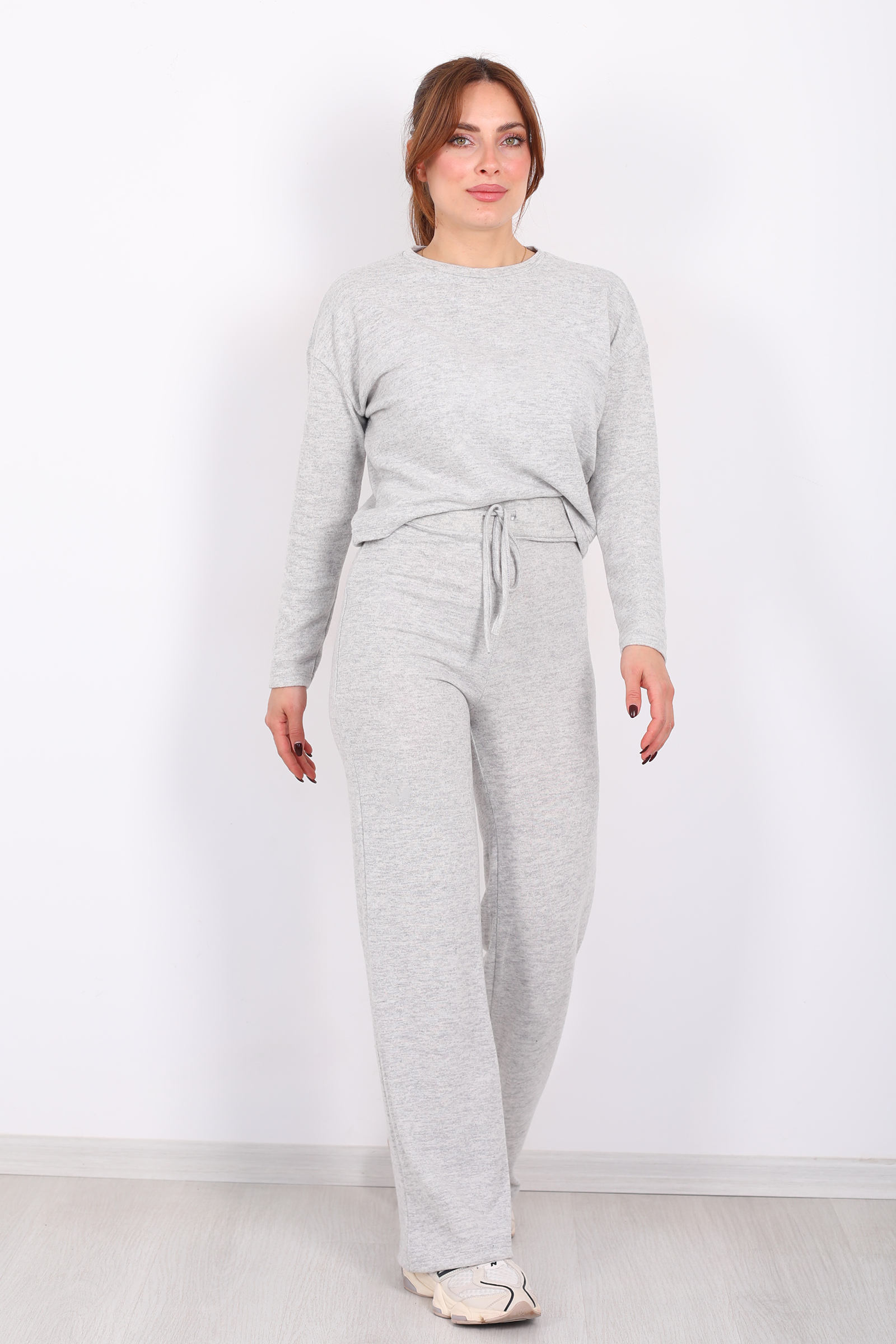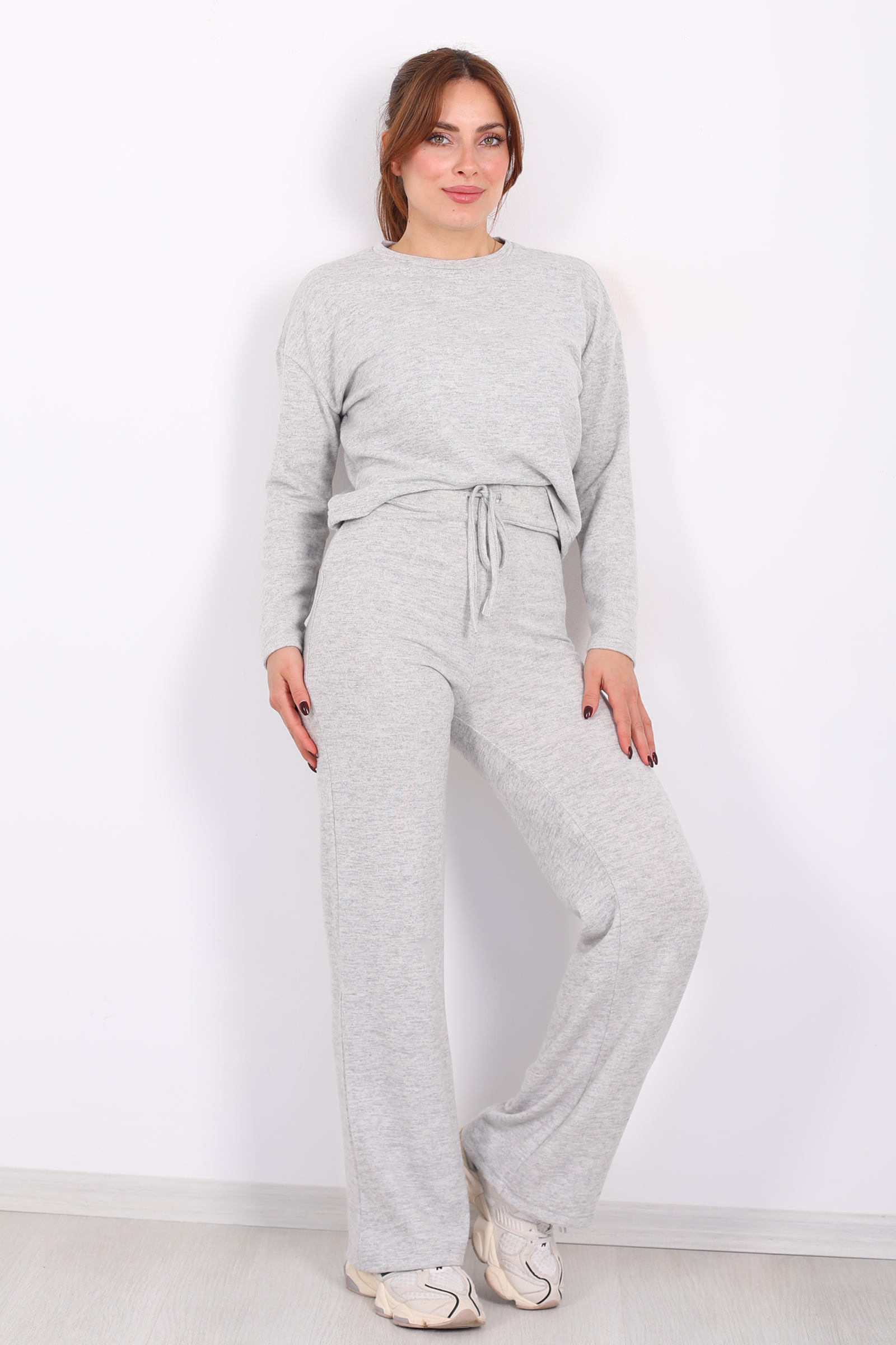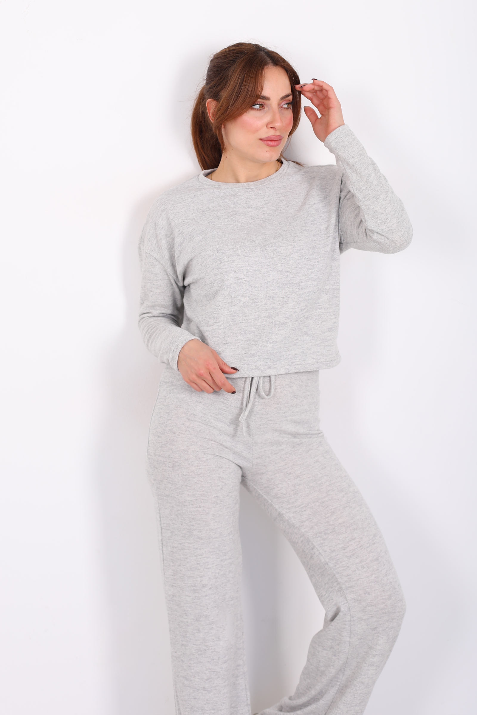 Gri yumoş takım, bisiklet yaka üst ve beli bağlamalı detaylarla rahatlığı modern çizgilerle buluşturuyor. Yumuşacık kumaş dokusu, gün boyu konfor hissi verirken beli bağlamalı tasarım üst parçaya sportif bir karakter kazandırır. Takım bütünlüğü sayesinde zahmetsiz bir kombin yaratmanız kolaylaşır; nötr gri tonu jean, etek veya sneaker gibi farklı parçalarla dengeli uyum sağlar. Sade tasarımın enerjisini yansıtan bu takım, hem ev stilinde hem dışarıda hareketli günlerde tercih edebileceğiniz çok yönlü bir seçenek sunar.