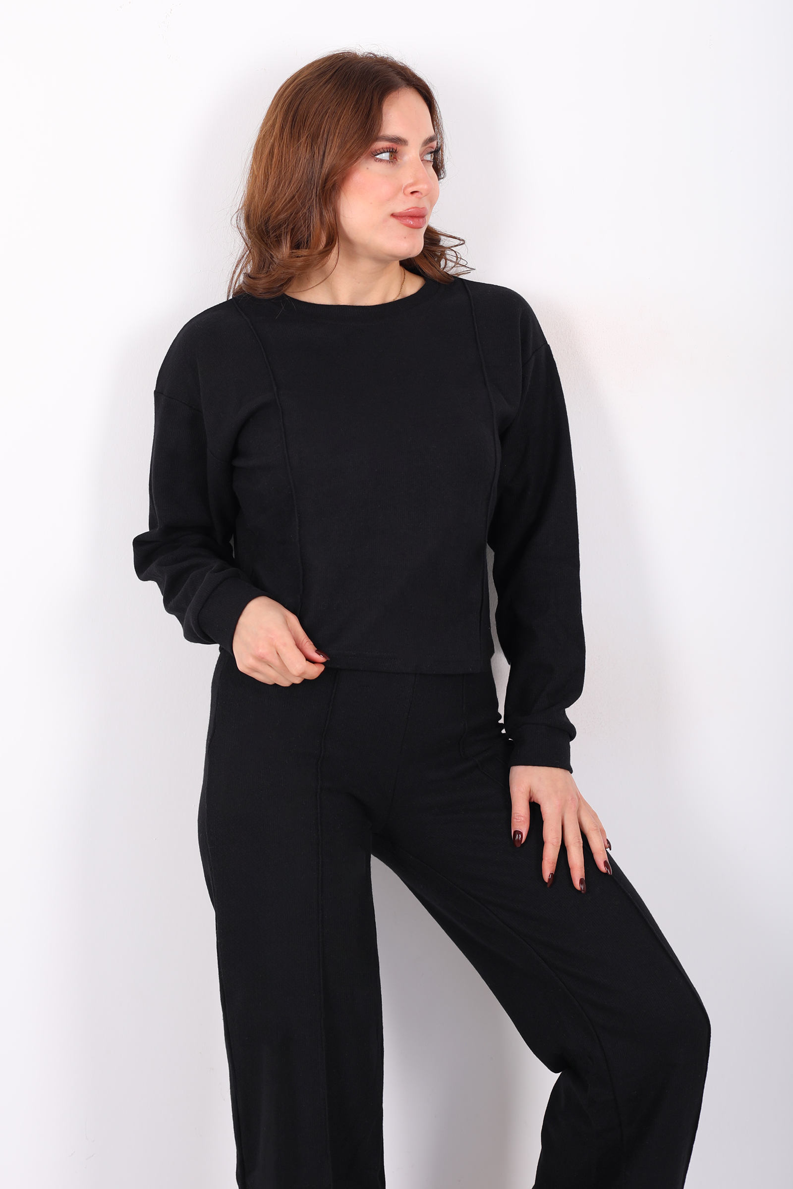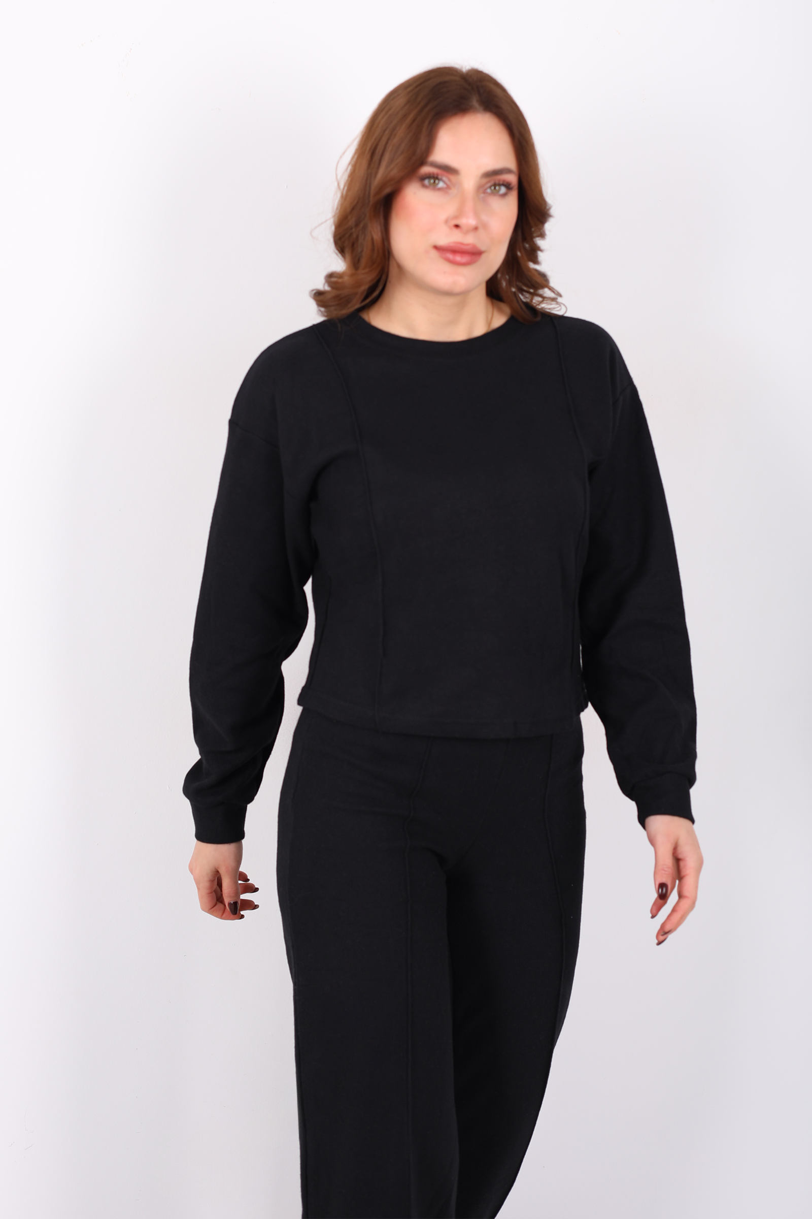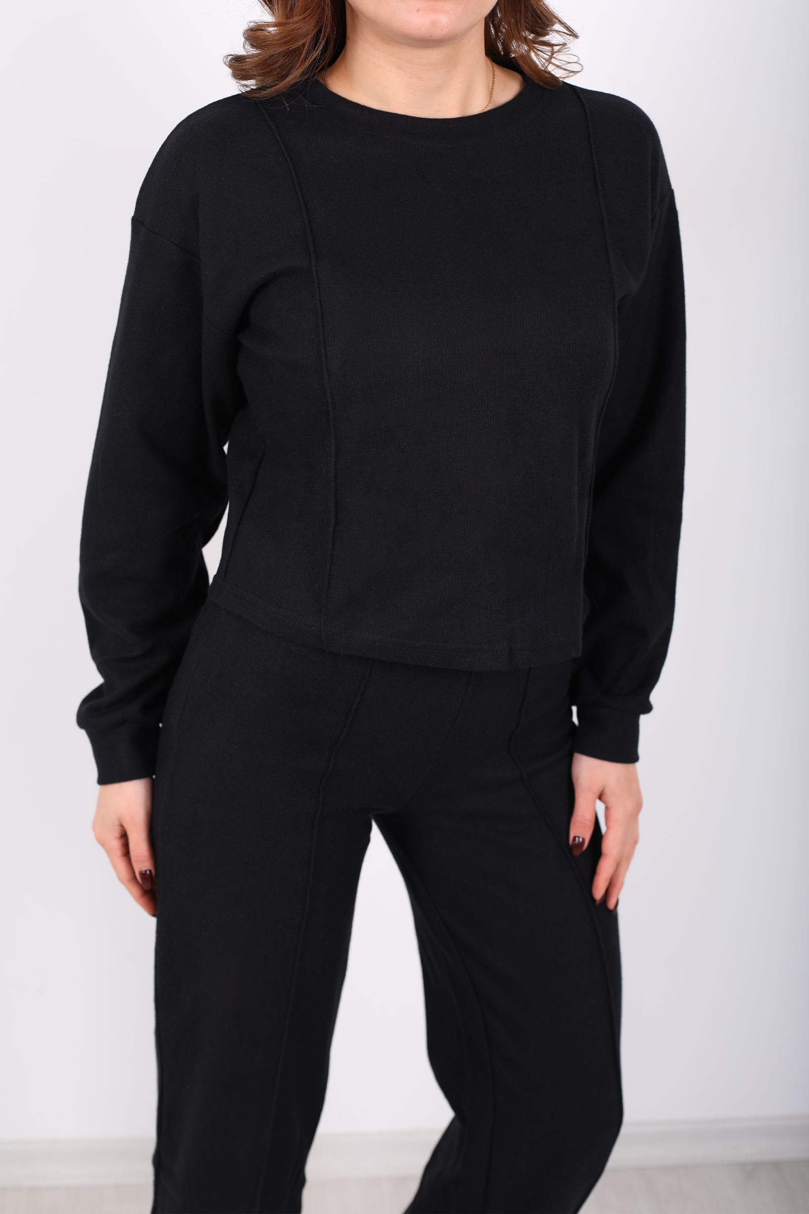 Bisiklet Yaka Çimalı Siyah Kadın Selanik Takım