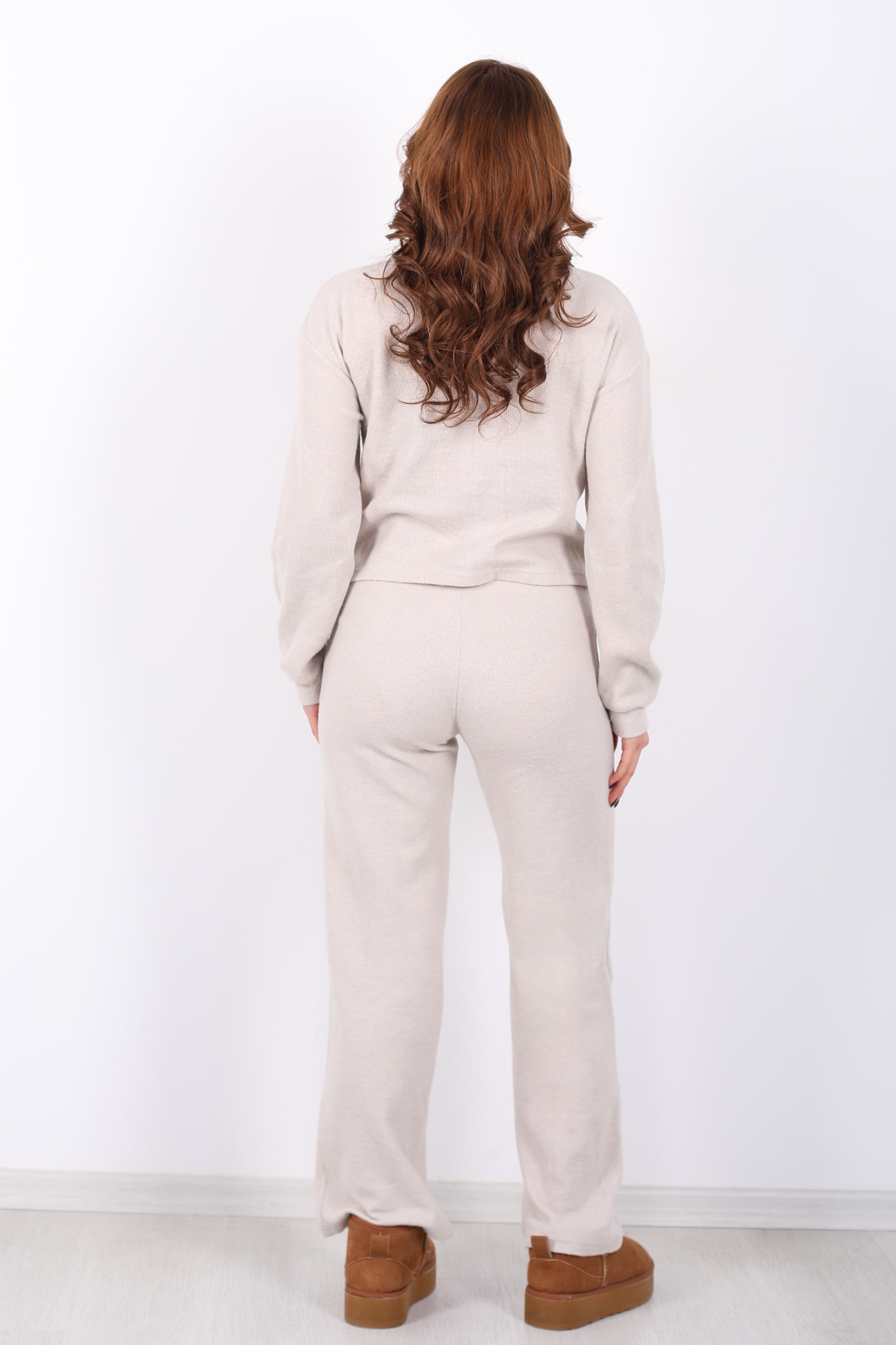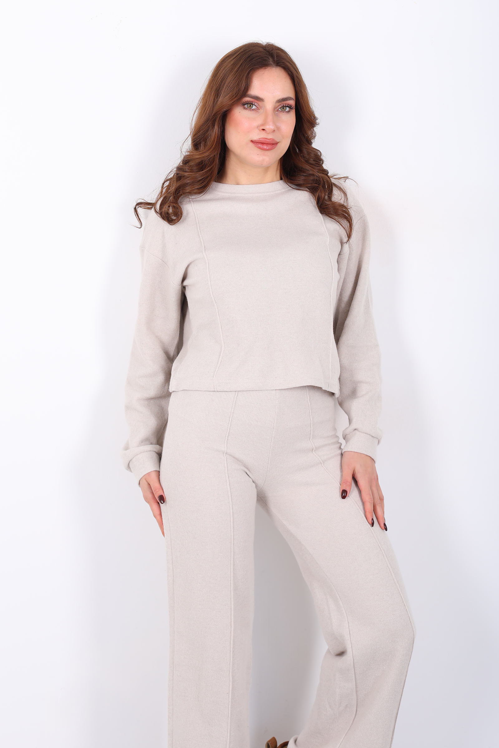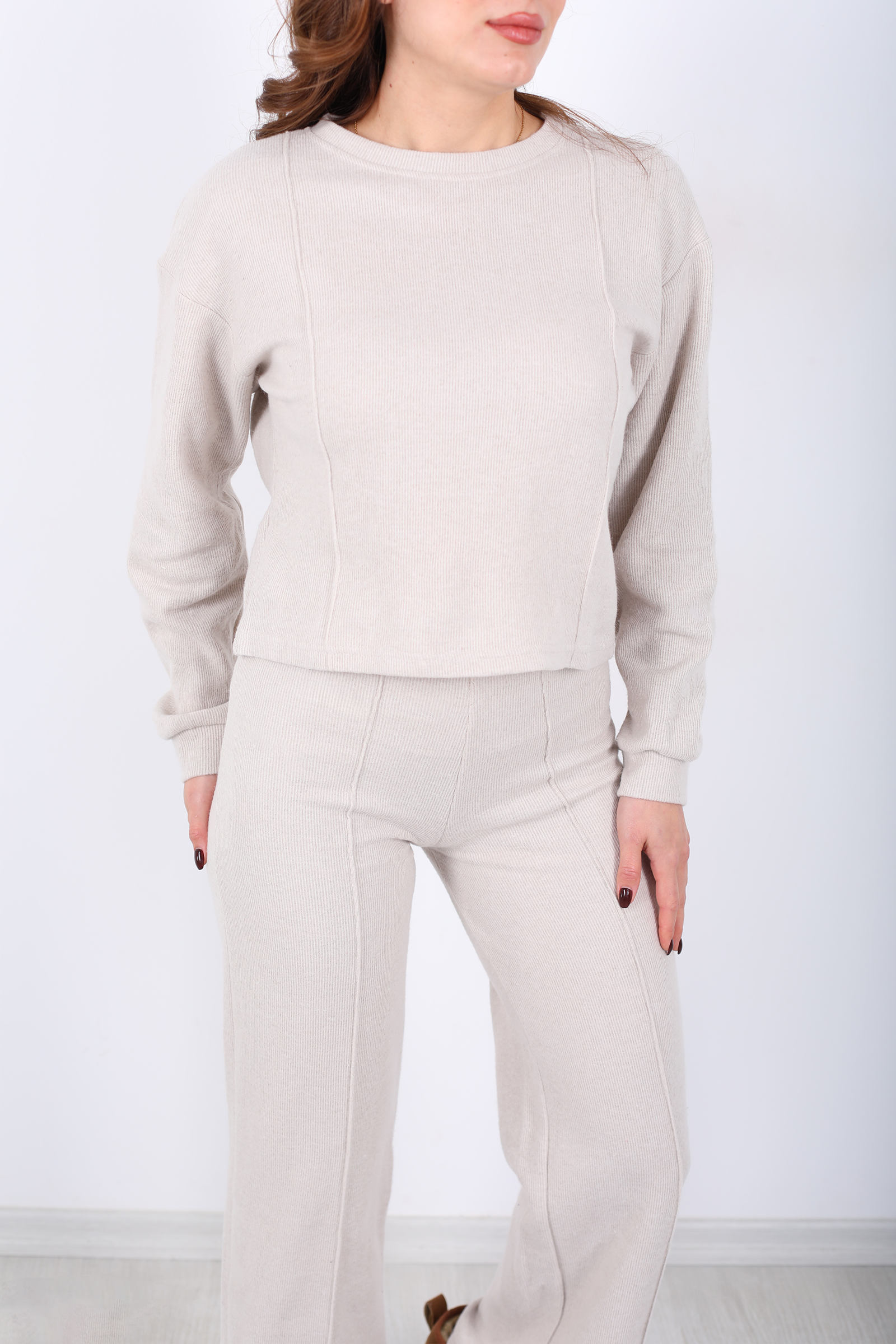 Bisiklet Yaka Çimalı Taş Rengi Kadın Selanik Takım
