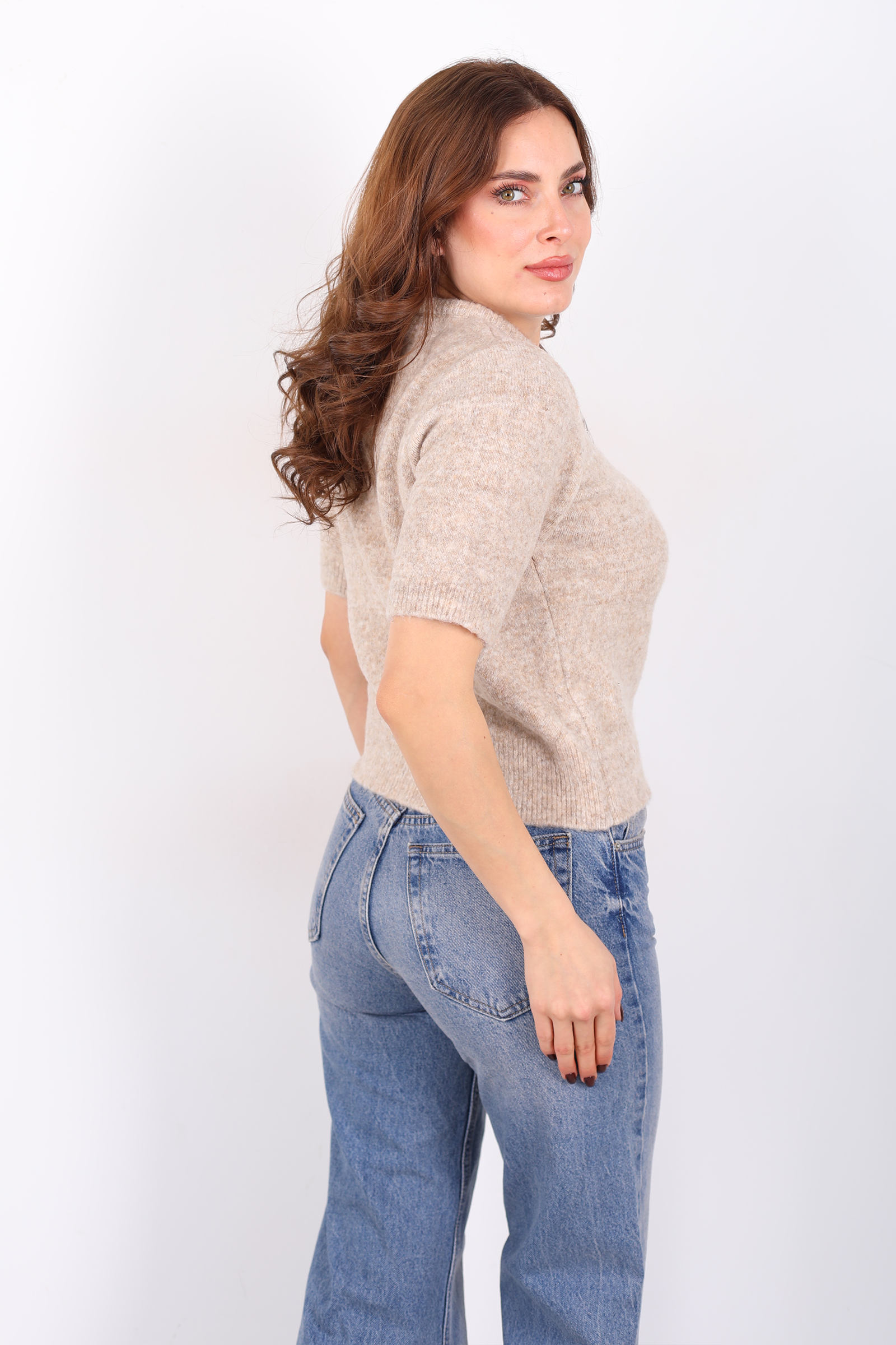 Maddonna Yaka Kısa Kol Fitilli Bej Kadın Triko Kazak