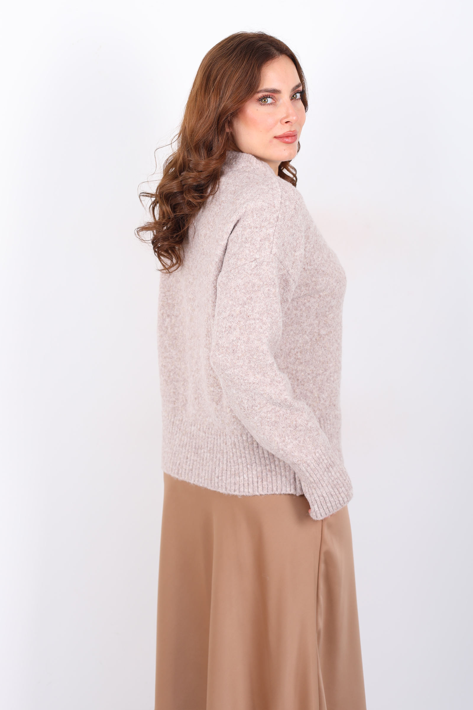 Bisiklet Yaka Bej Kadın Triko Kazak