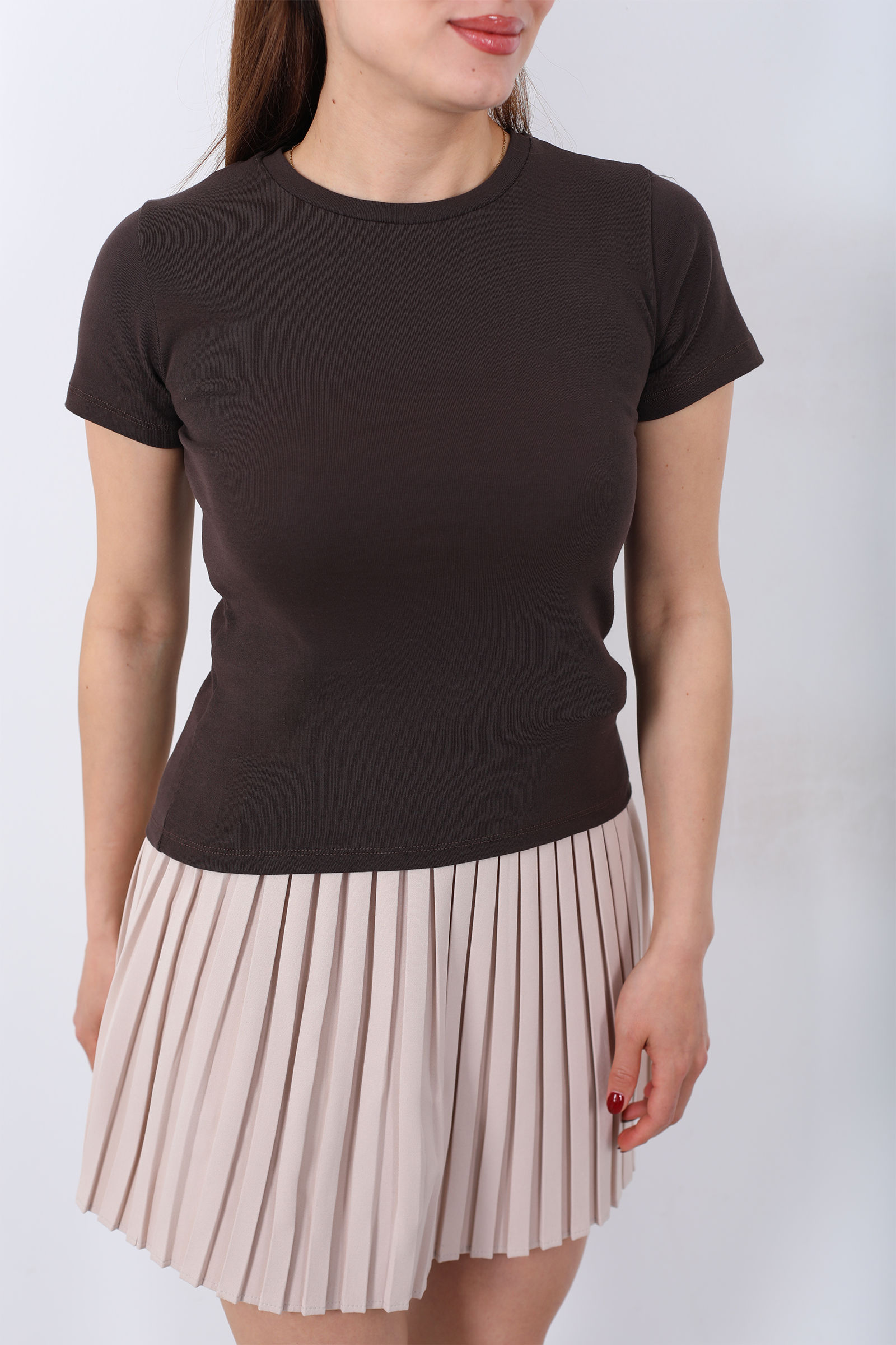 Bisiklet Yaka Kısa Kol Kadın Acı Kahve Basic Body