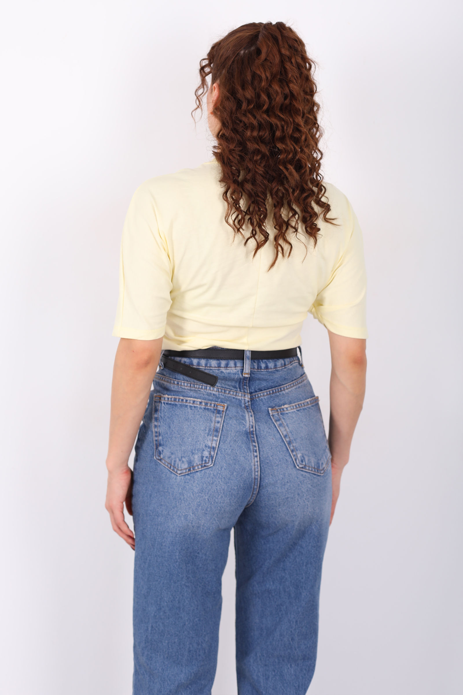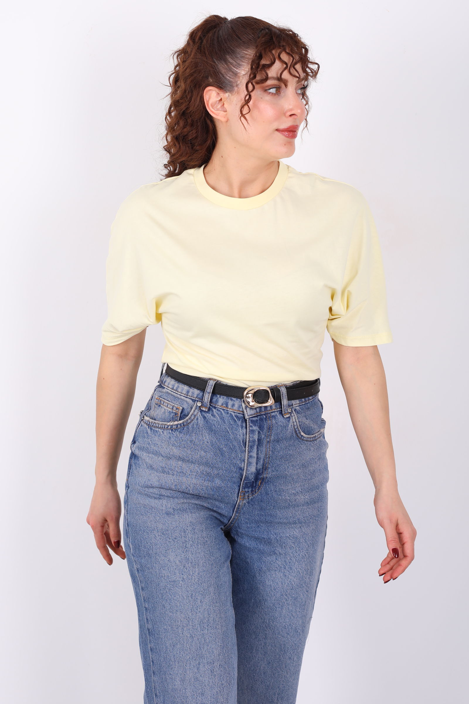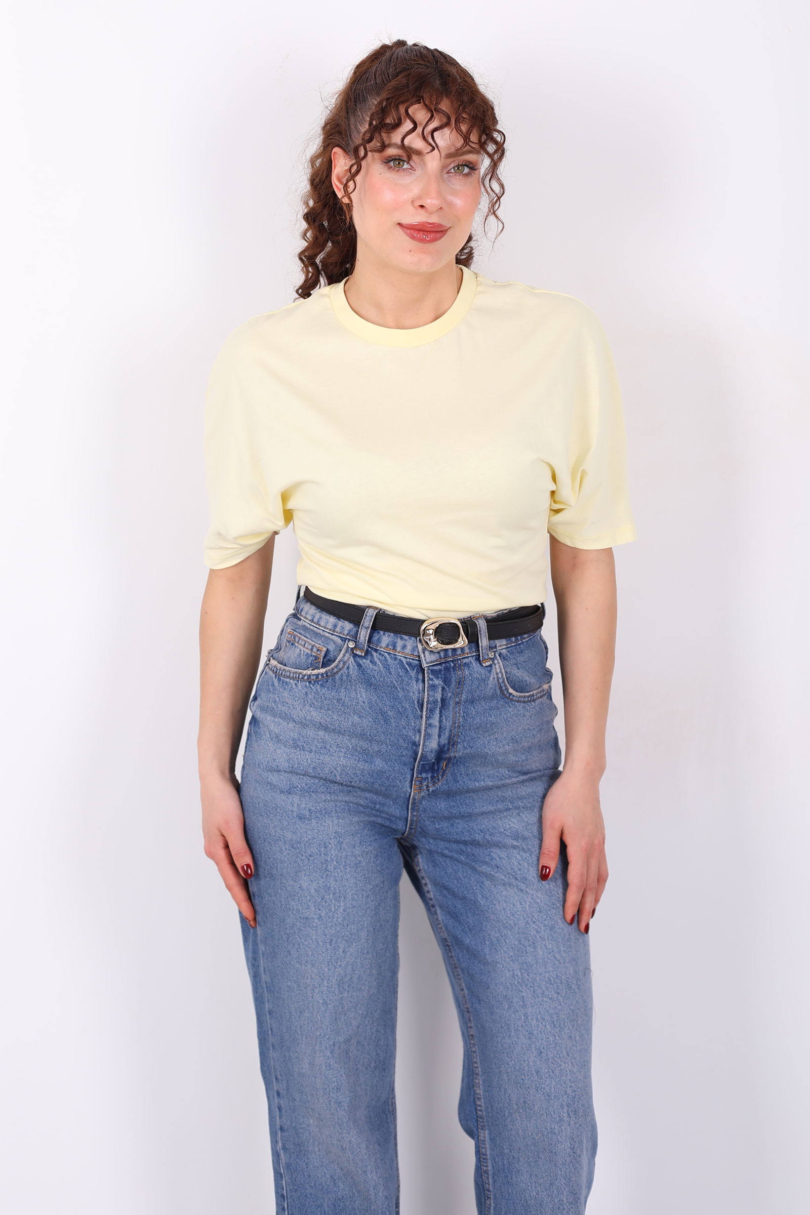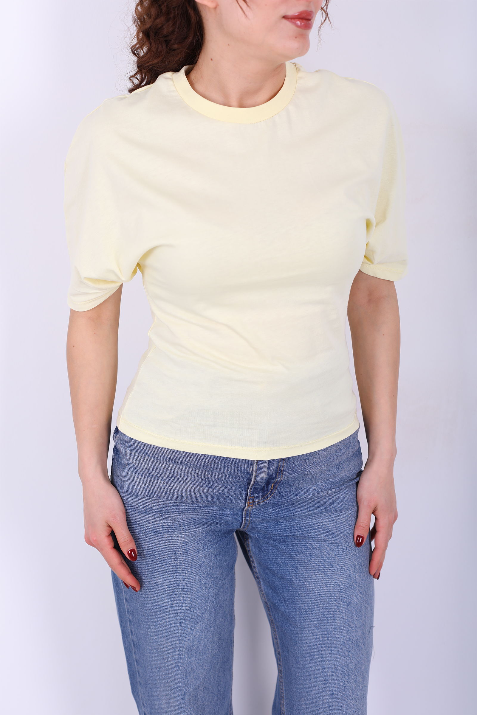 Bisiklet Yaka Kol Altı Drapeli Kısa Kol Sarı Kadın T-Shirt