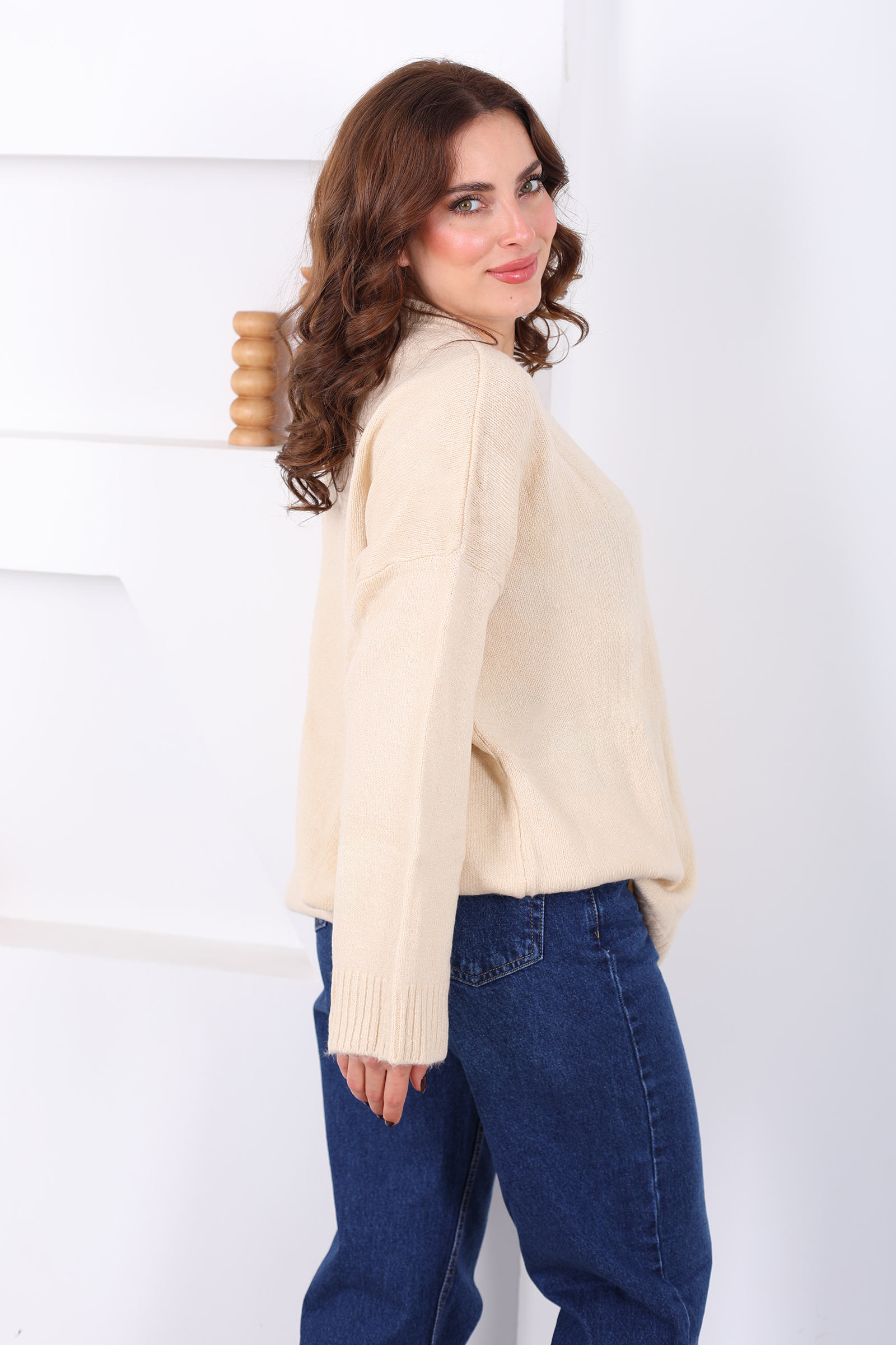 Boğazlı Yarasa Kol Ekru Kadın Triko Kazak