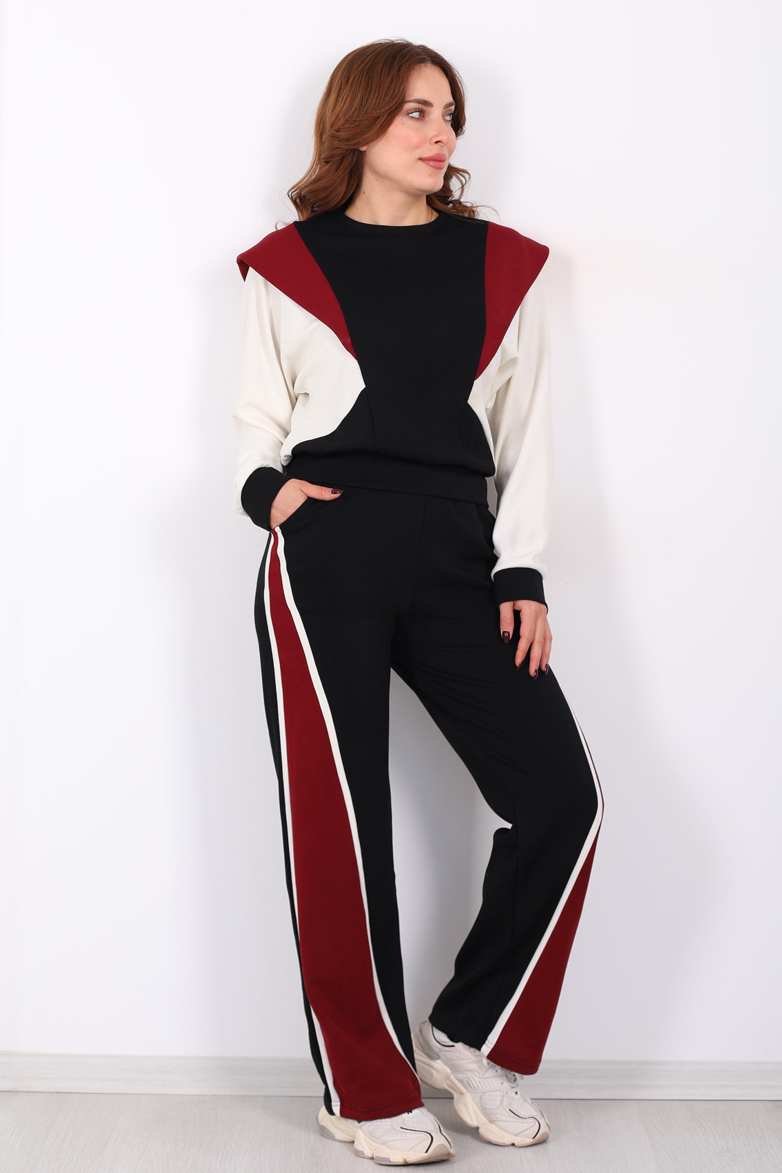 Renkli detaylarla modernliği kucaklayan Bisiklet Yaka Renkli Siyah Kadın Modal Takım, sade ama dikkat çekici bir stil arayanların gardırobuna ideal bir eşlikçidir. Bisiklet yaka tasarımı, üst parçaya sportif‑şık bir hava verirken, renkli şerit ve detaylar takıma canlılık katar. Modal kumaşın yumuşak ve nefes alan dokusu, gün boyu konfor sağlar ve vücuda hoş bir uyumla oturur.