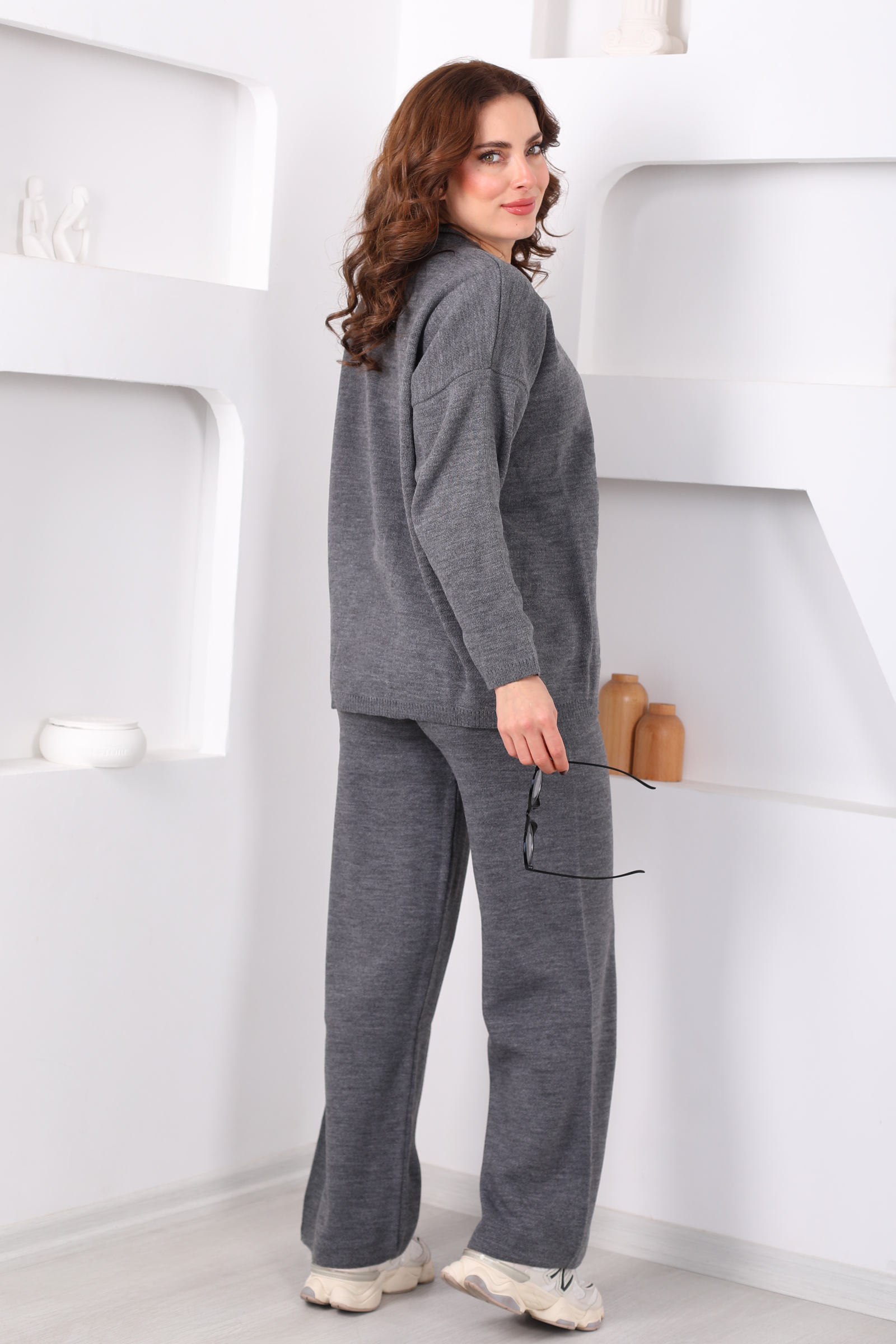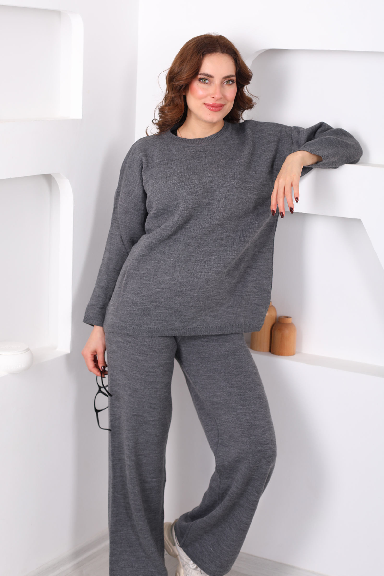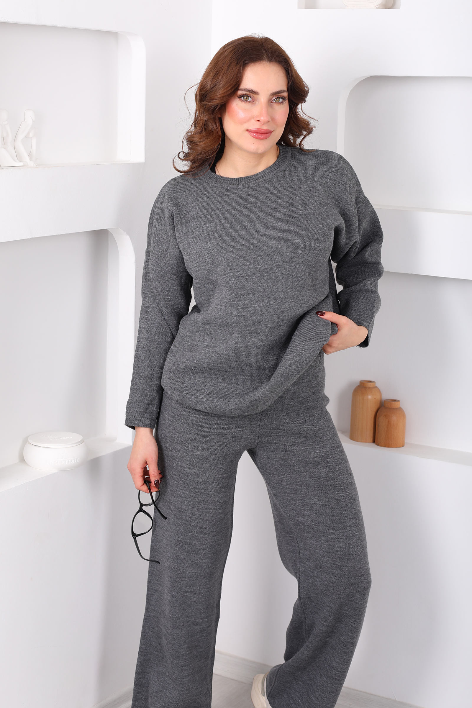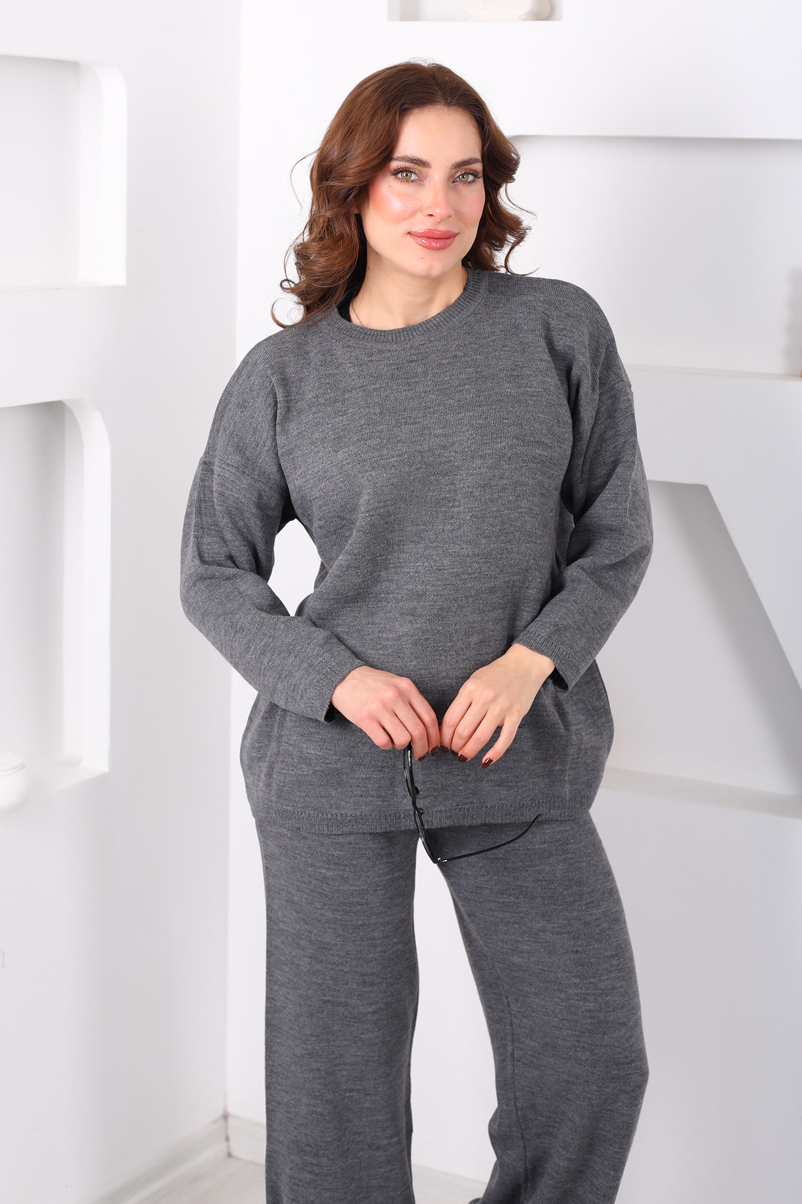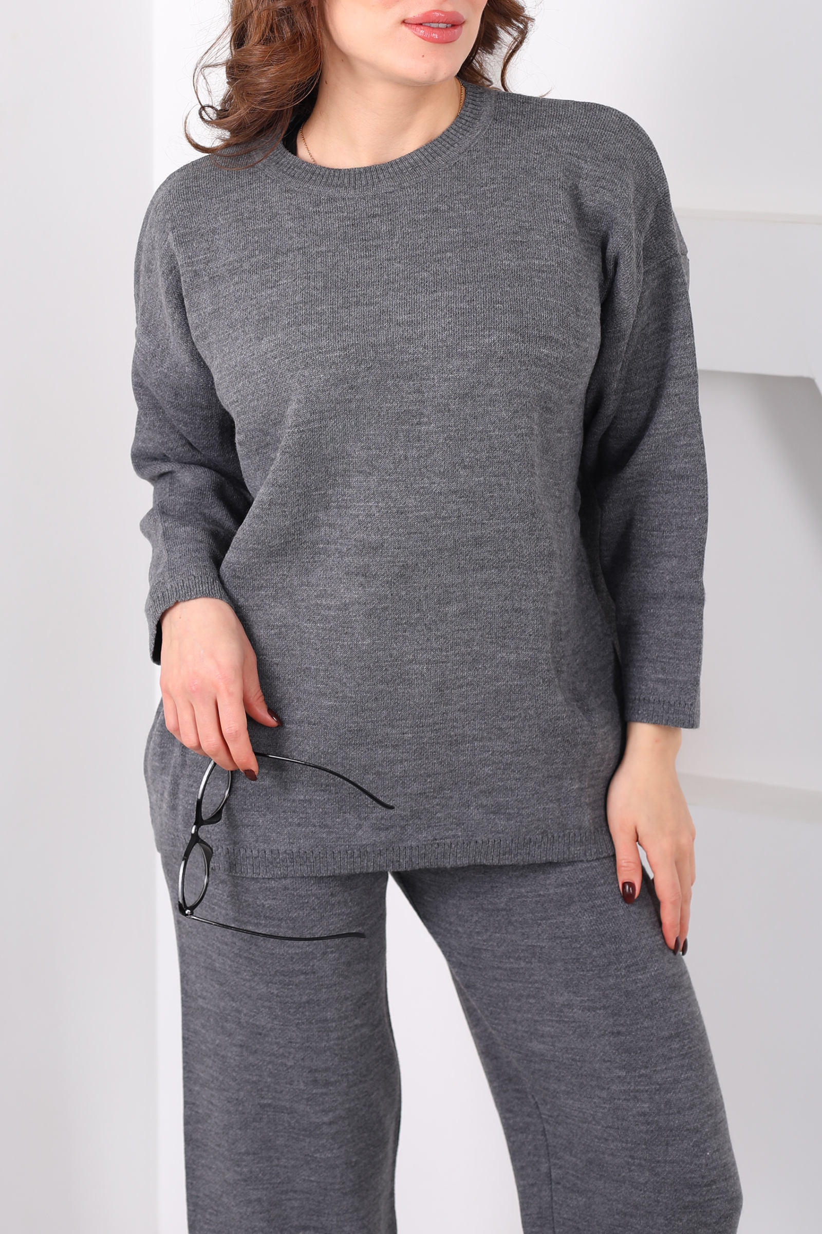 Bisiklet Yaka Salaş Füme Kadın Triko Takım