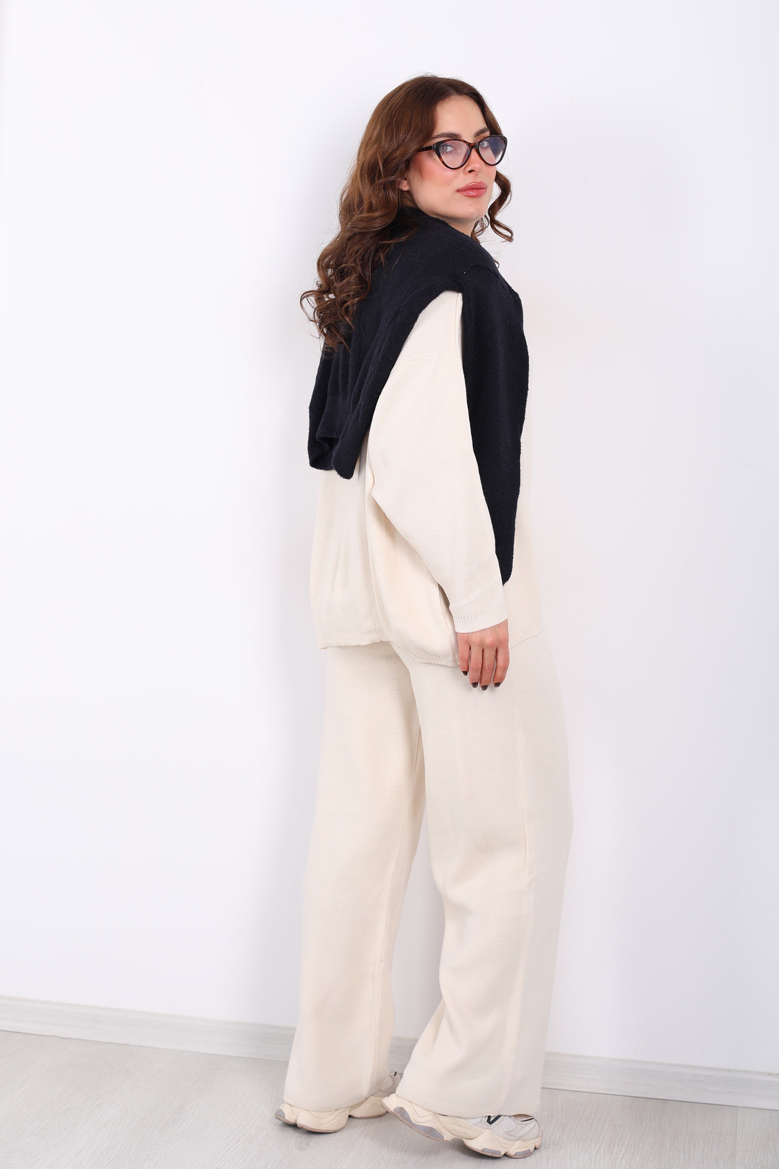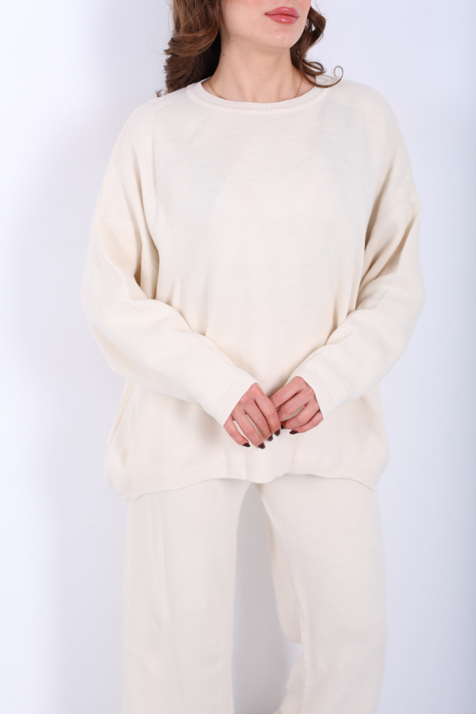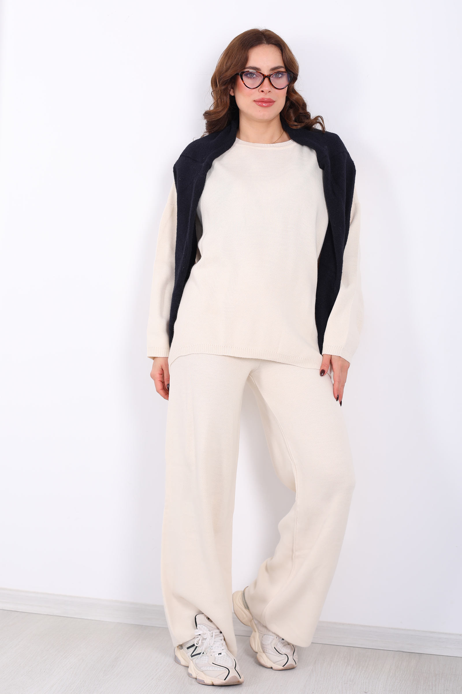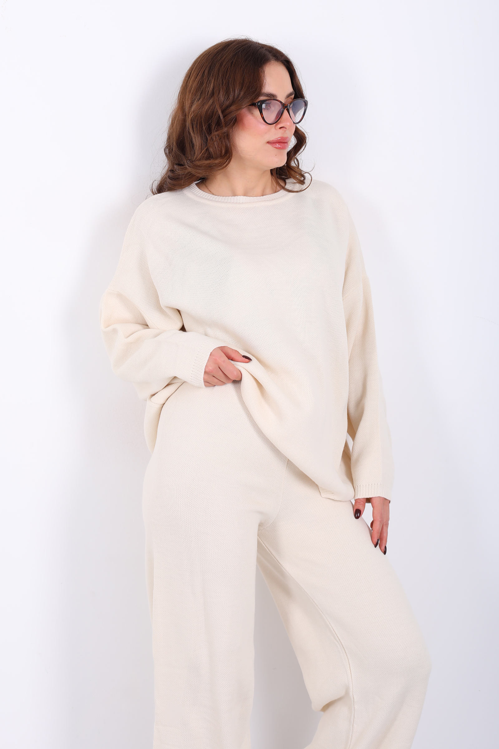 Bisiklet Yaka Salaş Krem Kadın Triko Takım