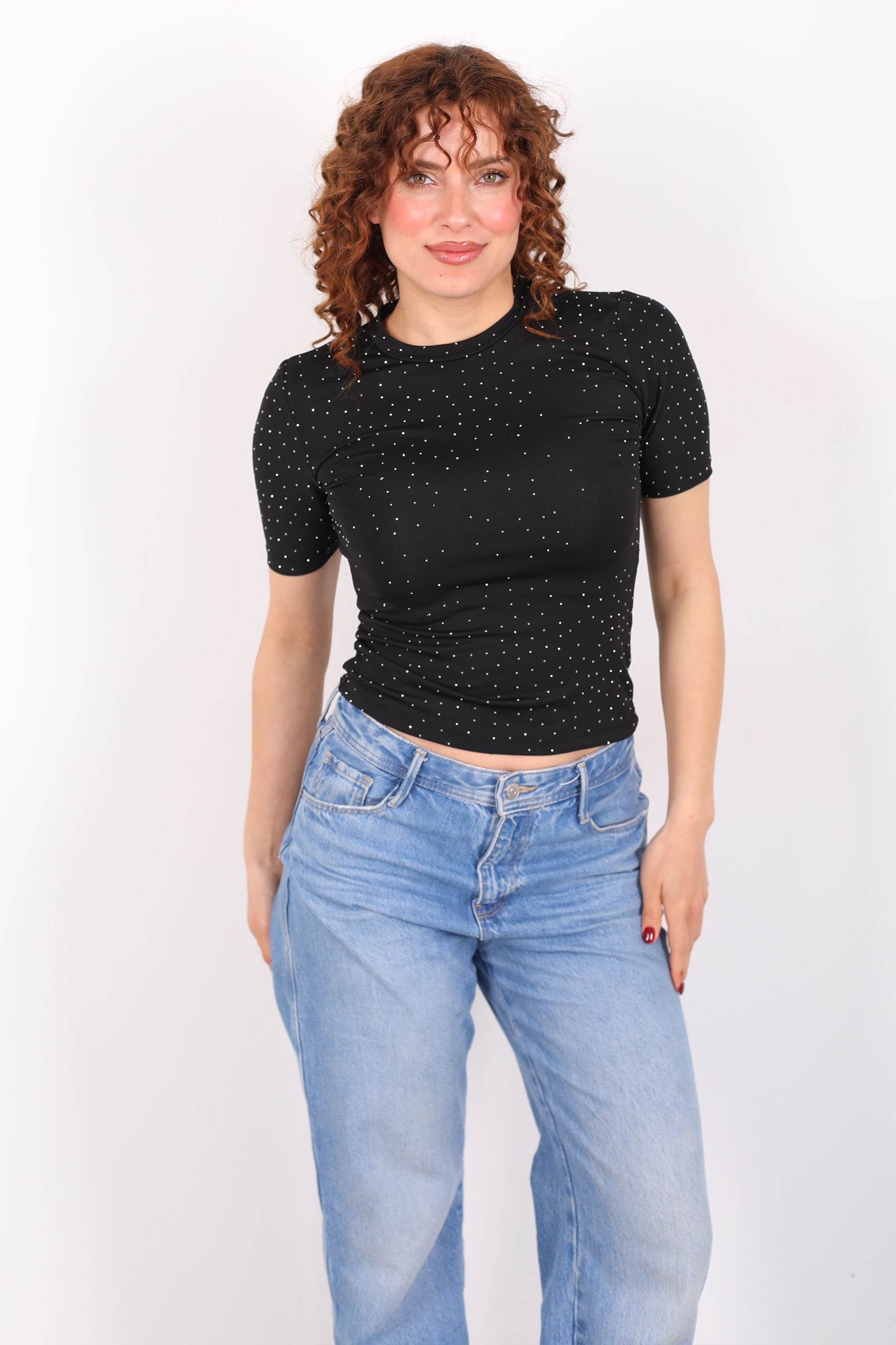 Bisiklet Yaka Taşlı Siyah Kadın Basic Body