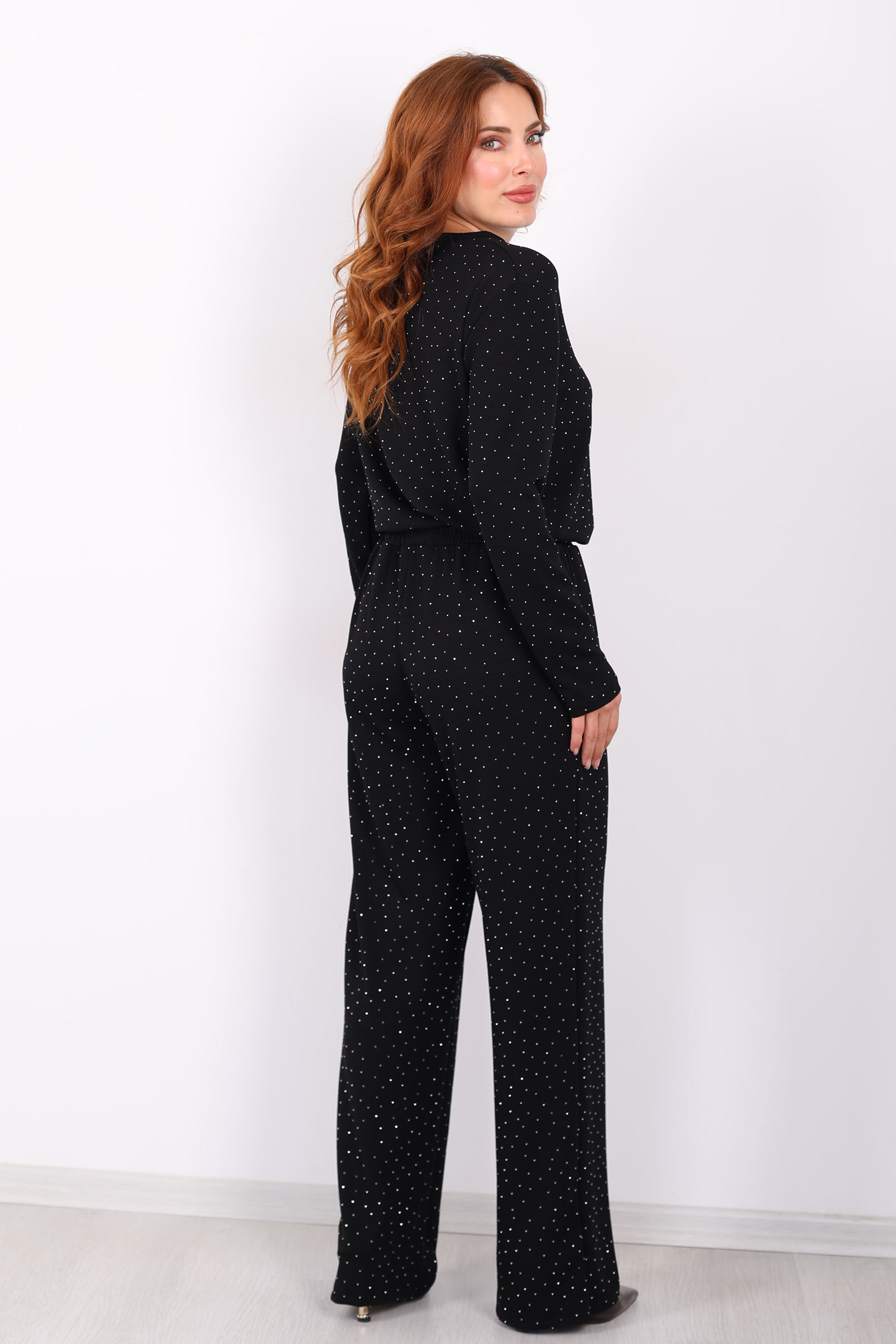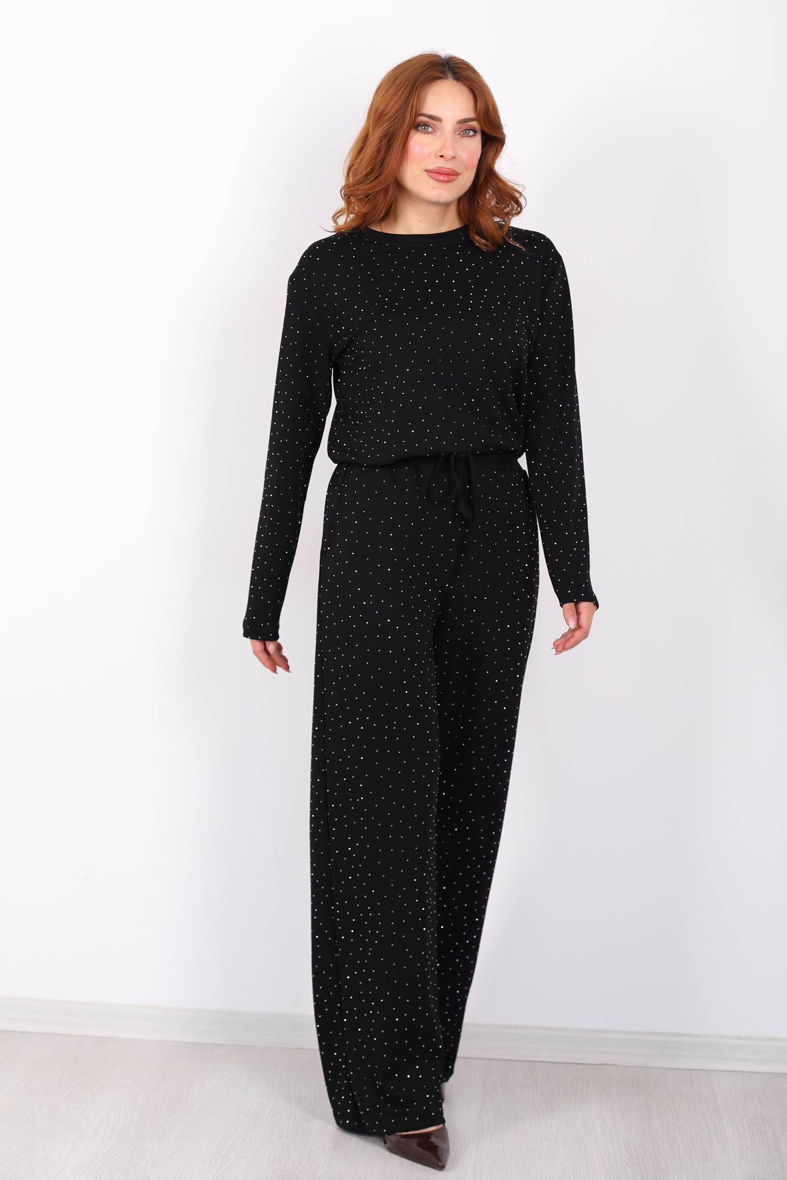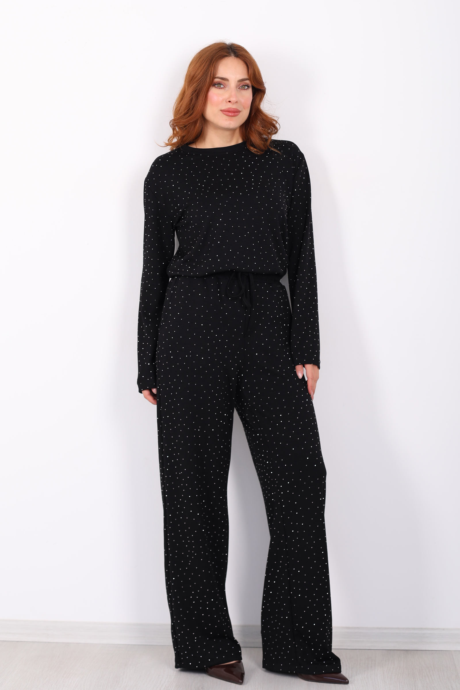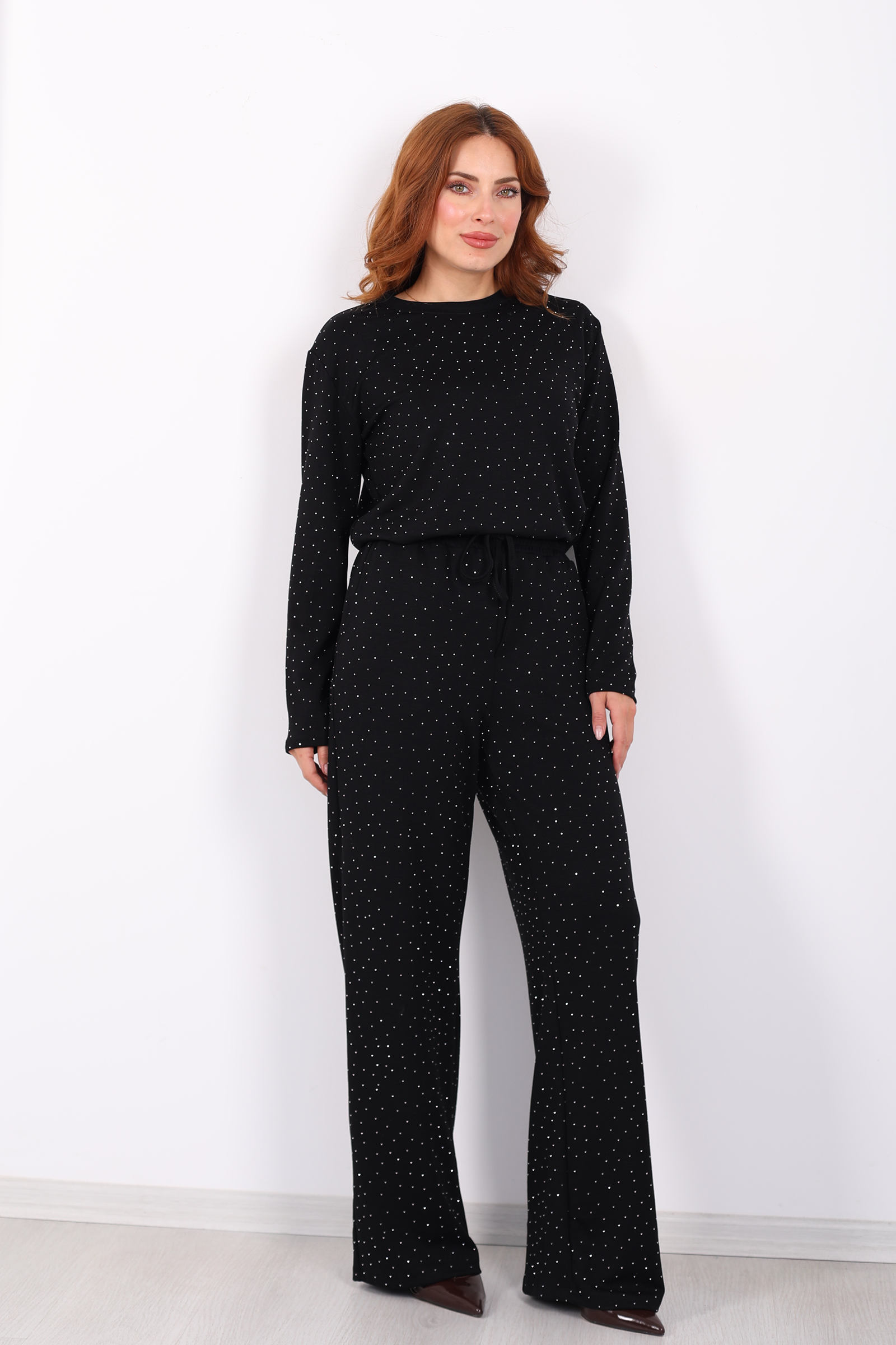 Bisiklet Yaka Taşlı Siyah Kadın Modal Takım