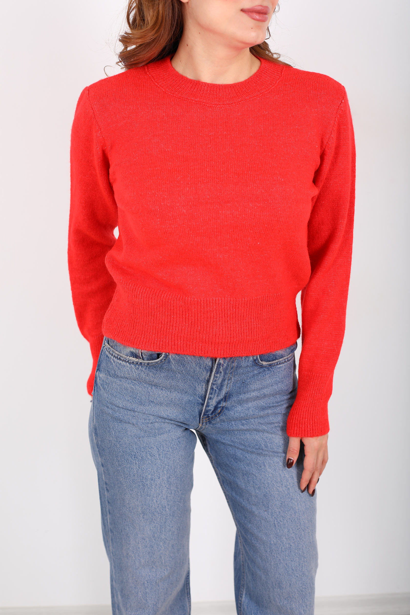 Yakın dokunuşta trikonun sıcak ve yumuşak yapısı, sanki teninizi hafif bir kucaklamayla sarar ne çok sıkı ne çok bol, tam olması gerektiği gibi. Bisiklet yakası ise boyun hattını sade ve dengeli bir şekilde ortaya çıkarır; bu da kazakla kurduğunuz her kombine doğal bir uyum sağlar.