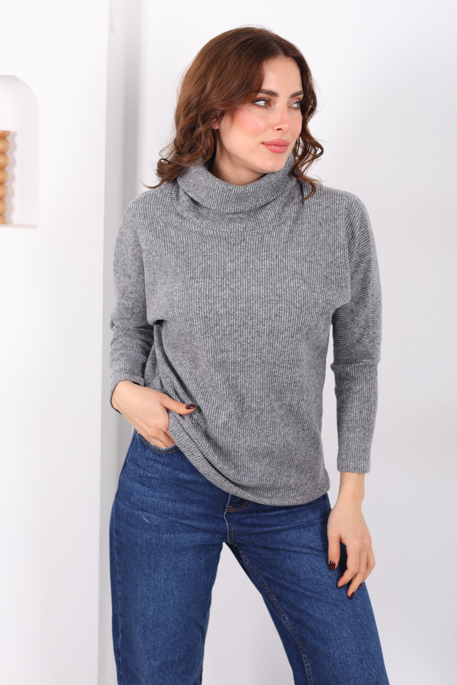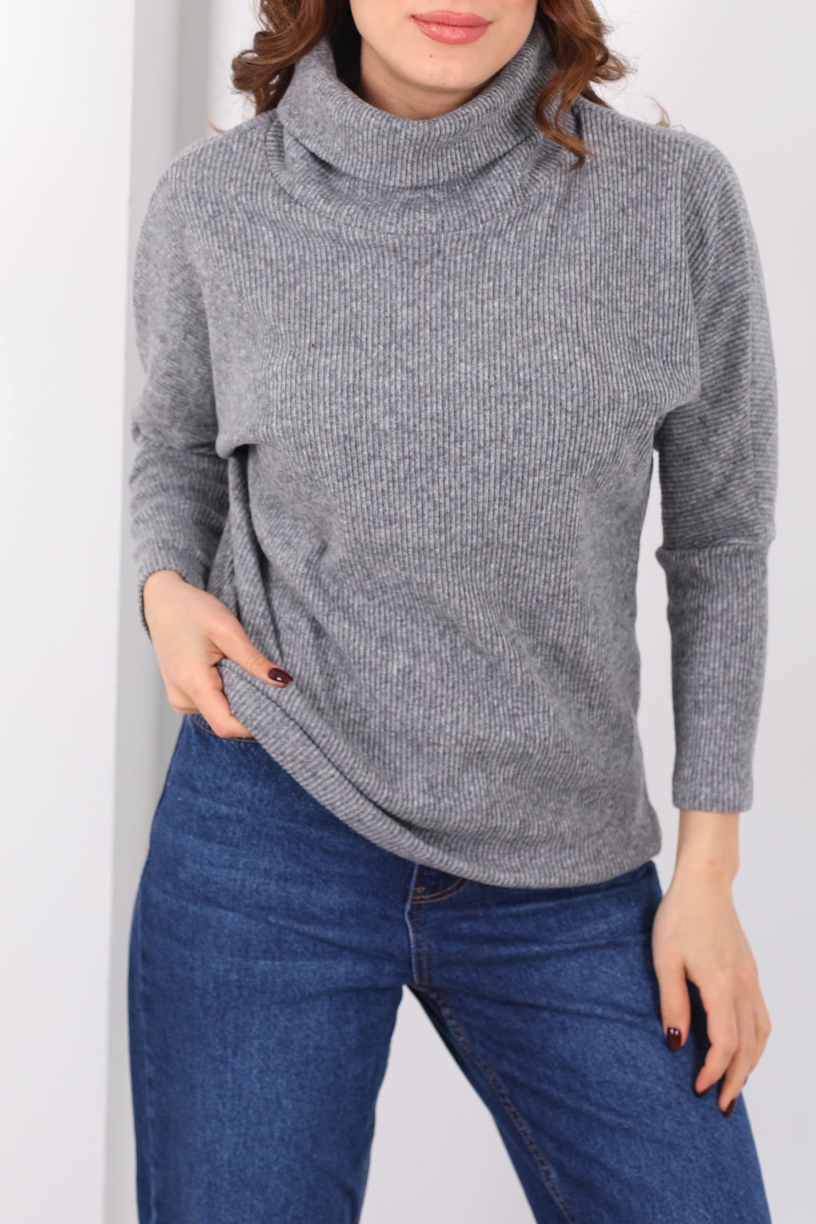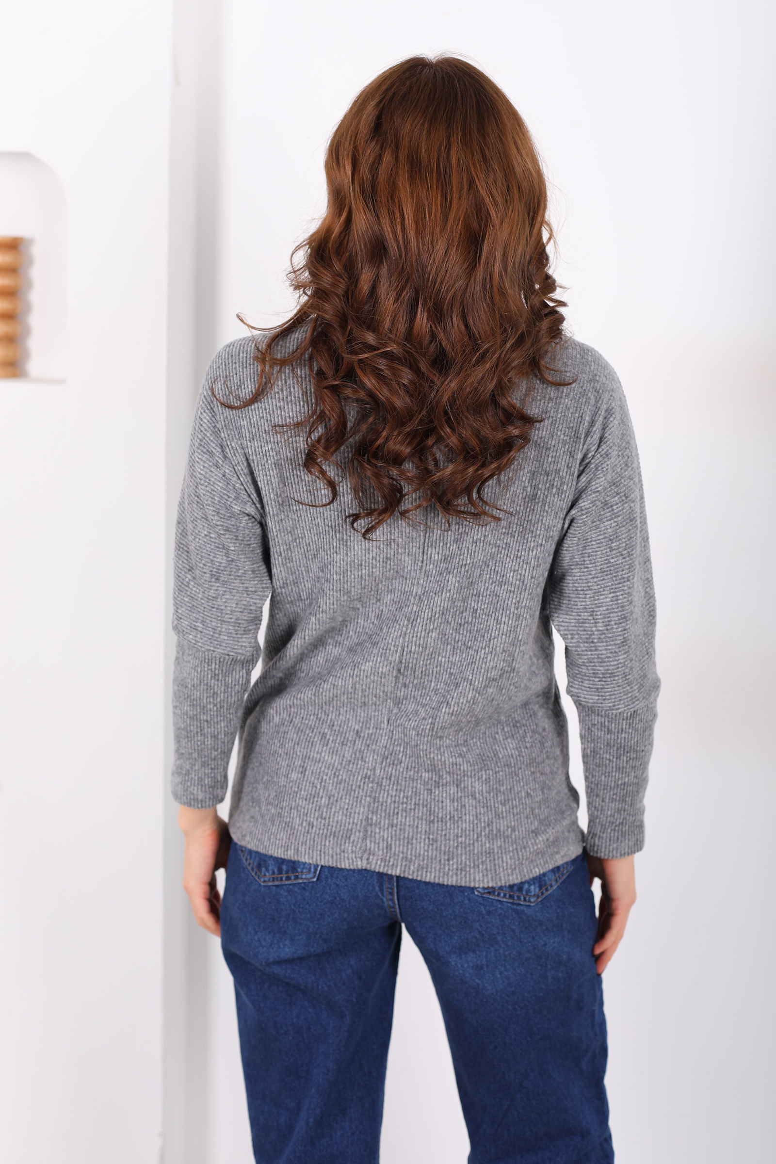 Boğazlı Yarasa Kol Antrasit Kadın Triko Kazak
