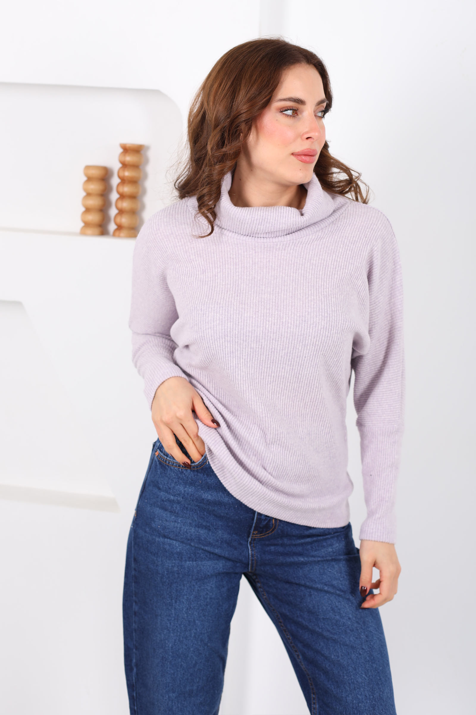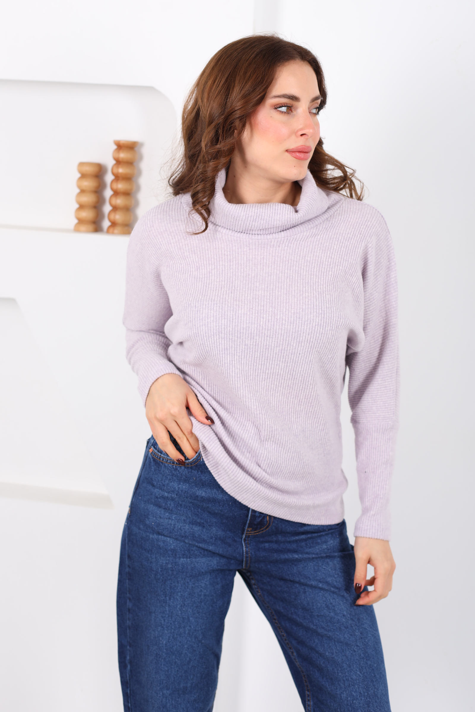 Boğazlı Yarasa Kol Lila Kadın Triko Kazak