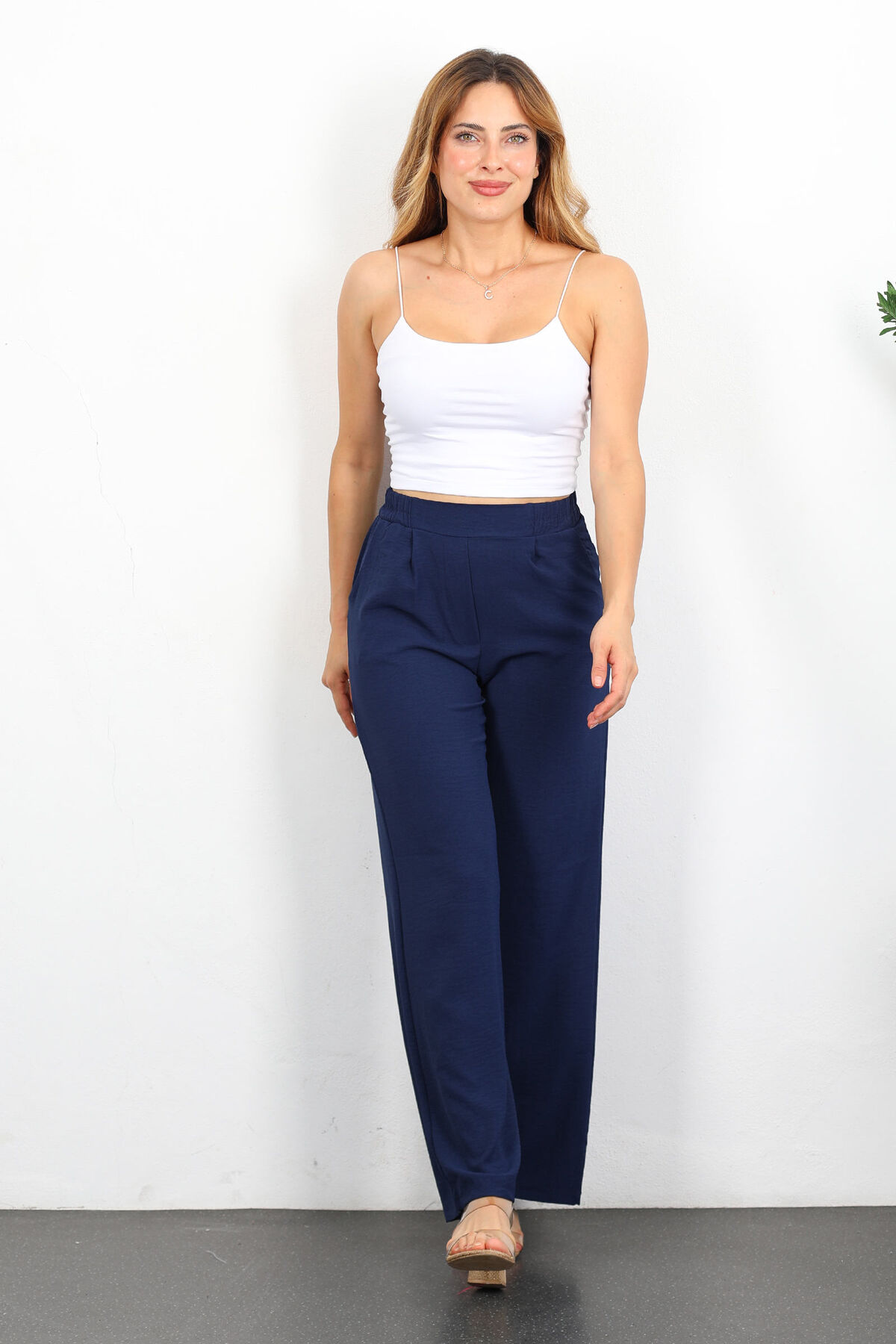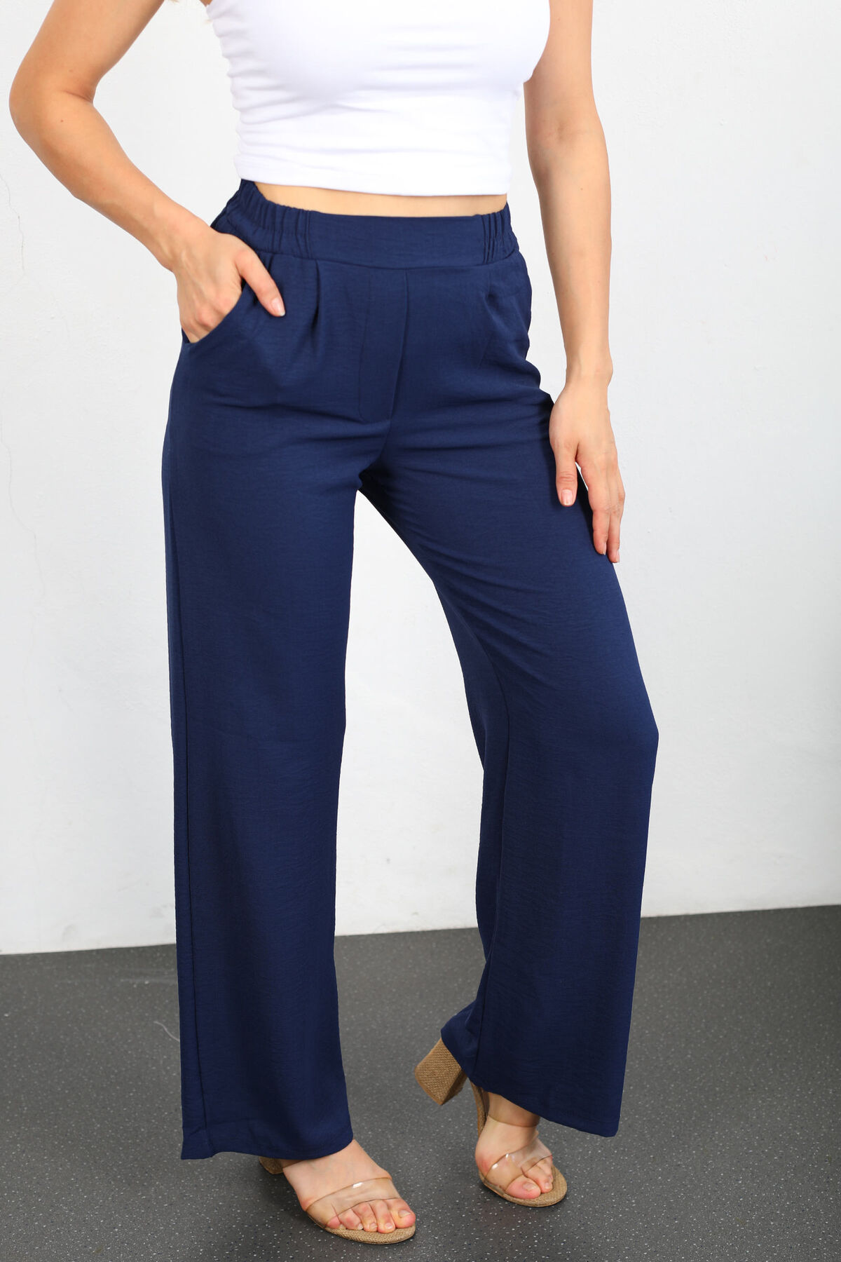 Lacivertin serin ve huzurlu tonunu üzerinizde taşıyan bu bol paça pantolon, Ayrobin kumaşın nefes alan, hafif ve dökümlü dokusuyla adeta üzerinizde akar. Beli lastikli detayın sağladığı zarif konforla birlikte, sıcak havalarda bile ferah bir giyim deneyimi sunar. Kırışmaya karşı dirençli bu kumaş, ütü derdini ortadan kaldırır; pratik bakımı sayesinde her zaman şık ve bakımlı görünmenize yardımcı olur.