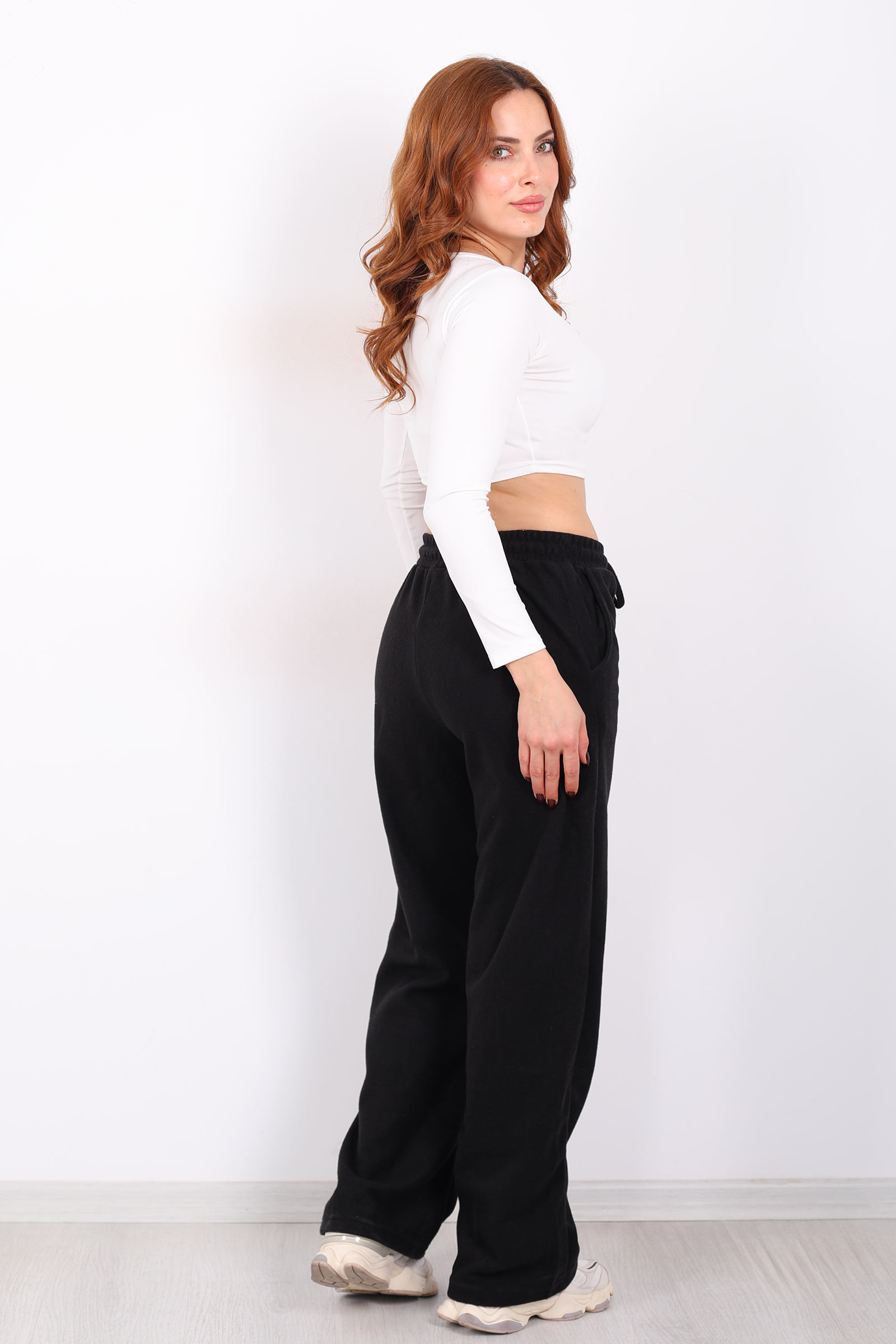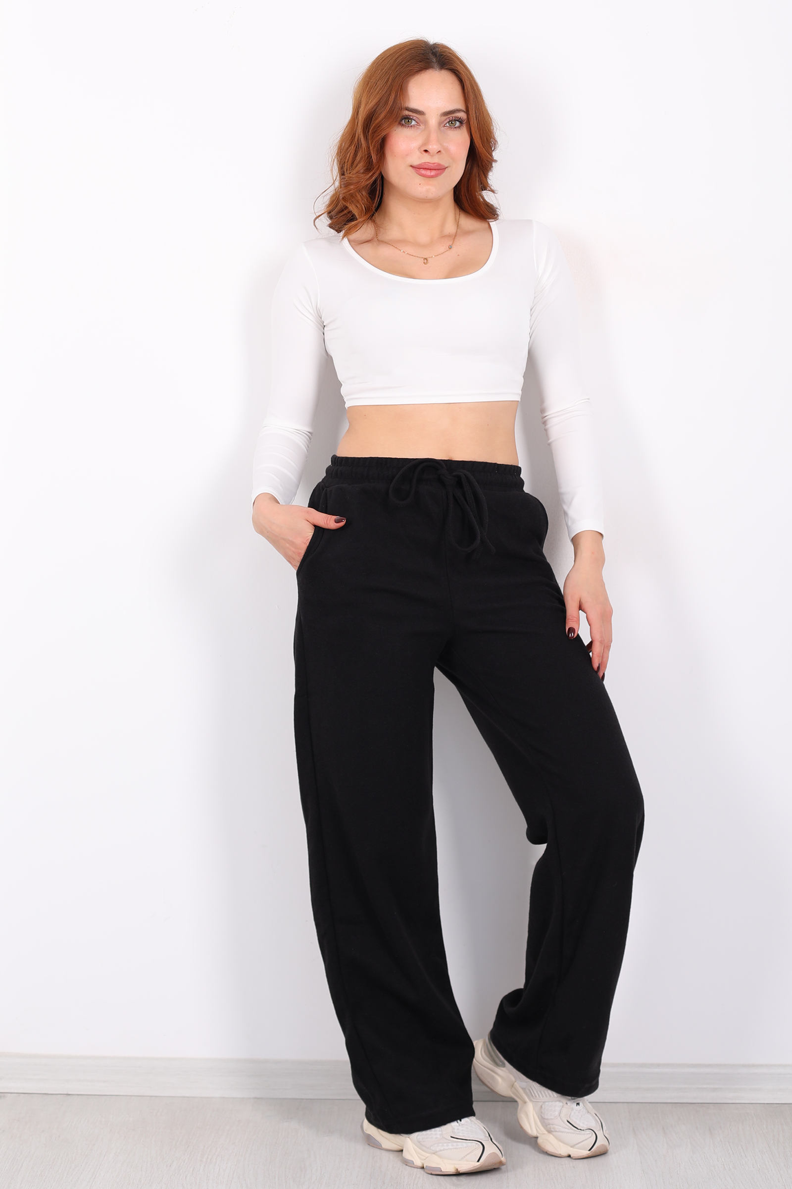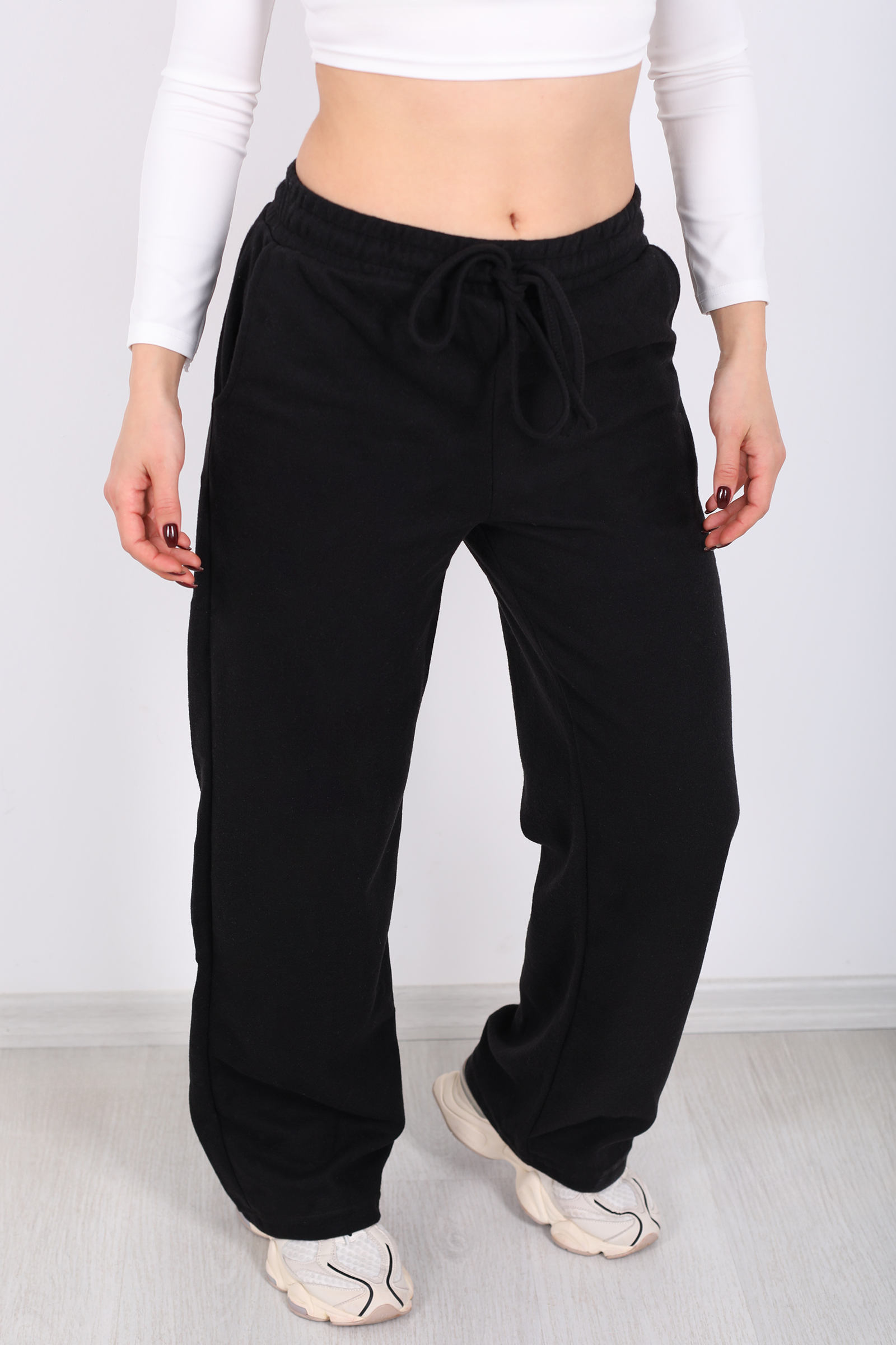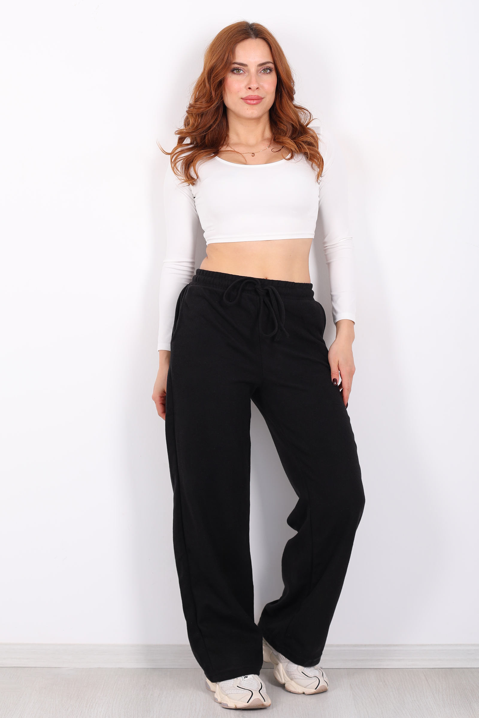 Bol Paça Beli Lastikli Siyah Kadın Pantolon
