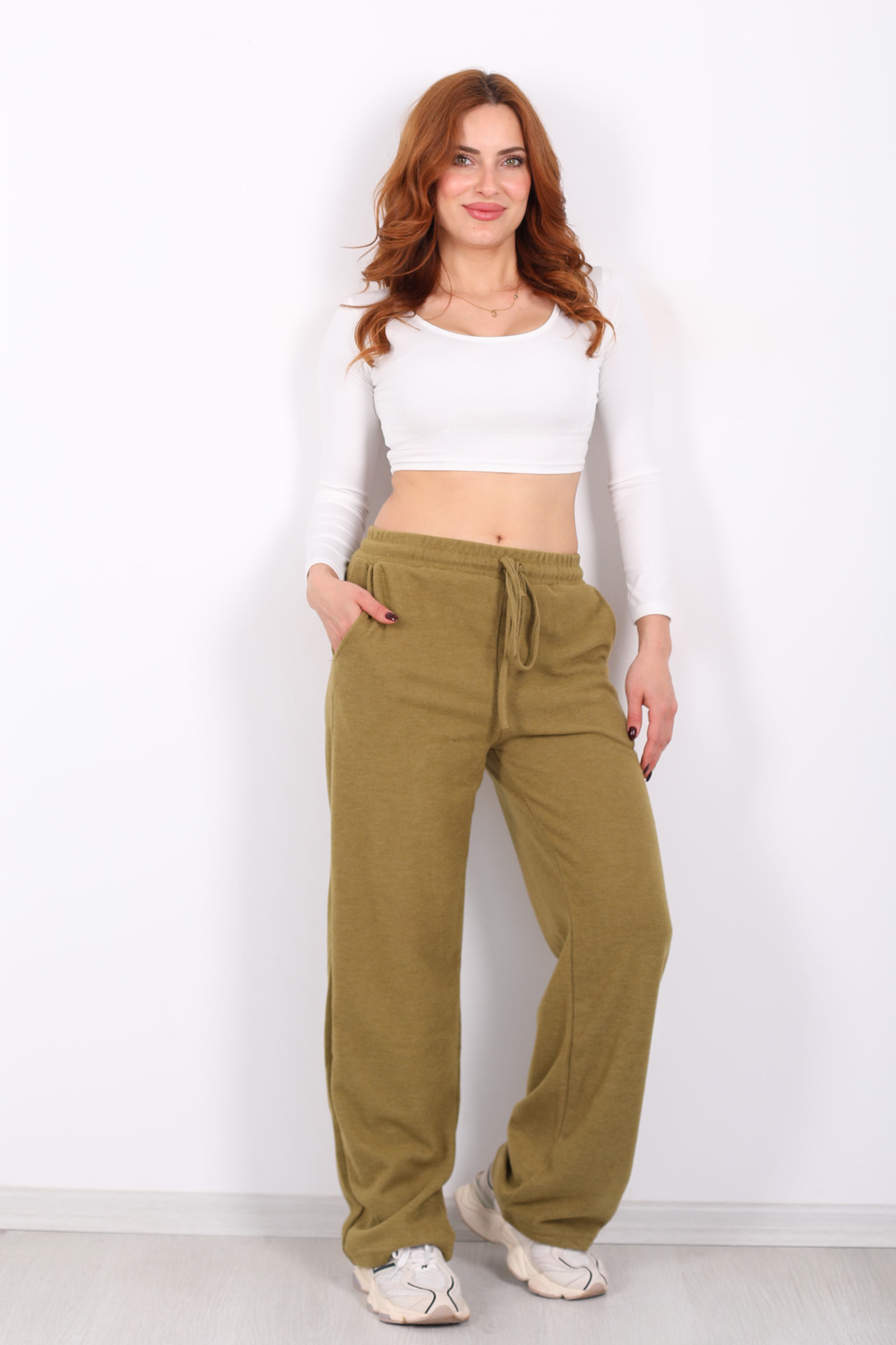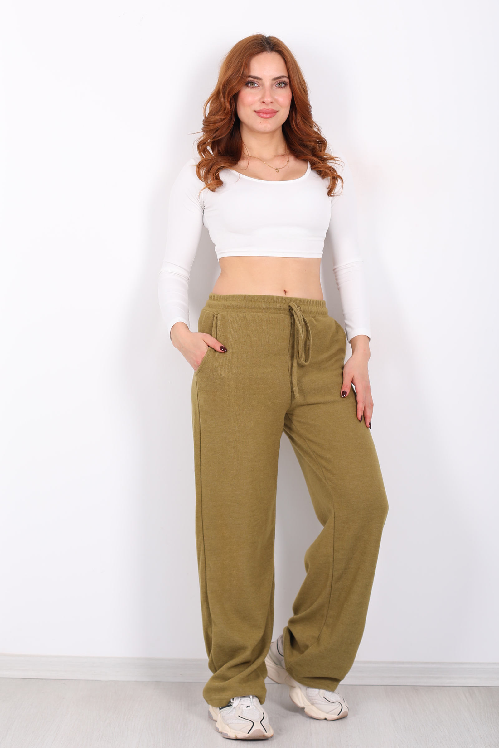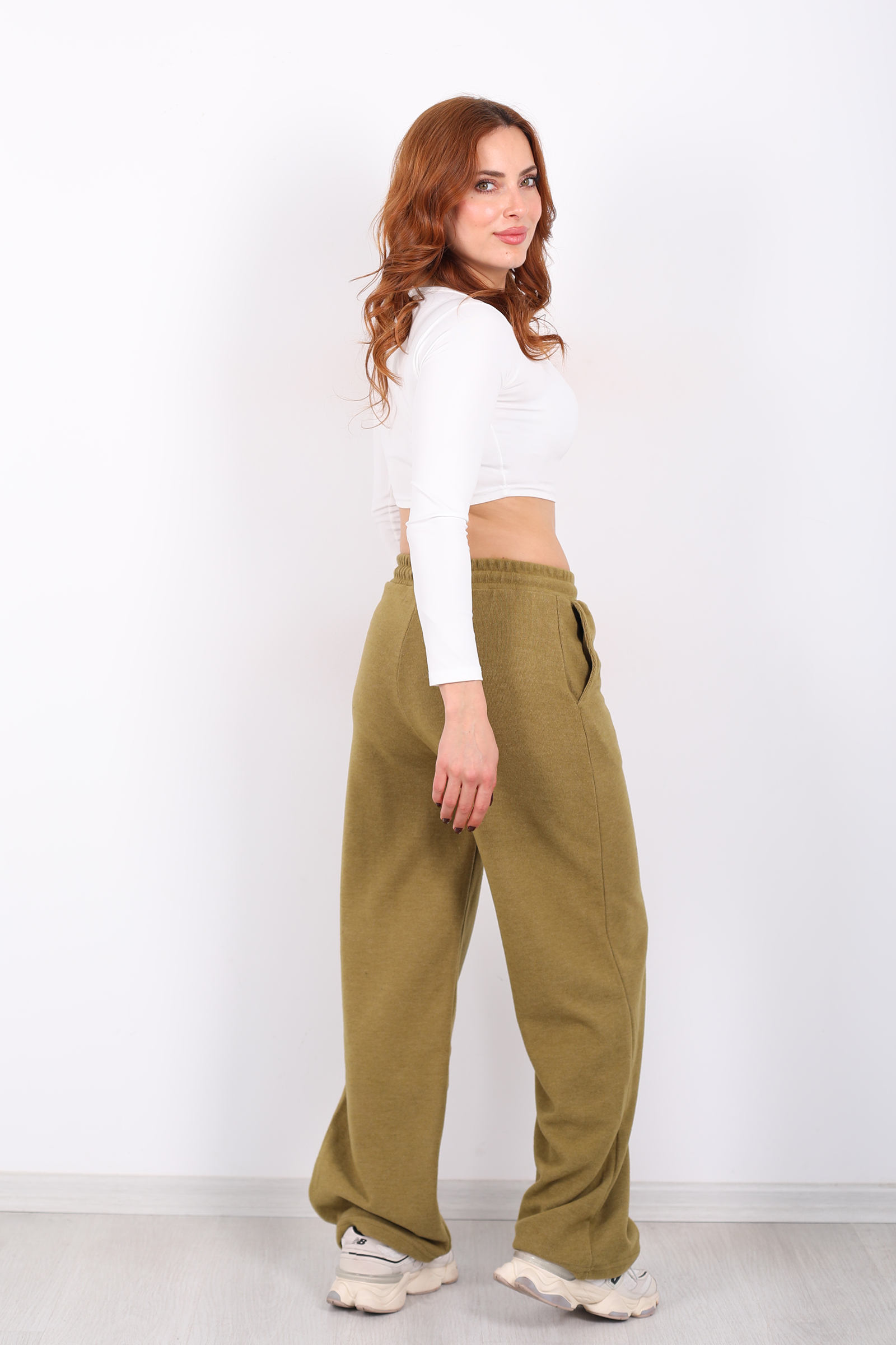 Bol Paça Beli Lastikli Yeşil Kadın Pantolon