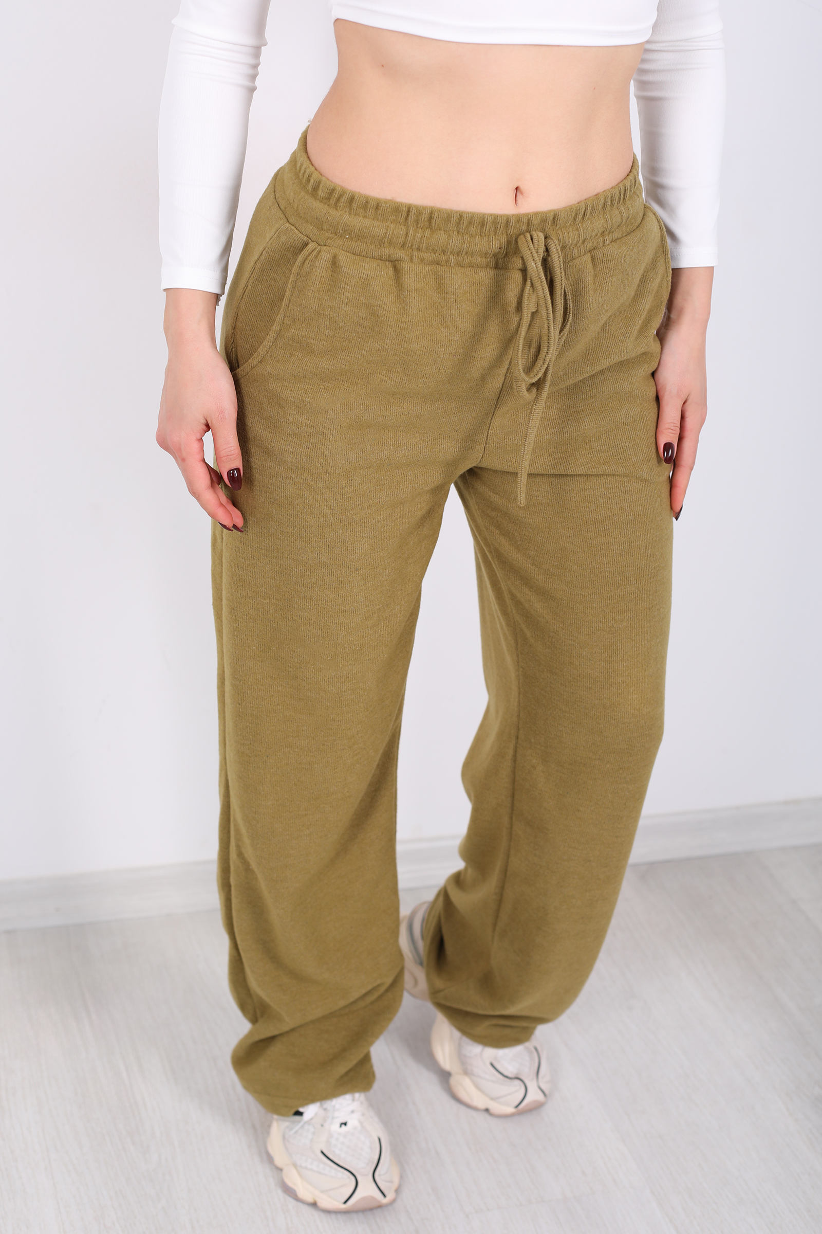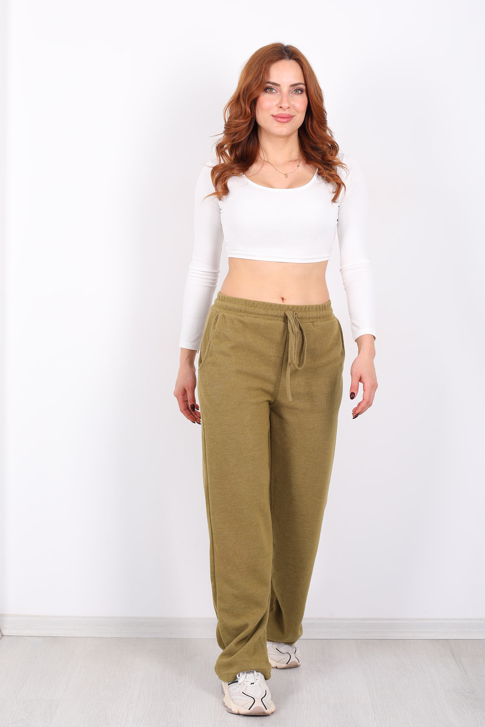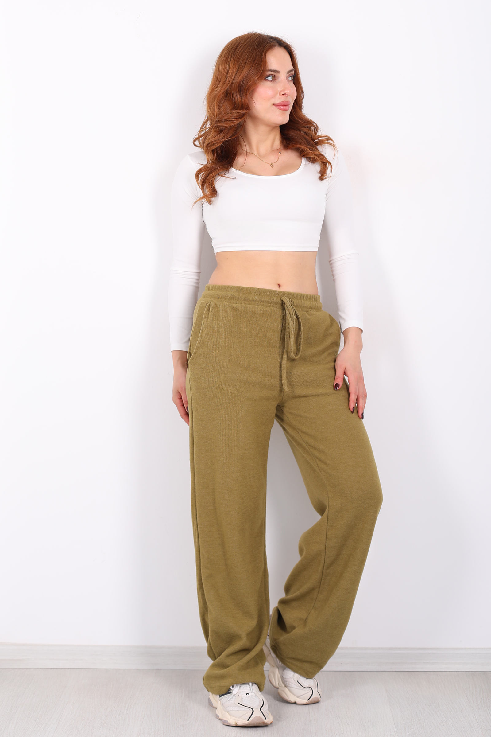 Bol Paça Beli Lastikli Yeşil Kadın Pantolon