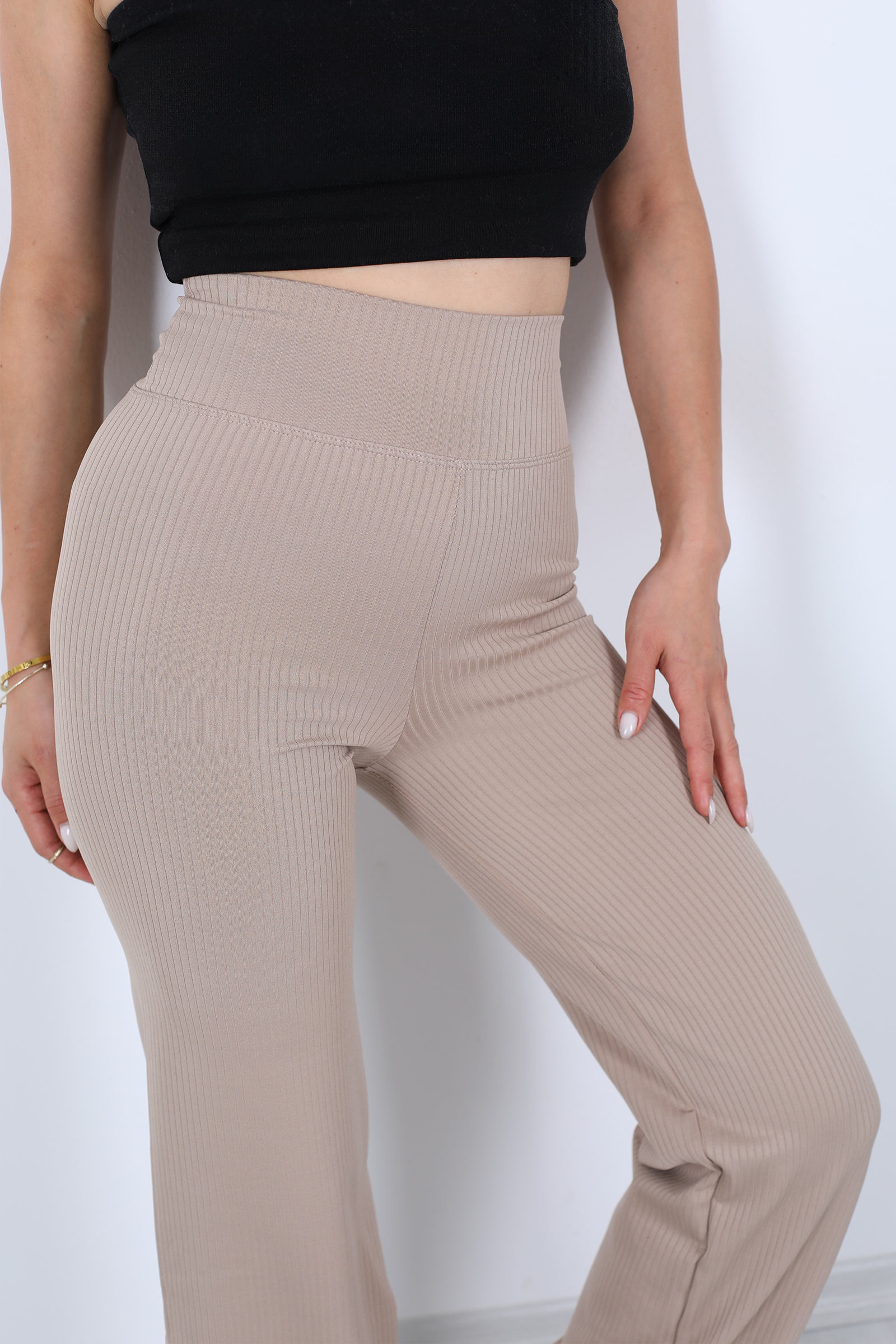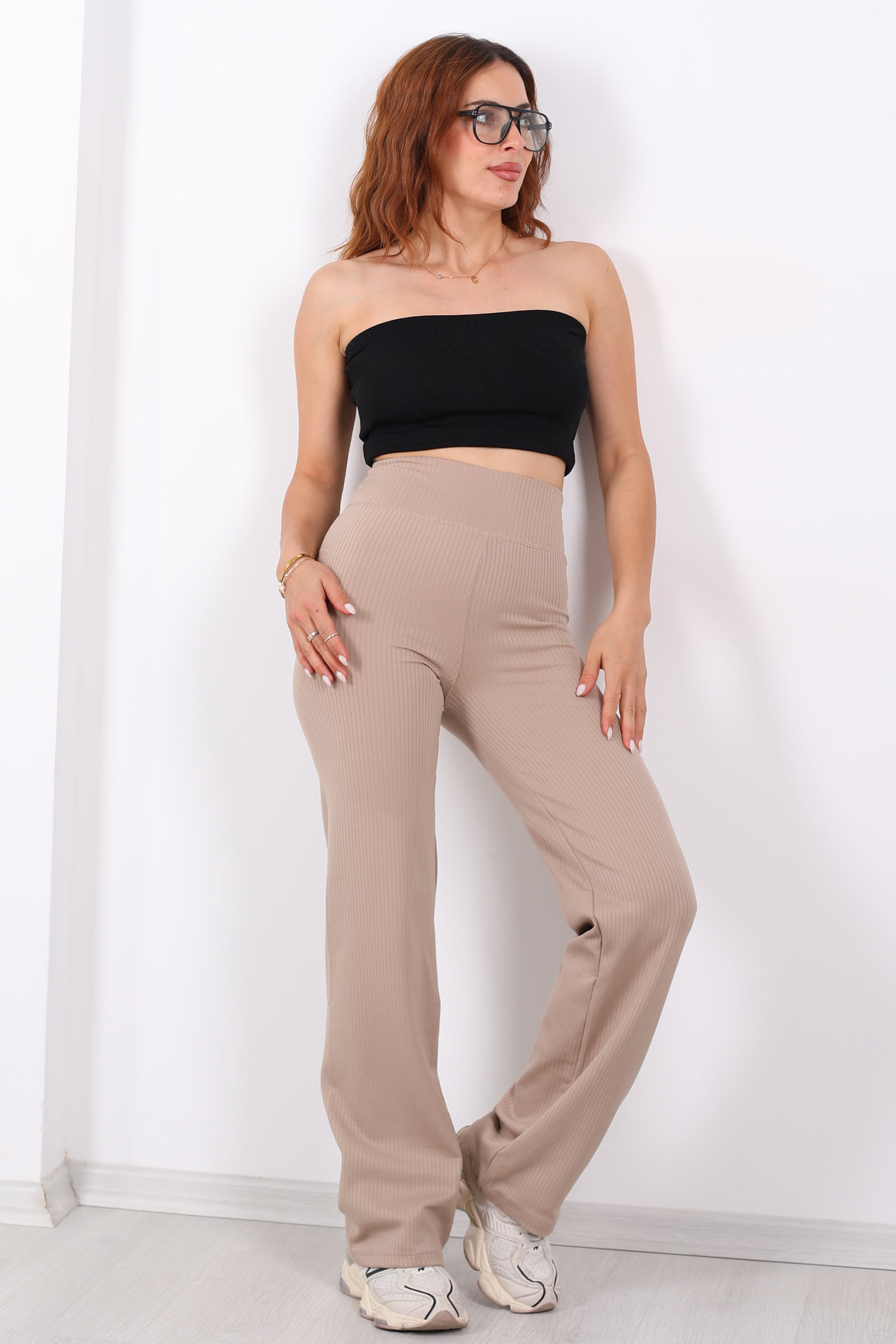 Bej rengin sıcak ve doğal tonunu taşıyan bol paça fitilli kadın pantolon, ekstra yüksek kemer detayıyla hem şıklığı hem de rahatlığı bir arada sunuyor. Fitilli kumaşı, pantolona zarif bir doku kazandırırken bol paça kesimi özgür hareket imkanı sağlıyor. Yüksek kemeri sayesinde bele oturan bu model, vücut hatlarınızı zarifçe ön plana çıkararak modern bir siluet oluşturuyor. Günlük kombinlerinizi tamamlamak için ideal olan bu pantolon, kaliteli malzeme ve işçiliğiyle uzun ömürlü kullanım sağlıyor. Hem klasik hem de casual stillerde kolaylıkla tercih edebileceğiniz bu bej pantolon, gardırobunuzun çok yönlü ve şık parçalarından biri olmaya aday.