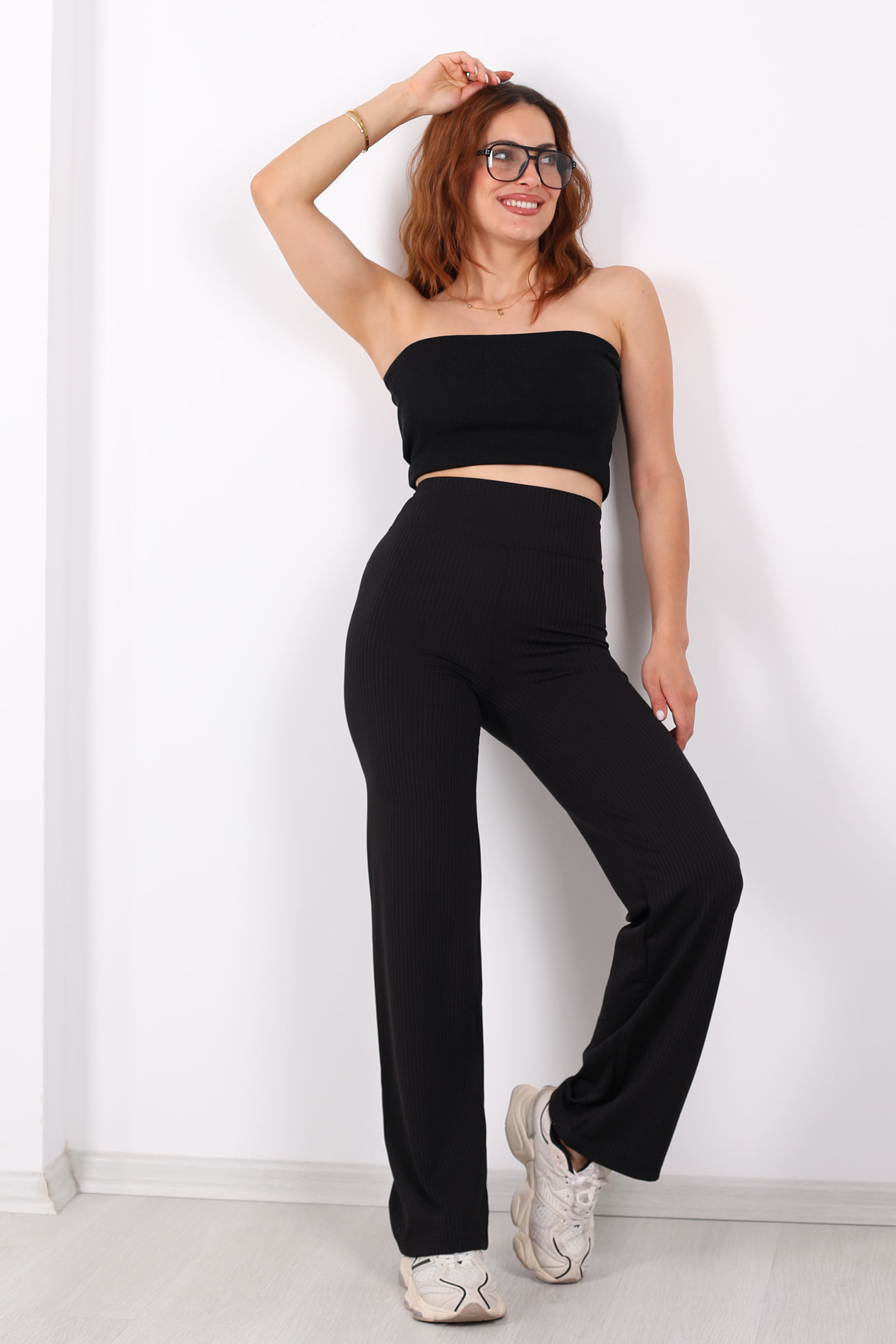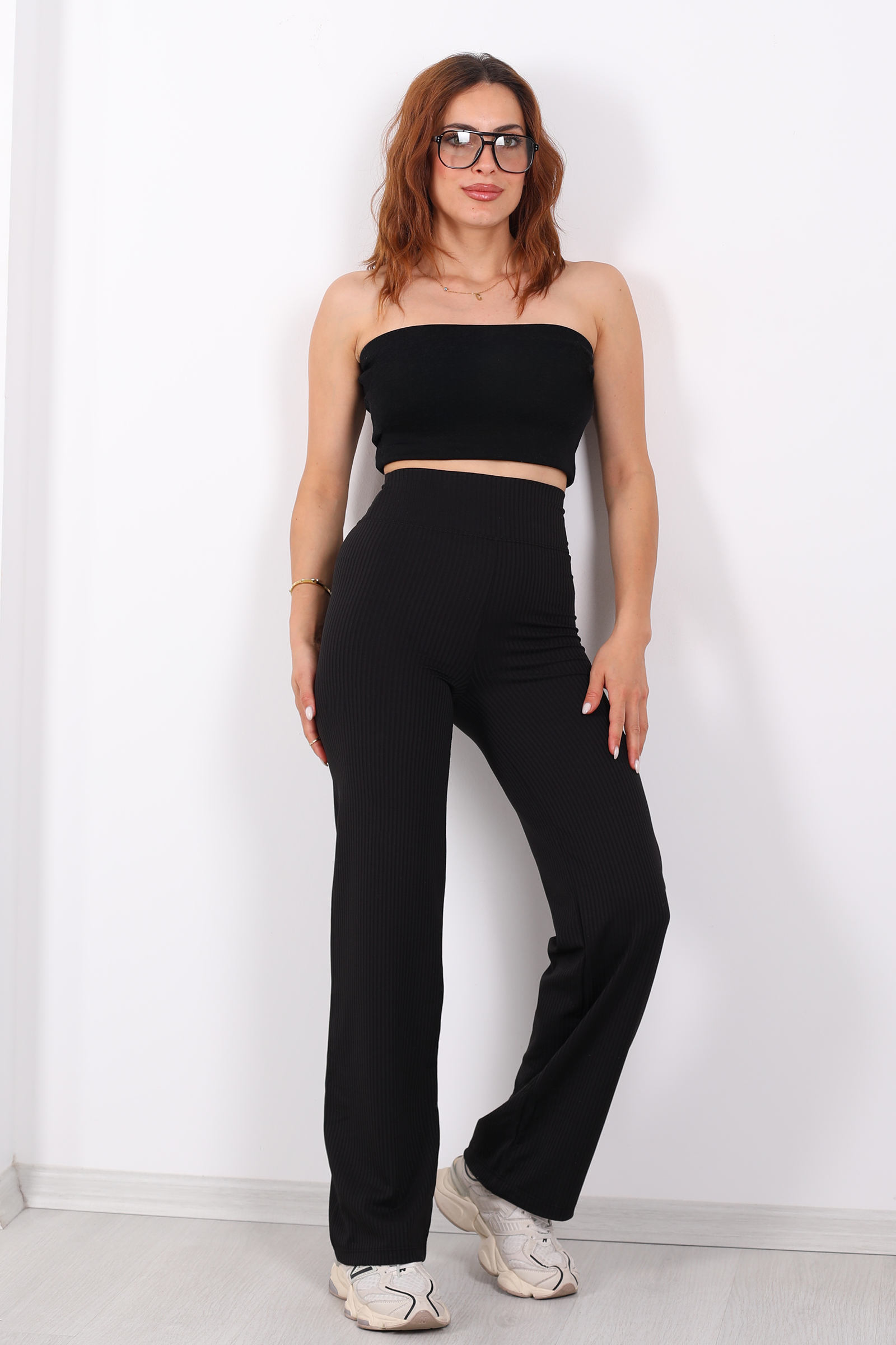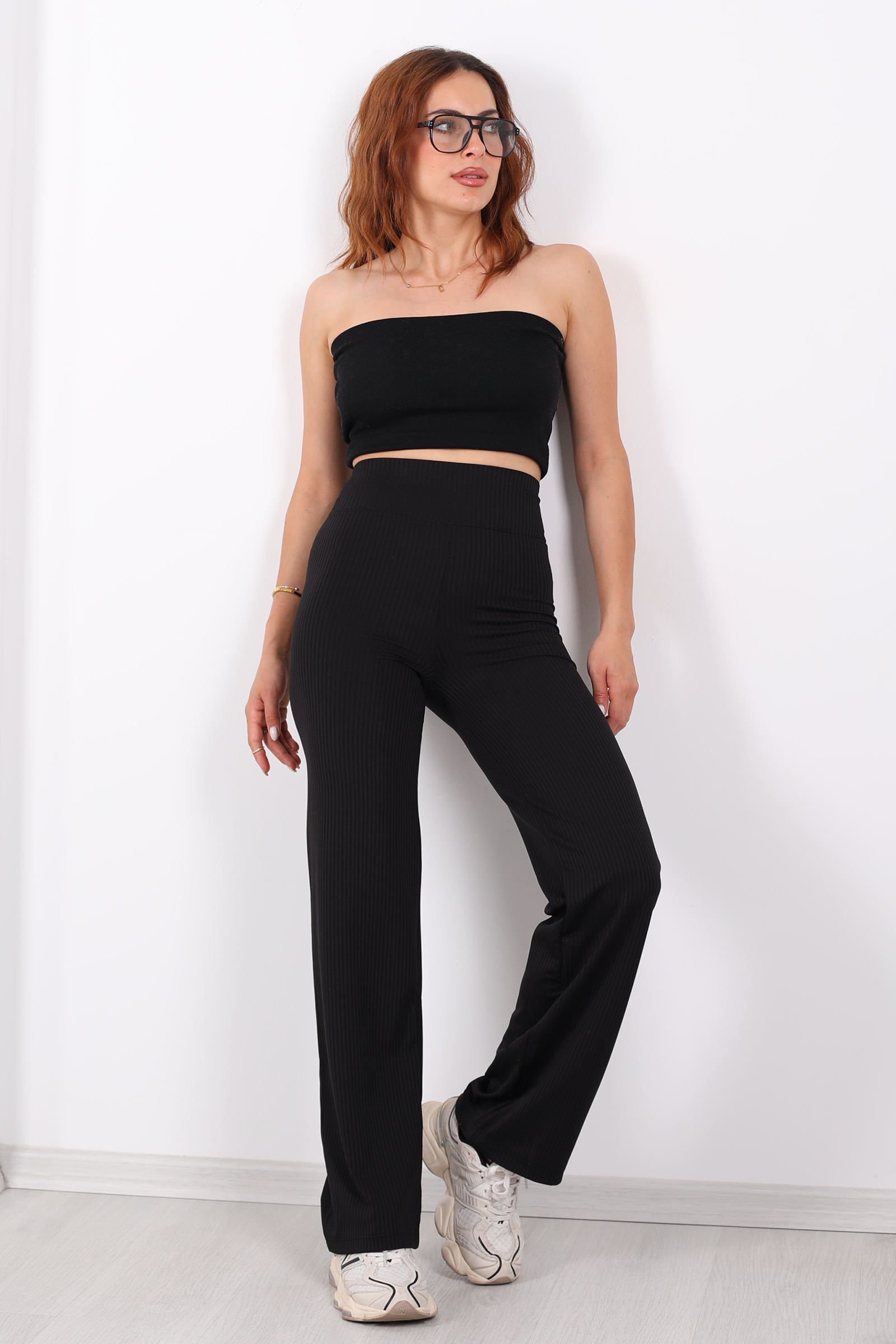 Bu pantolon, bol paça kesimi ve fitilli dokusuyla zarif bir duruş yakalarken, ekstra yüksek kemeriyle de bele çekici bir vurgu yapıyor. Fitilli kumaş, pantolona hem görsel derinlik hem de yumuşak bir doku kazandırarak, stilinize sofistike bir dokunuş katıyor.