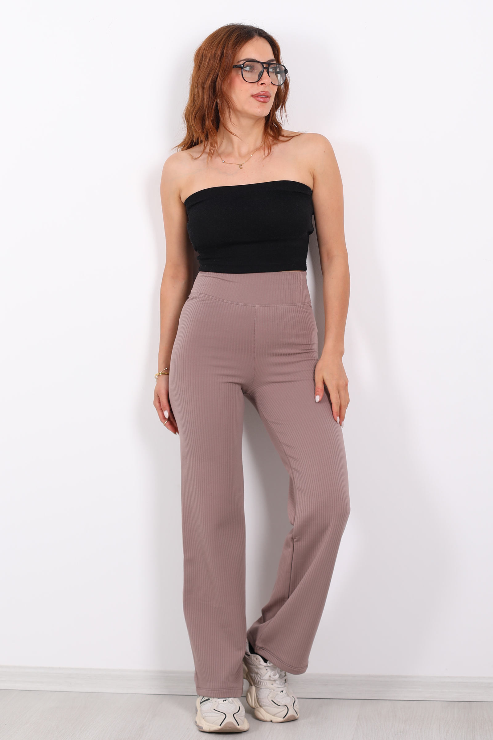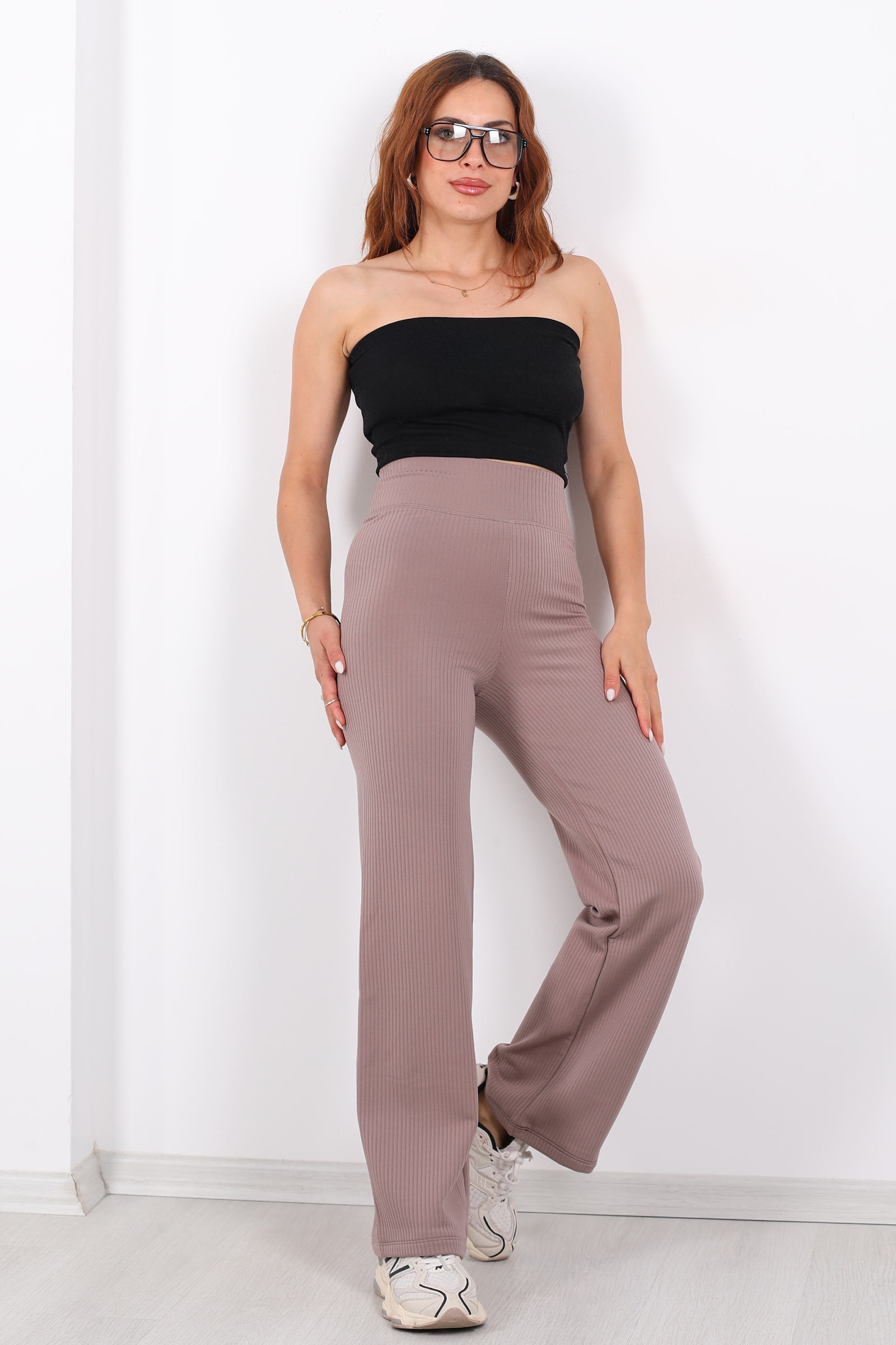Sıcak vizon tonlarıyla tasarlanmış bu bol paça pantolon, iç kısmındaki şardonlu dokusu sayesinde ekstra yumuşaklık ve konfor sunar. Fitilli kumaşı, modern bir görünüm sağlar ve vücuda oturan kesimiyle zarif bir siluet oluşturur. Yüksek bel tasarımı, bele tam oturur ve rahat bir oturuş sağlar. Günlük kombinlerinizde veya özel davetlerde rahatlıkla tercih edebileceğiniz bu pantolon, stilinizi tamamlamak için ideal bir seçenek.