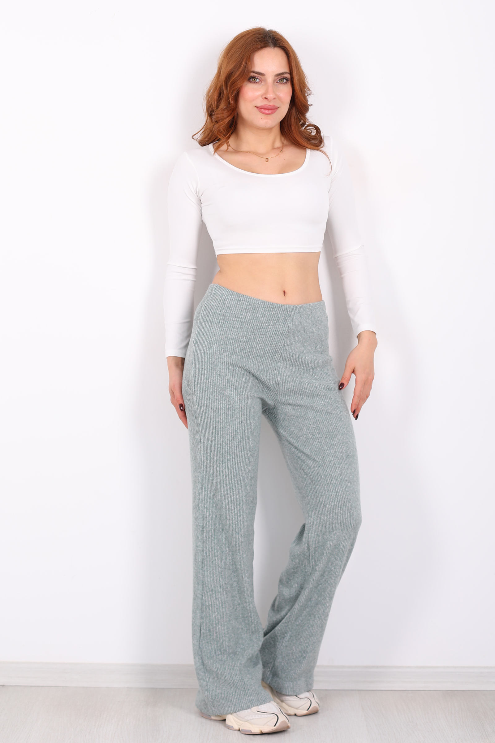 Önü Püsküllü Yırtmaçlı Gofre Mint Yeşili Kadın Pantolon
