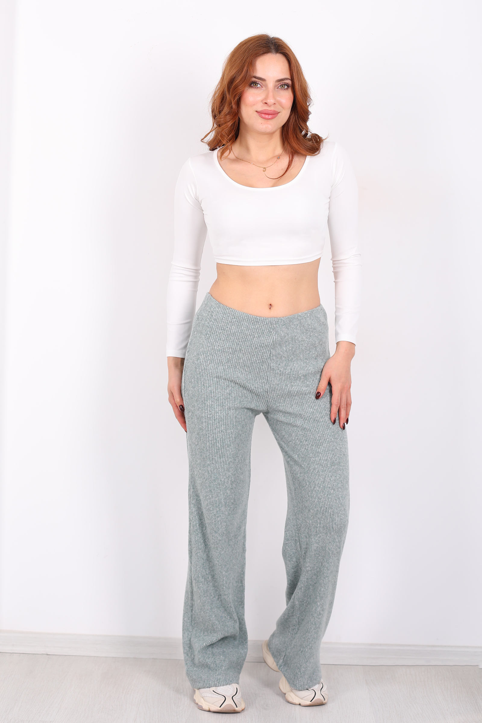 Beli Lastikli Yüksek Bel Gri Kadın Modal Pantolon