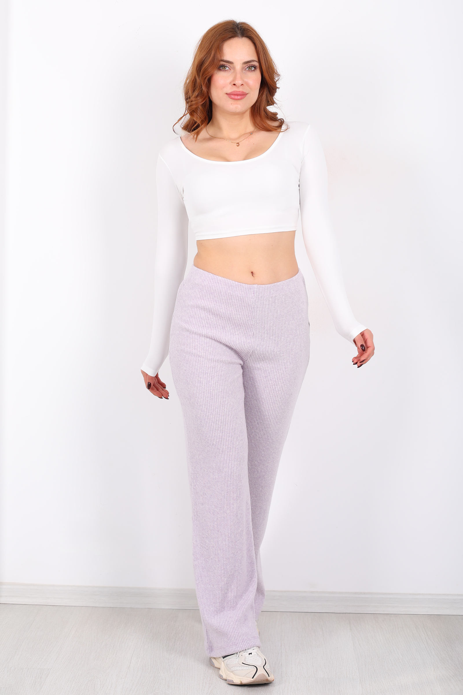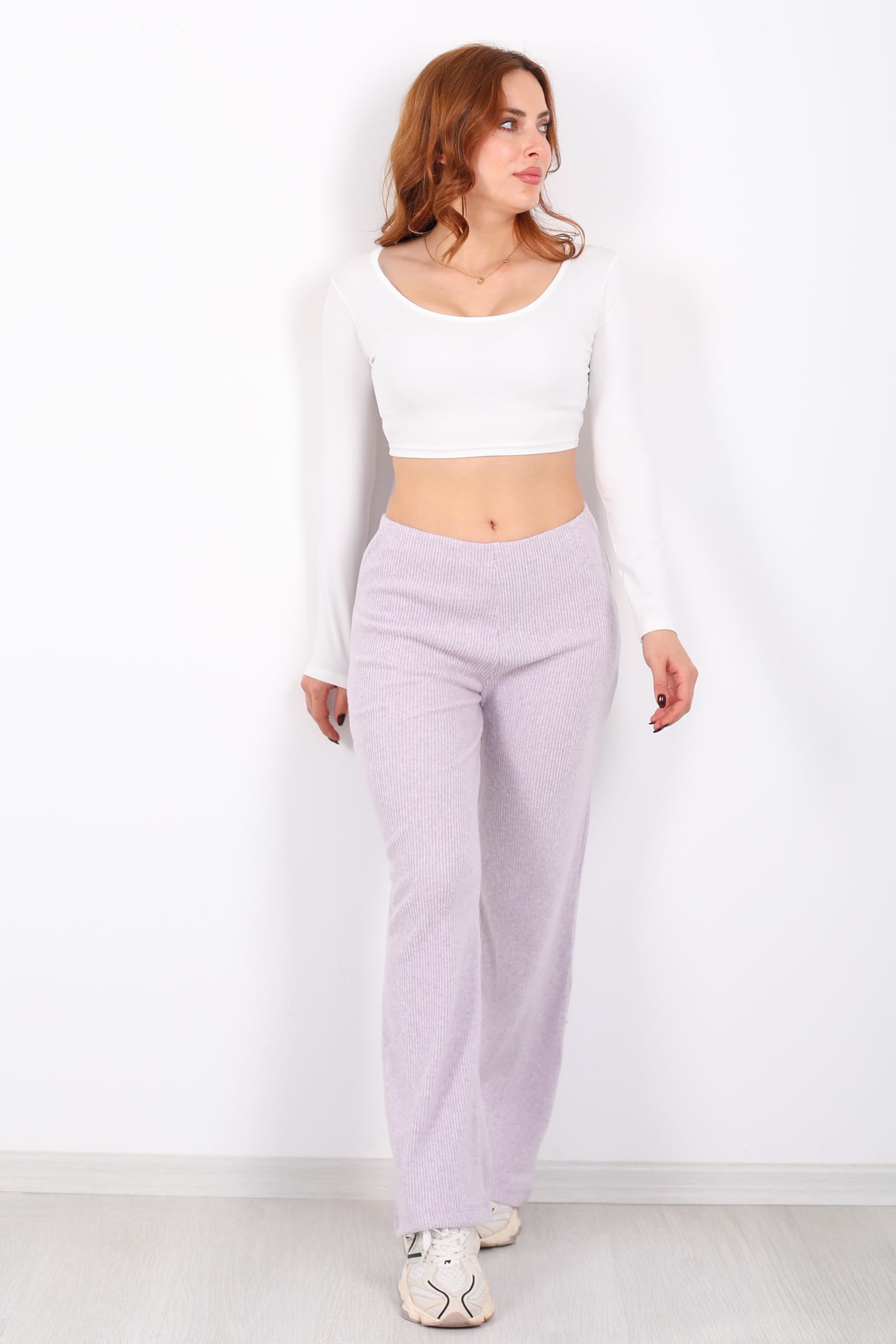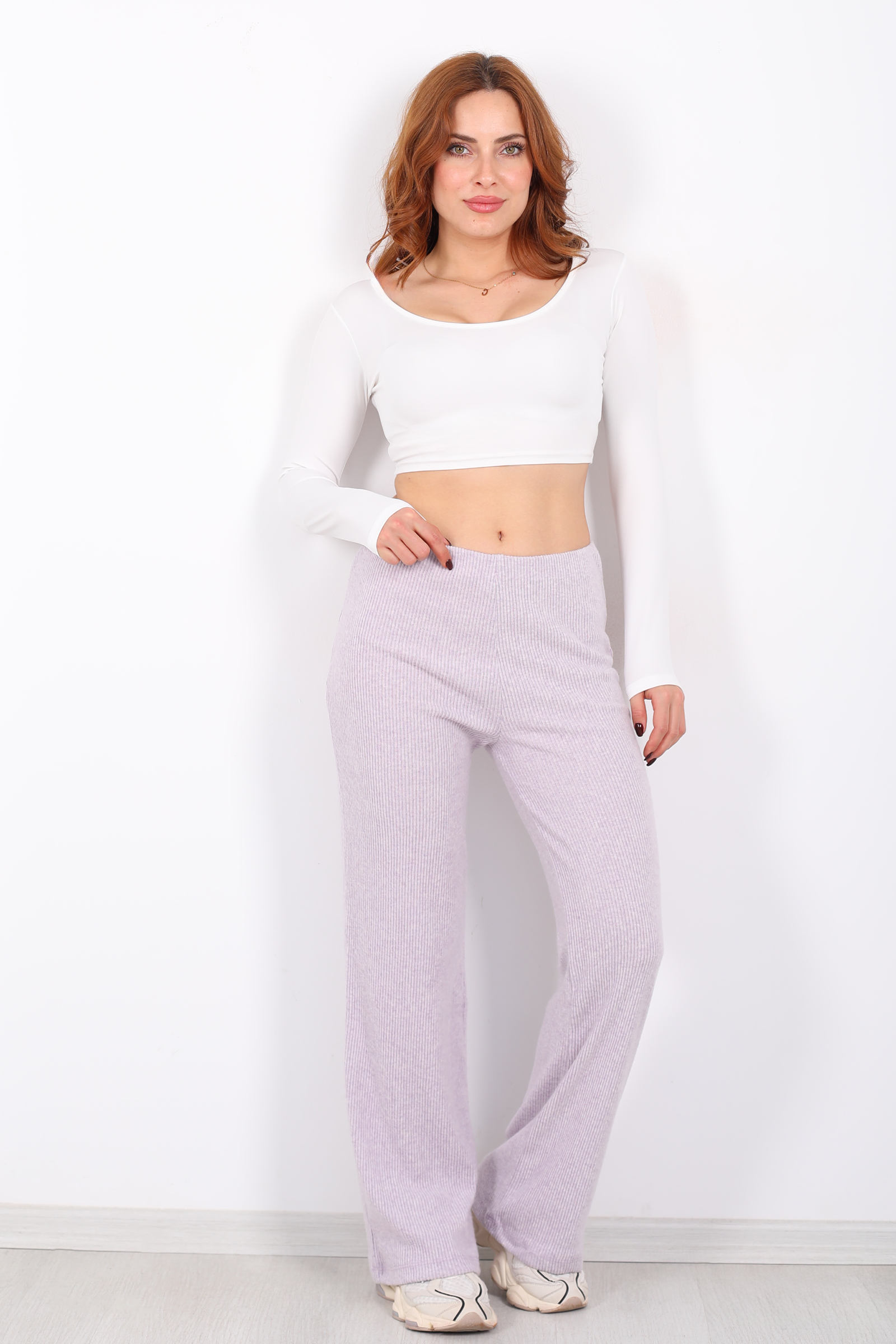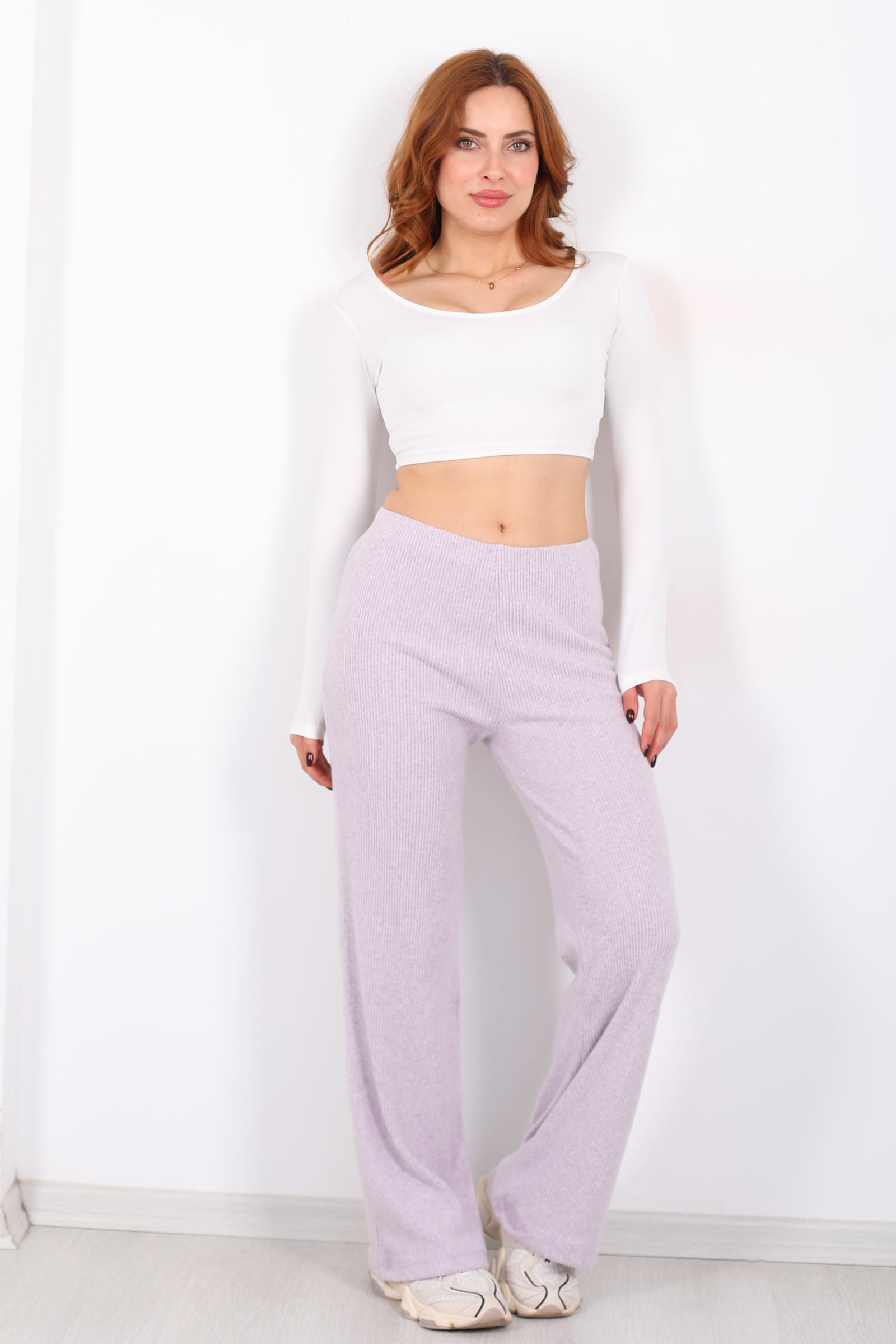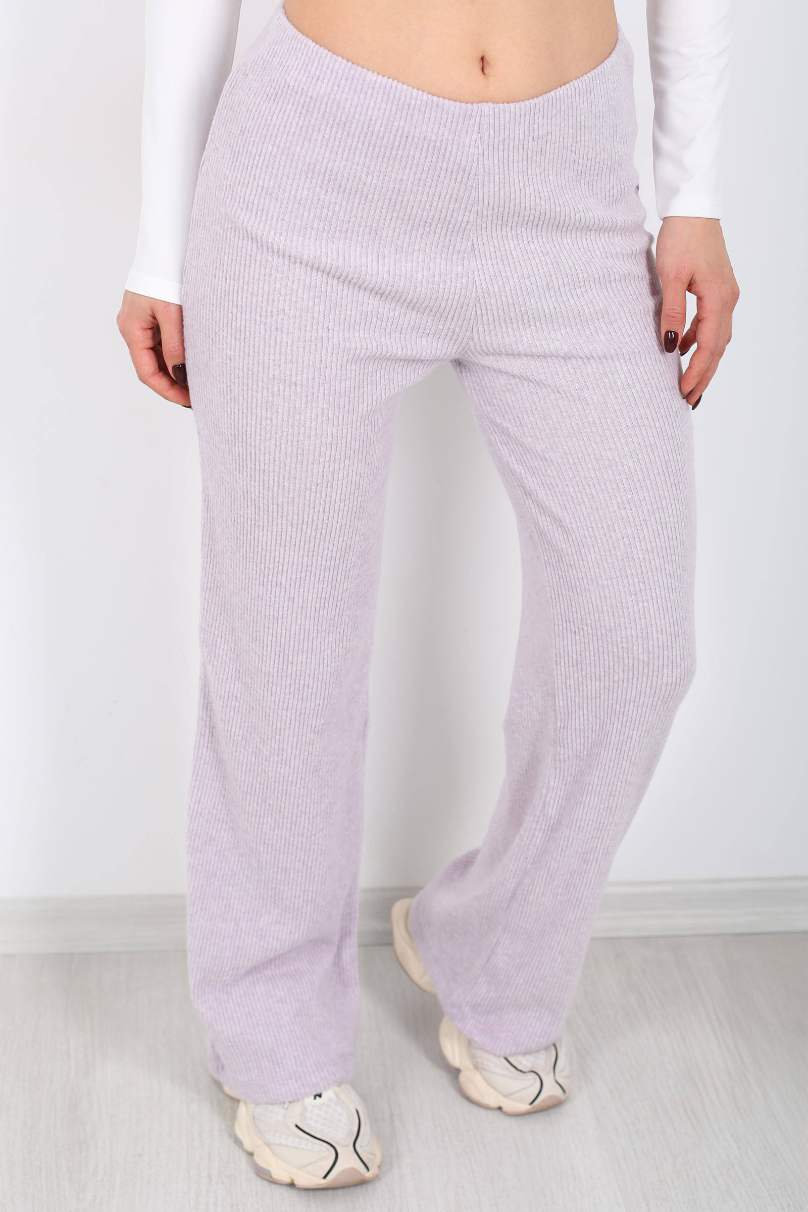 Bol Paça Kadın Lila Örme Pantolon