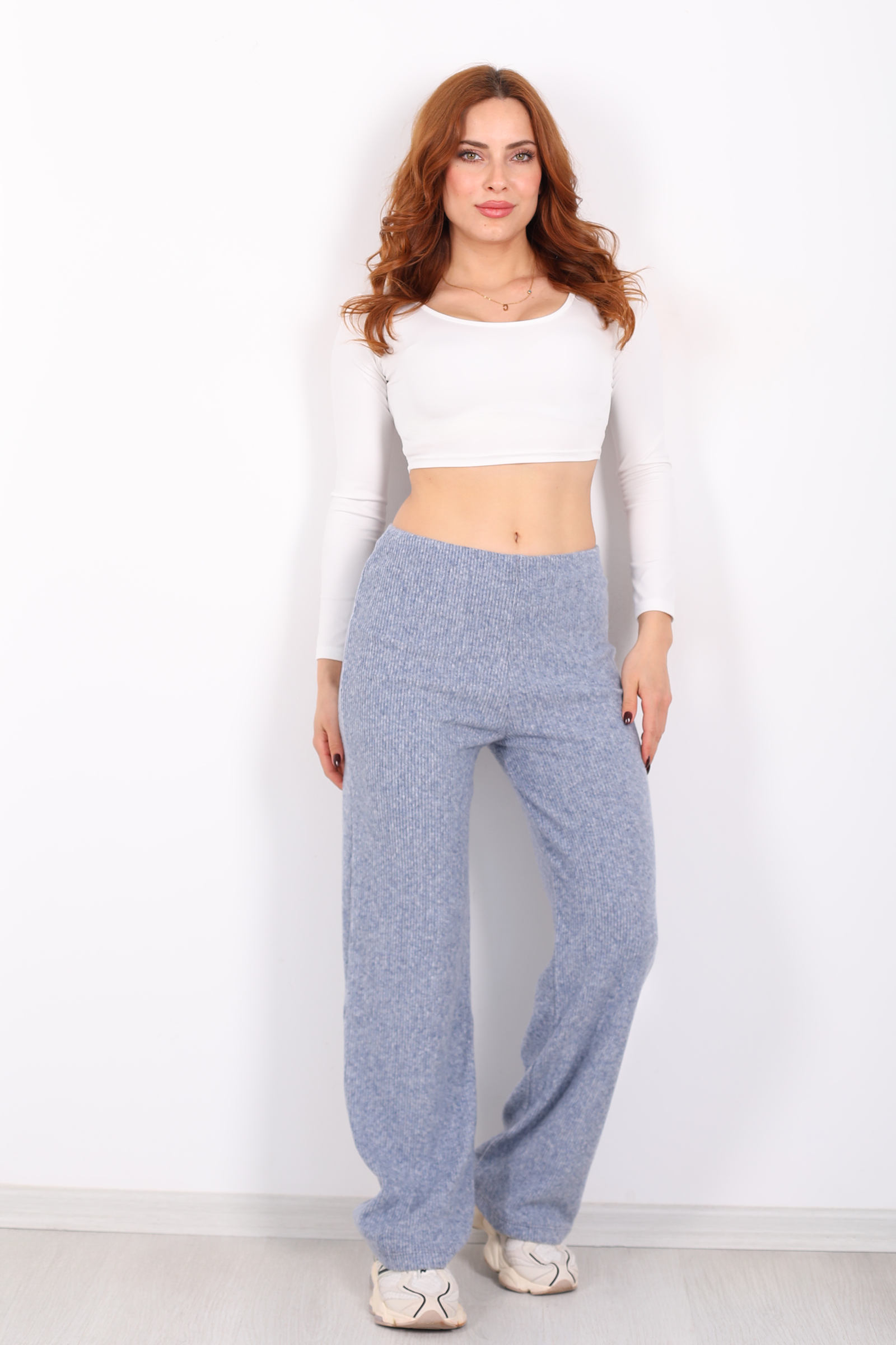 Beli Lastikli Yüksek Bel Lacivert Kadın Modal Pantolon