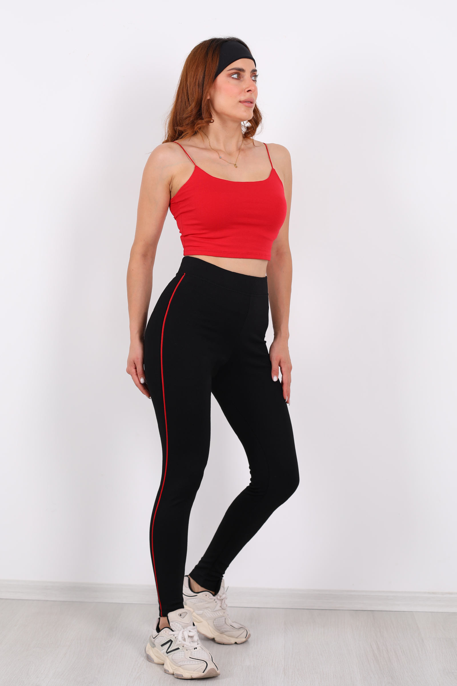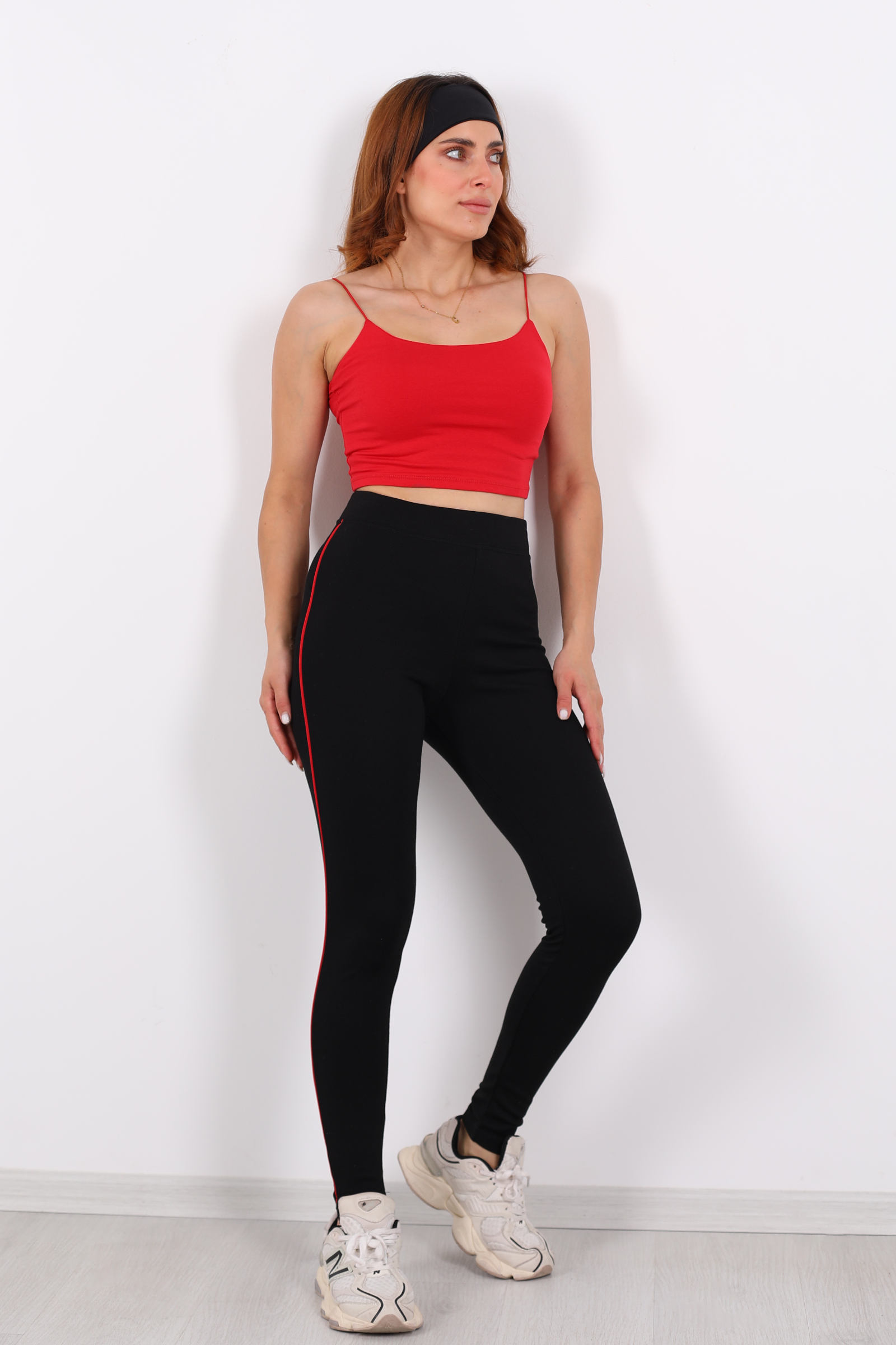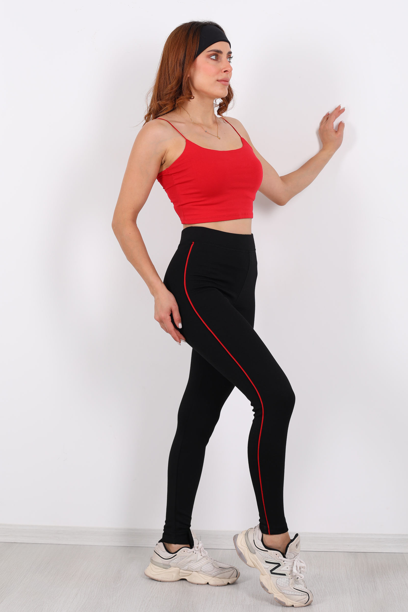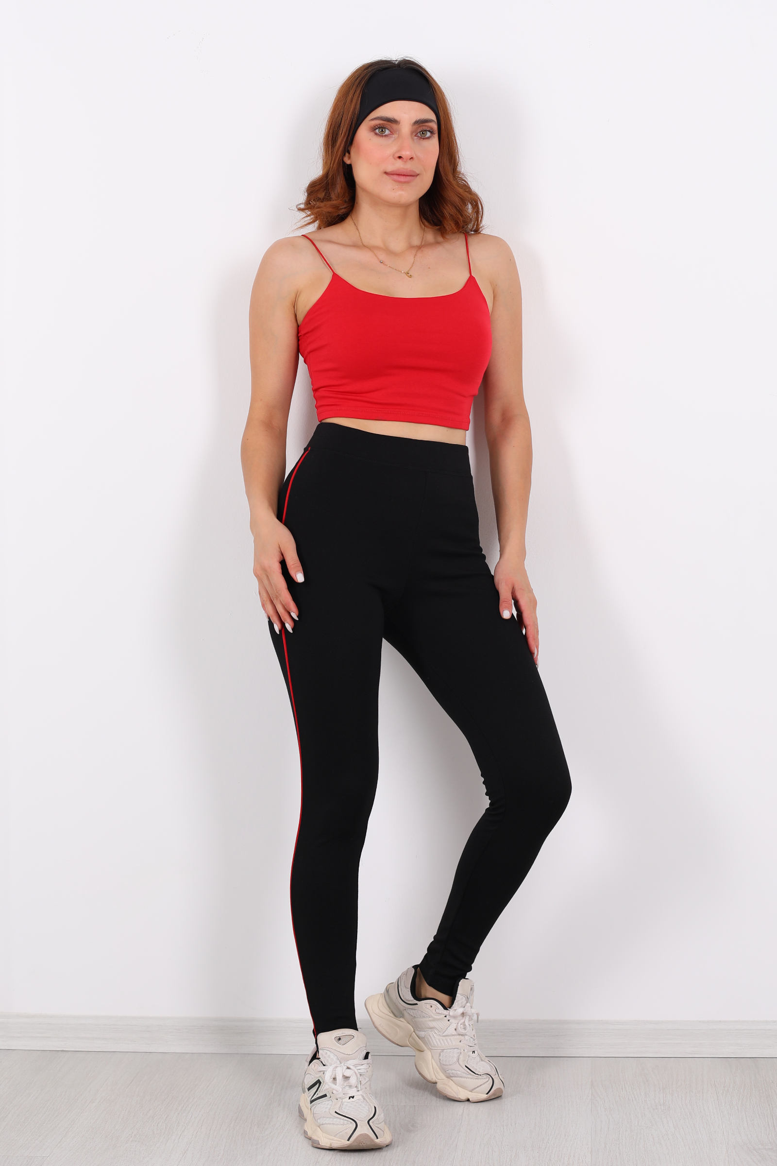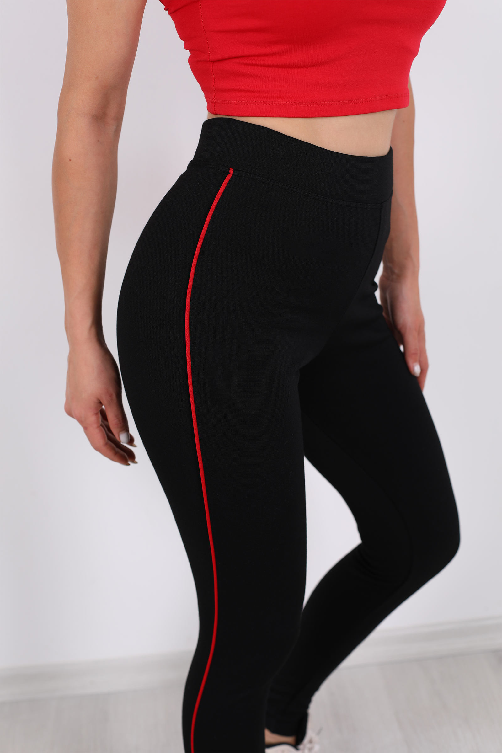 Boydan Kırmızı Şeritli Siyah Çelik Tayt, sportif şıklığı ve rahatlığı bir araya getiriyor. Siyah renginin klasik zarafeti ile kırmızı şeritlerin enerjik dokunuşu, her adımda stilinize hareket katıyor. Çelik tayt yapısı, vücudu kusursuz bir şekilde sararken, rahat ve özgür bir kullanım sağlar.Günlük şıklığınızı tamamlayabileceğiniz bu tayt, spor yaparken ya da rahat bir gün geçirmek istediğinizde ideal.
