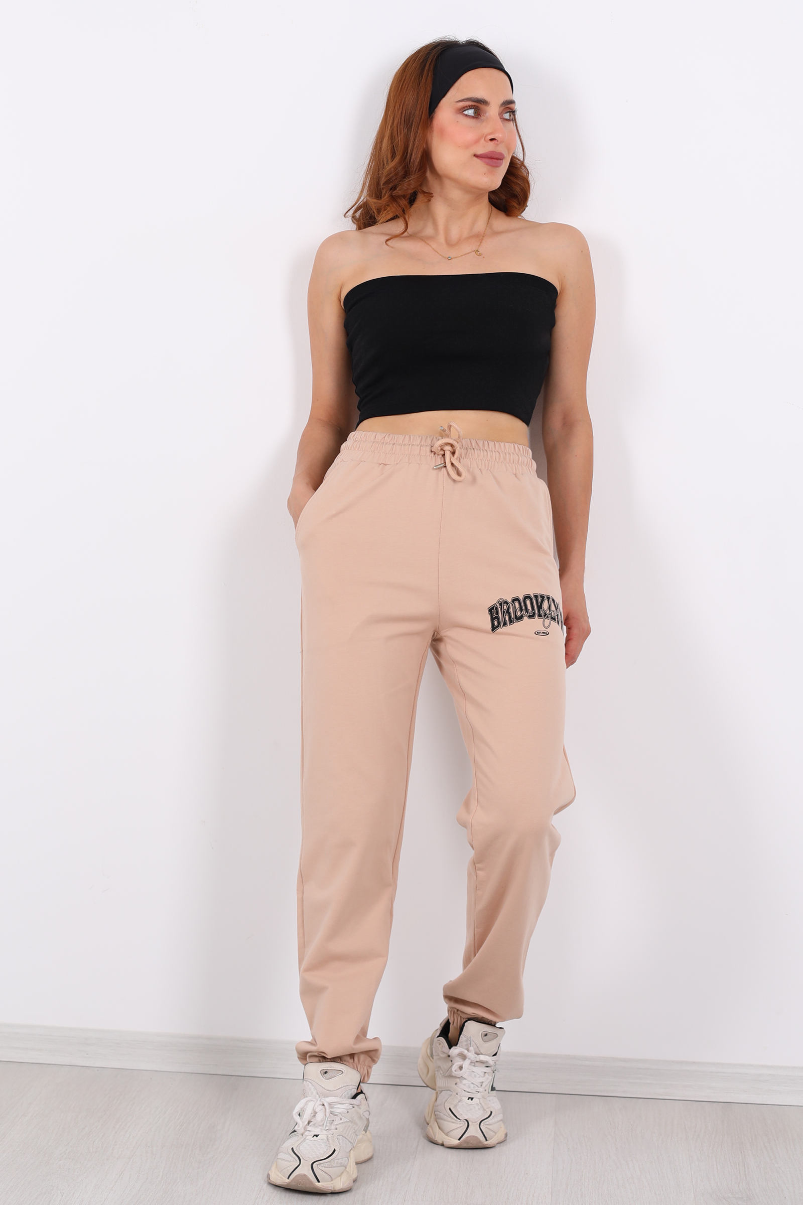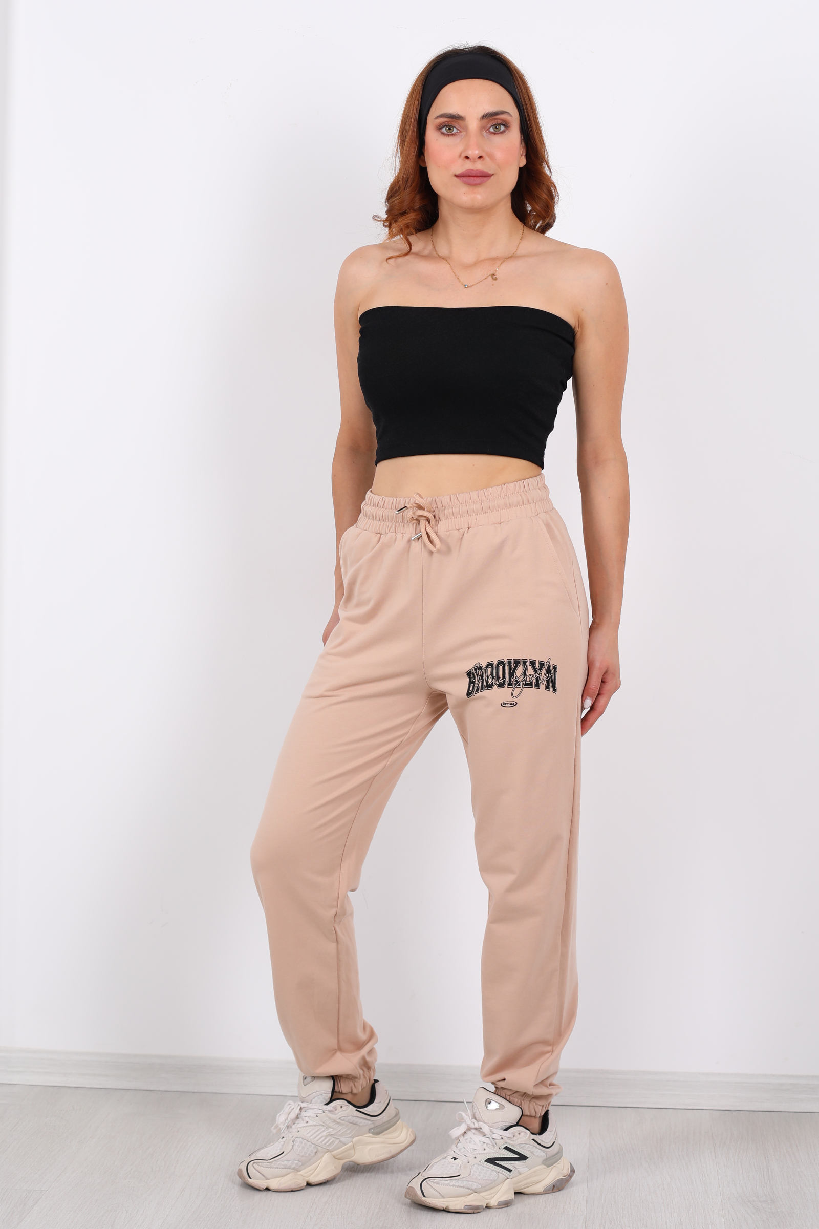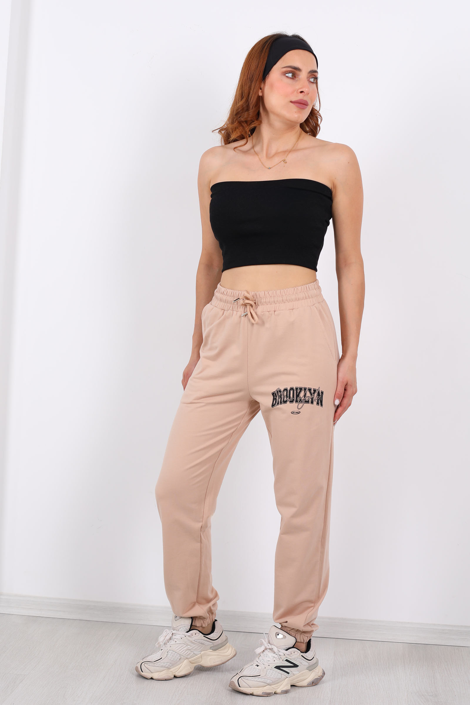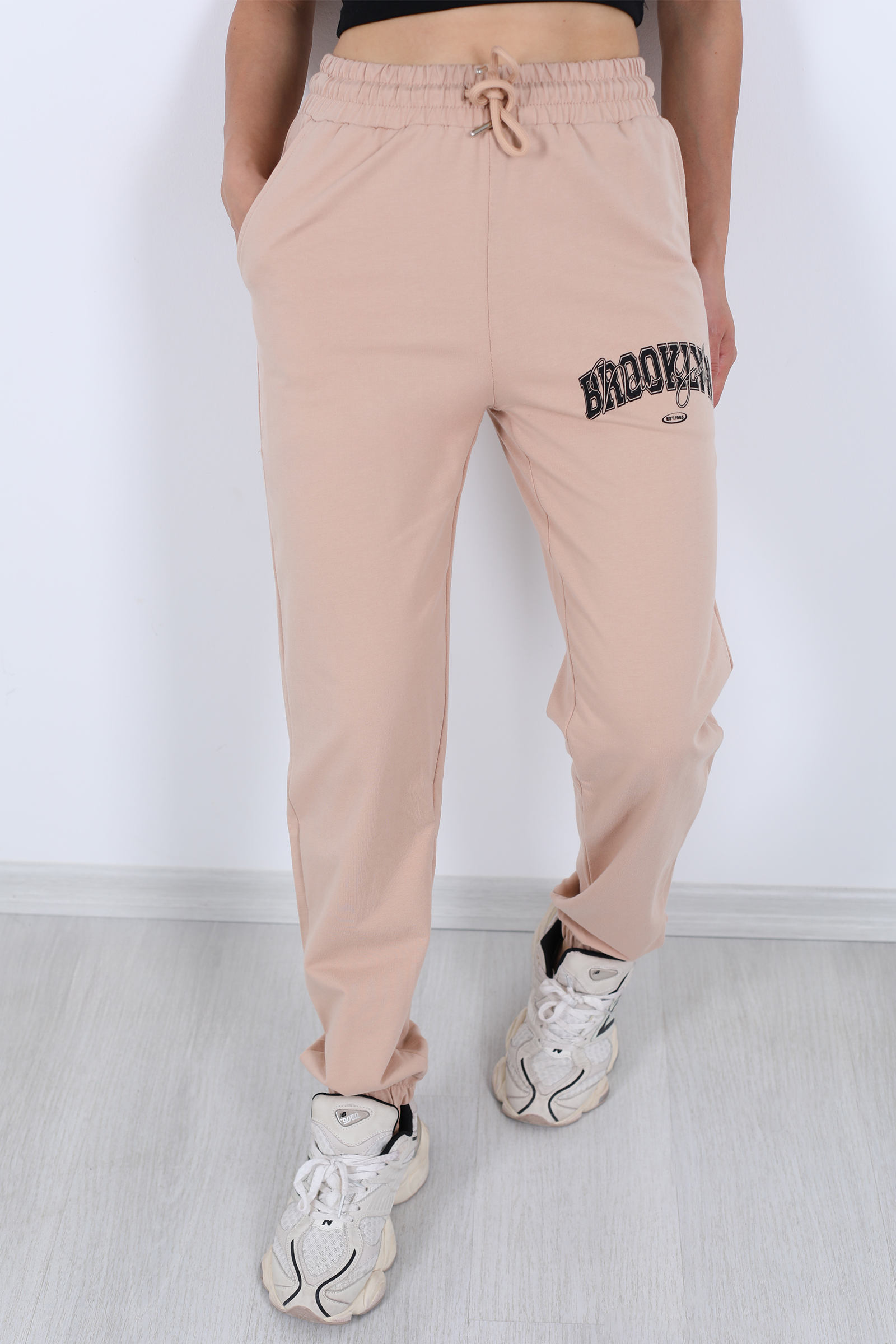 Brooklyn Baskılı Paça Lastikli Bej Kadın Eşofman Altı ;Sade Şıklık, Maksimum Konfor.Eşofman altını sadece rahat bir parça olarak düşünme ! Brooklyn baskısı ve bej tonunun zarafetiyle stiline sade ama etkili bir vurguyla gün boyu şıklık kat! %100 pamuklu kumaşı doğal bir yumuşaklık sunarken, paça lastiği her adımda atletik ve düzenli bir siluet sağlar.