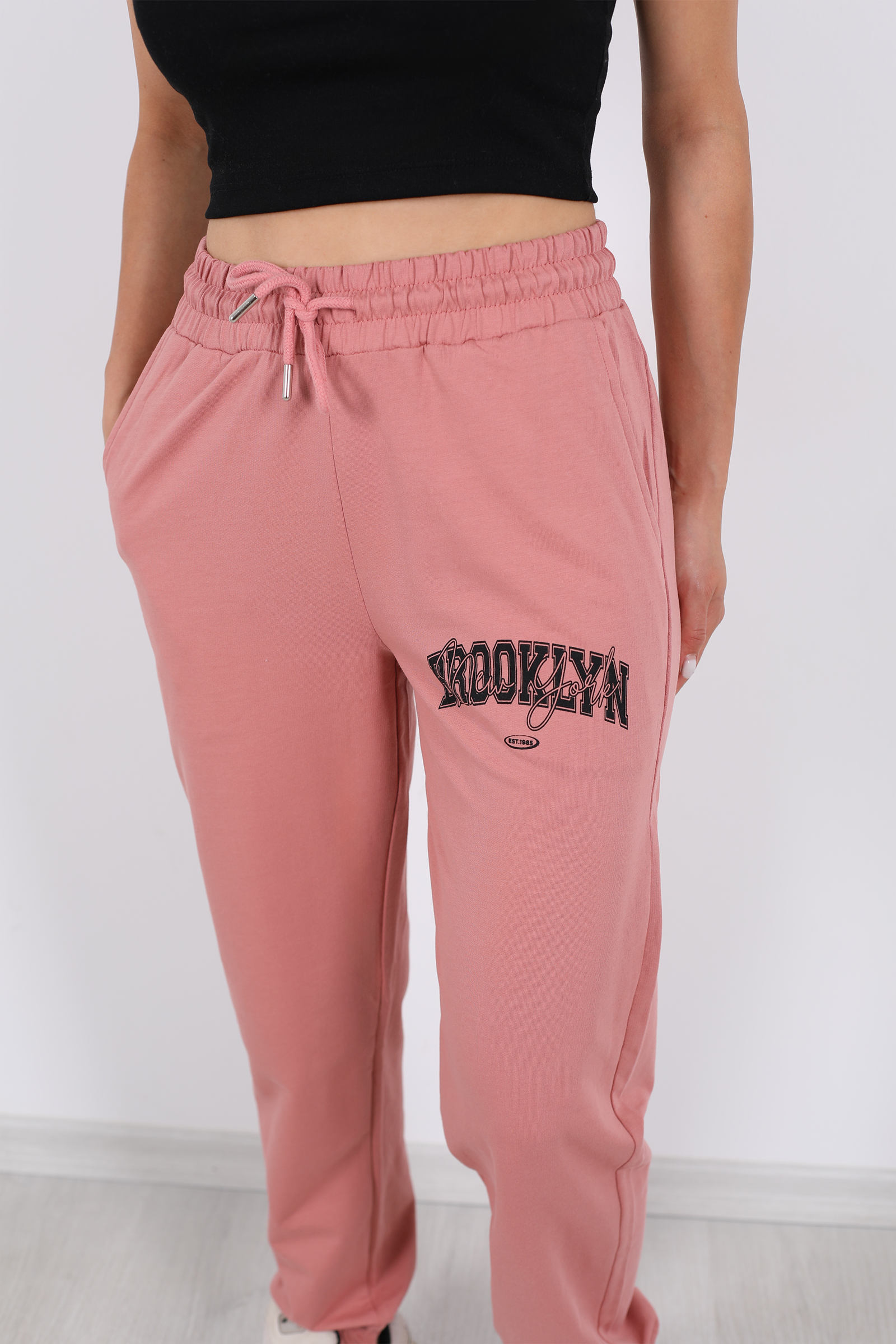 Brooklyn Baskılı Paça Lastikli Gül Kurusu Kadın Eşofman Altı, günlük stilinize şıklık ve rahatlık katacak modern bir parça. Gül kurusu rengiyle zarif bir görünüm sunarken, Brooklyn baskısı dinamik bir hava katar. Paça lastikleri, modern bir siluet oluştururken, bel kısmındaki lastik detayı konforlu bir oturuş sağlar. Kumaş içeriği %100 pamuk olup, yumuşak dokusu sayesinde gün boyu rahatlık sunar.