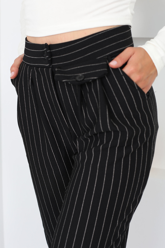 Gardırobunuzun vazgeçilmezi olmaya aday bu siyah jogger pantolon, çizgili detayları ve fonksiyonel cep kapaklarıyla stilinize modern bir dokunuş katıyor. Esnek yapısıyla hareket özgürlüğü sağlar, hafif kumaşı gün boyu konfor sunar. İster evde, ister dışarıda; bu pantolonla her an şıklığınızdan ödün vermeyin.Pamuk, likra, polyester ve elastan karışımıyla yumuşak, esnek ve nefes alabilir.
