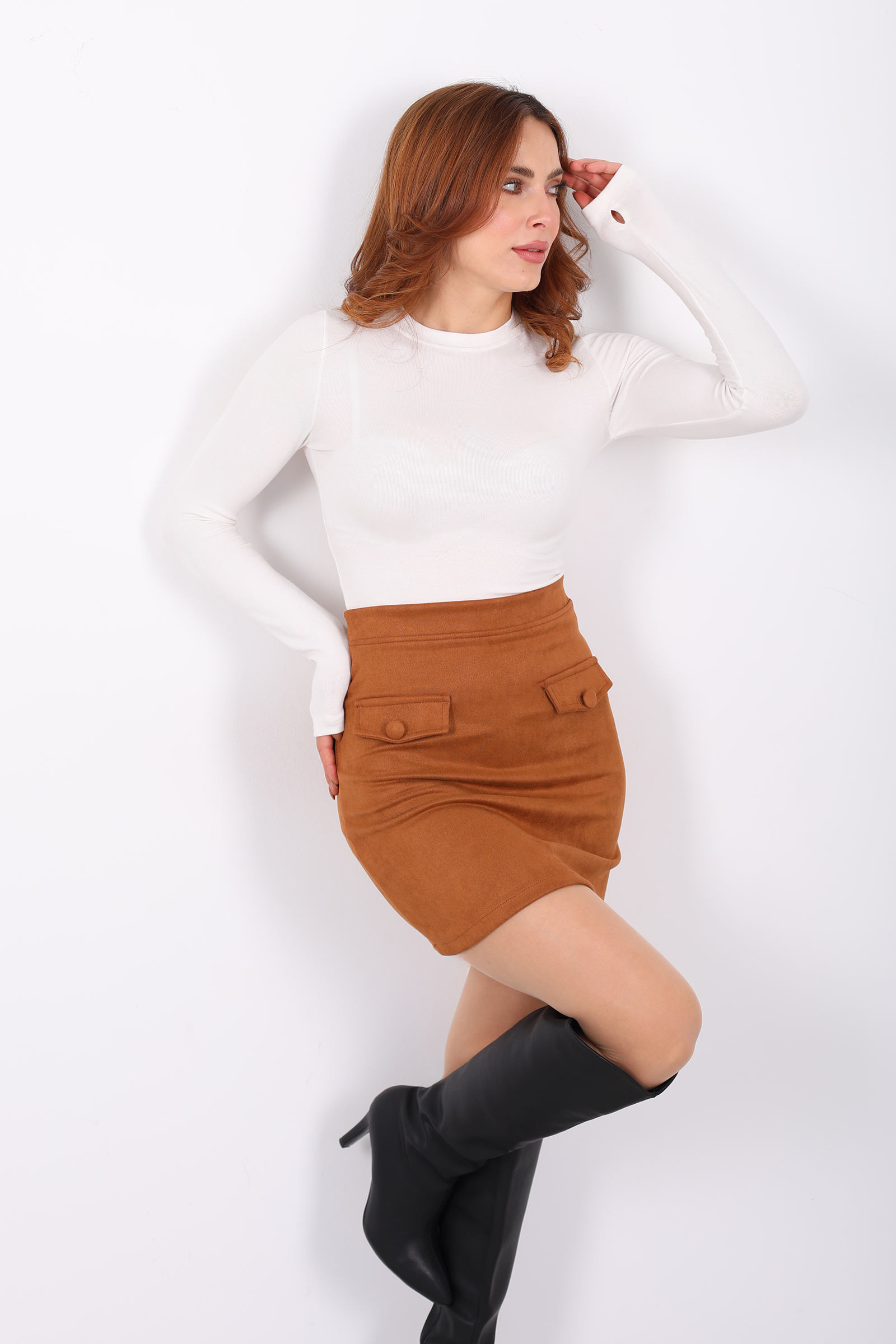 Kemeri Toka Detaylı Pileli Katlı Bordo Kadın Mini Etek