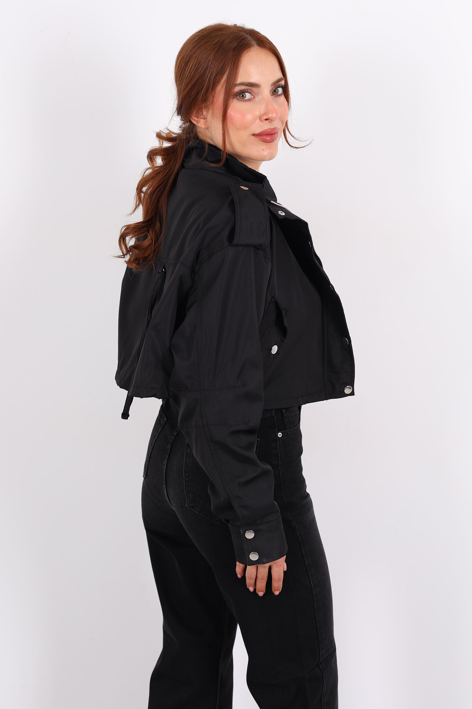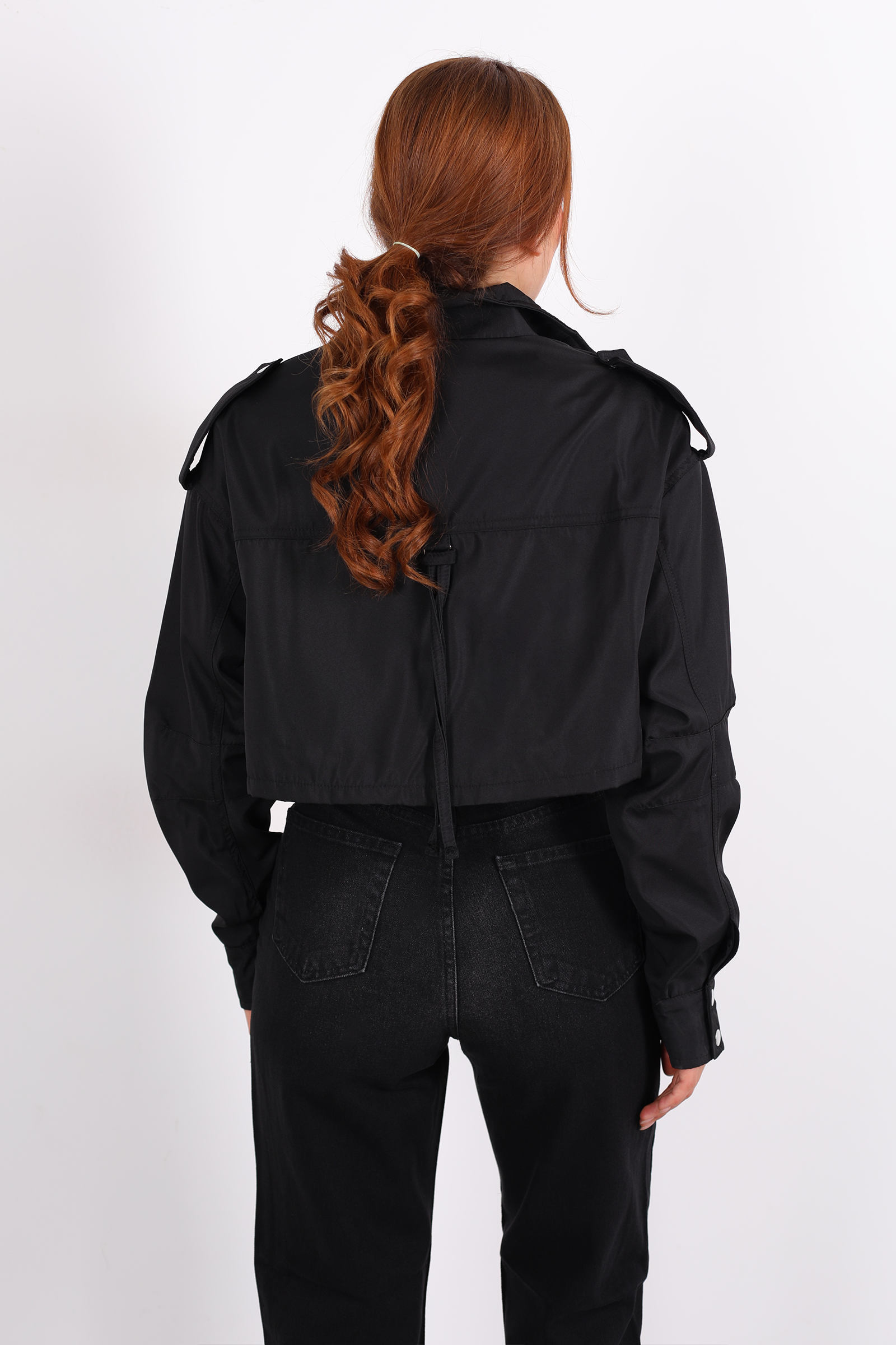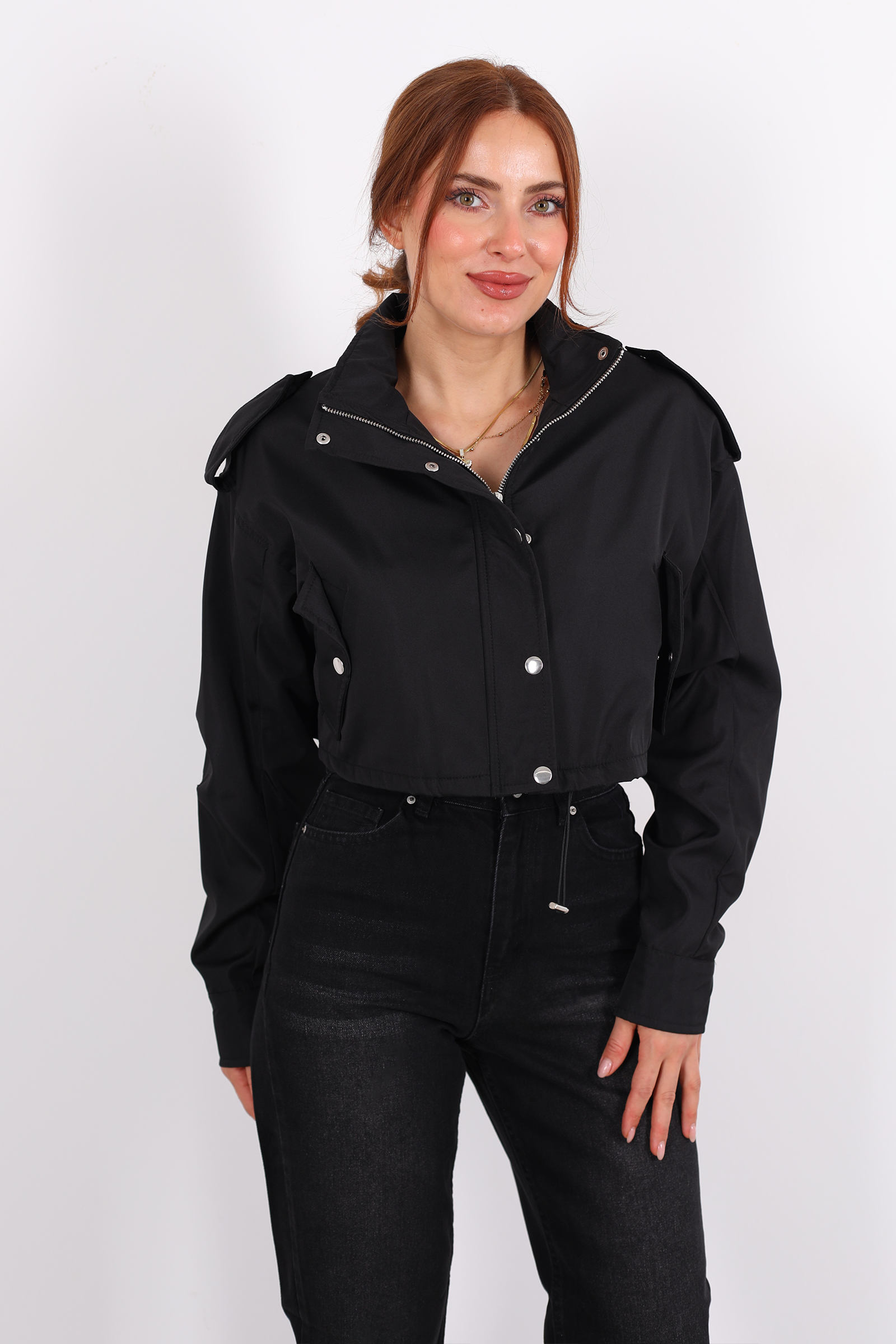 Zarif siyah trençkot, çok yönlü yapısı ve estetik detaylarıyla hem günlük giyimde hem de katmanlı ofis stilinde öne çıkıyor. Mat siyah rengi, modern bir duruş kazandırırken çift cep detayı cekete fonksiyonellik ve doku derinliği katıyor. Cepler sadece pratik değildir dikişlerinden itibaren ceketin genel siluetini dengeler, böylece şık ve dengeli bir görünüm ortaya çıkar.