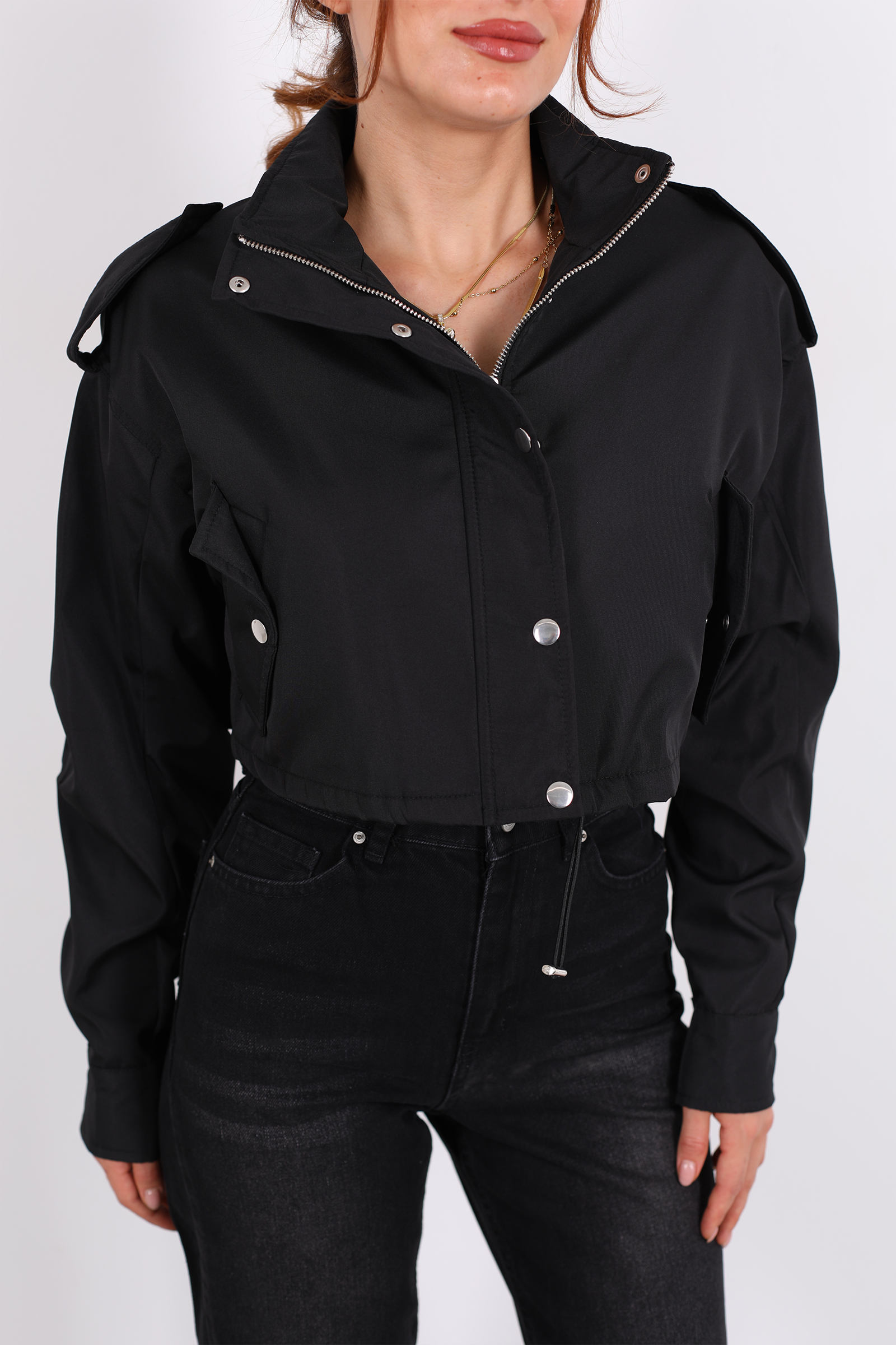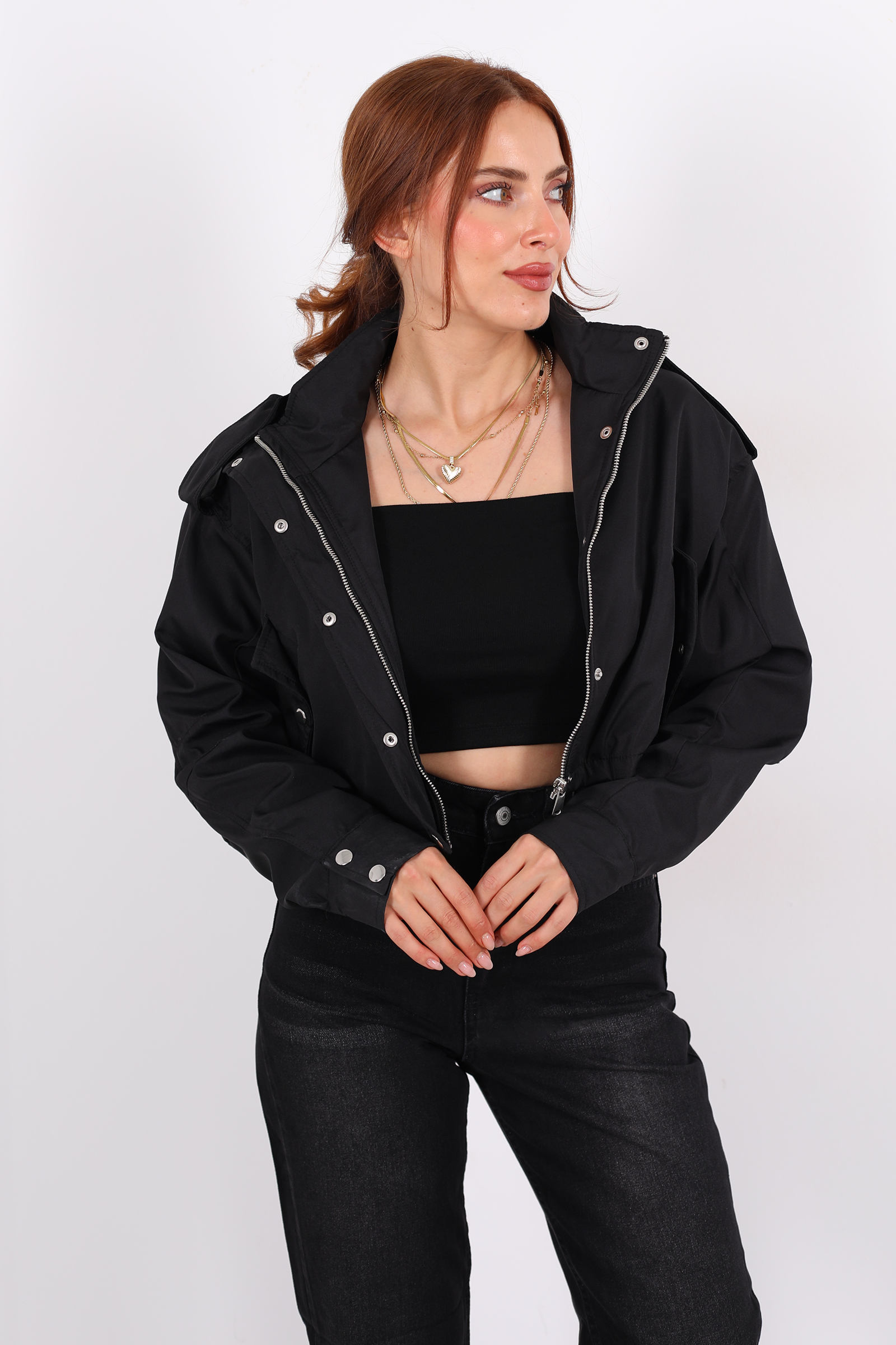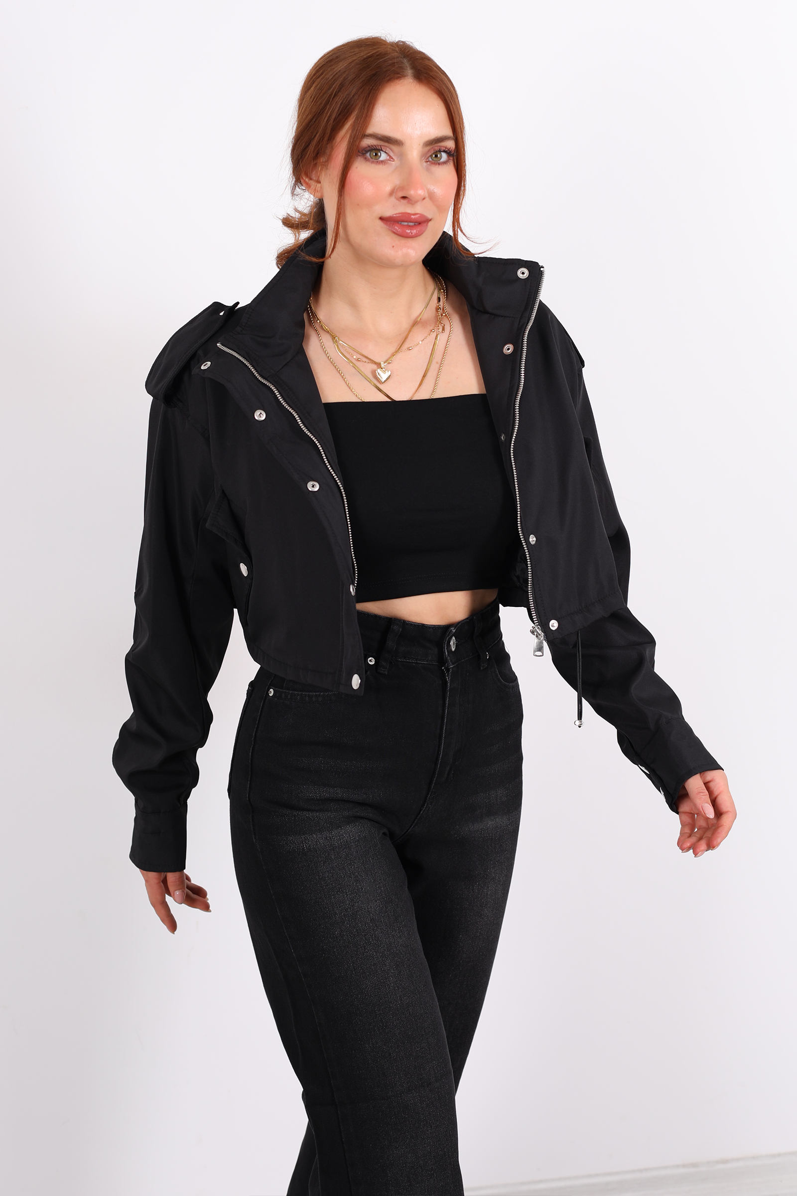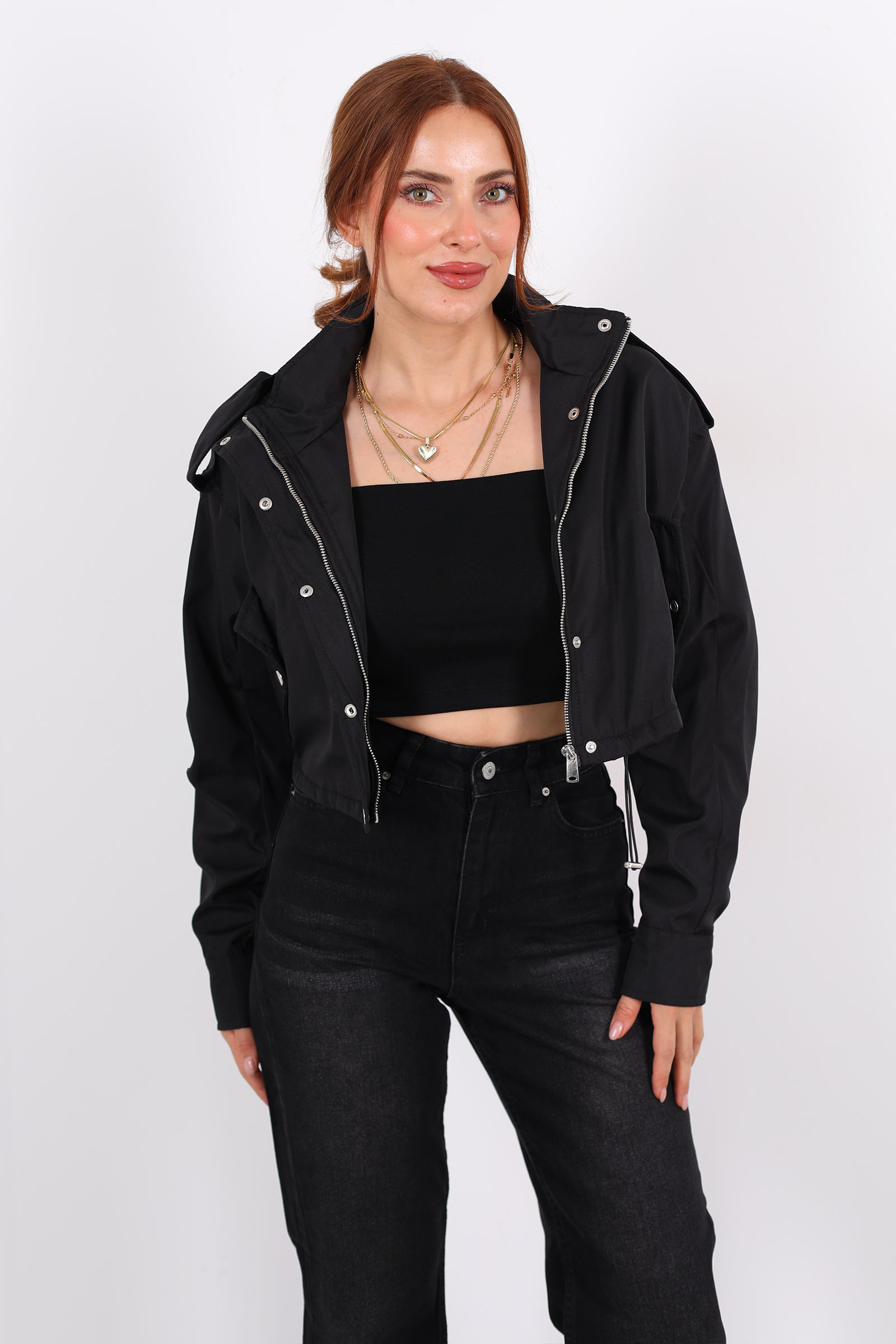 Zarif siyah trençkot, çok yönlü yapısı ve estetik detaylarıyla hem günlük giyimde hem de katmanlı ofis stilinde öne çıkıyor. Mat siyah rengi, modern bir duruş kazandırırken çift cep detayı cekete fonksiyonellik ve doku derinliği katıyor. Cepler sadece pratik değildir dikişlerinden itibaren ceketin genel siluetini dengeler, böylece şık ve dengeli bir görünüm ortaya çıkar.