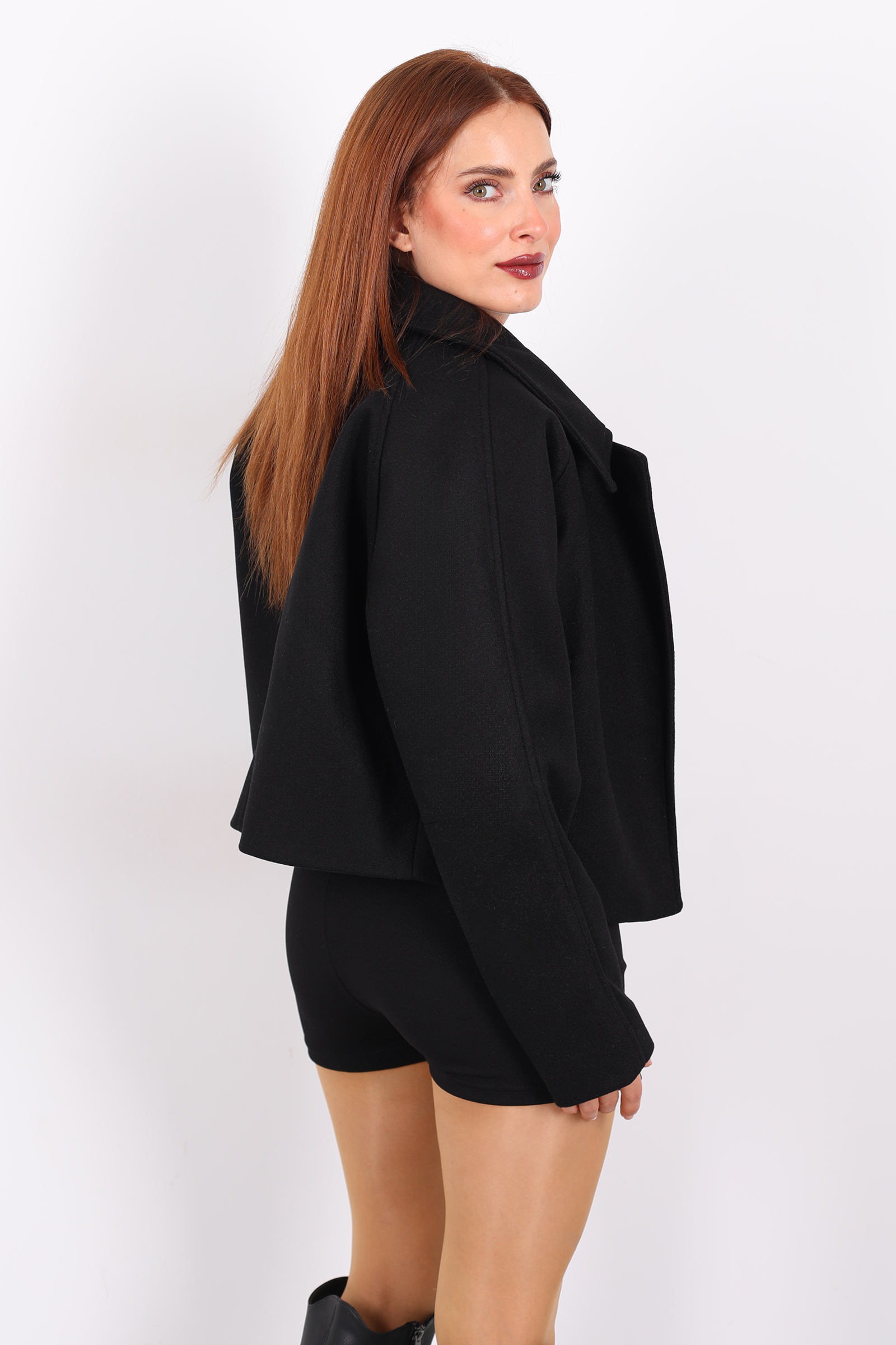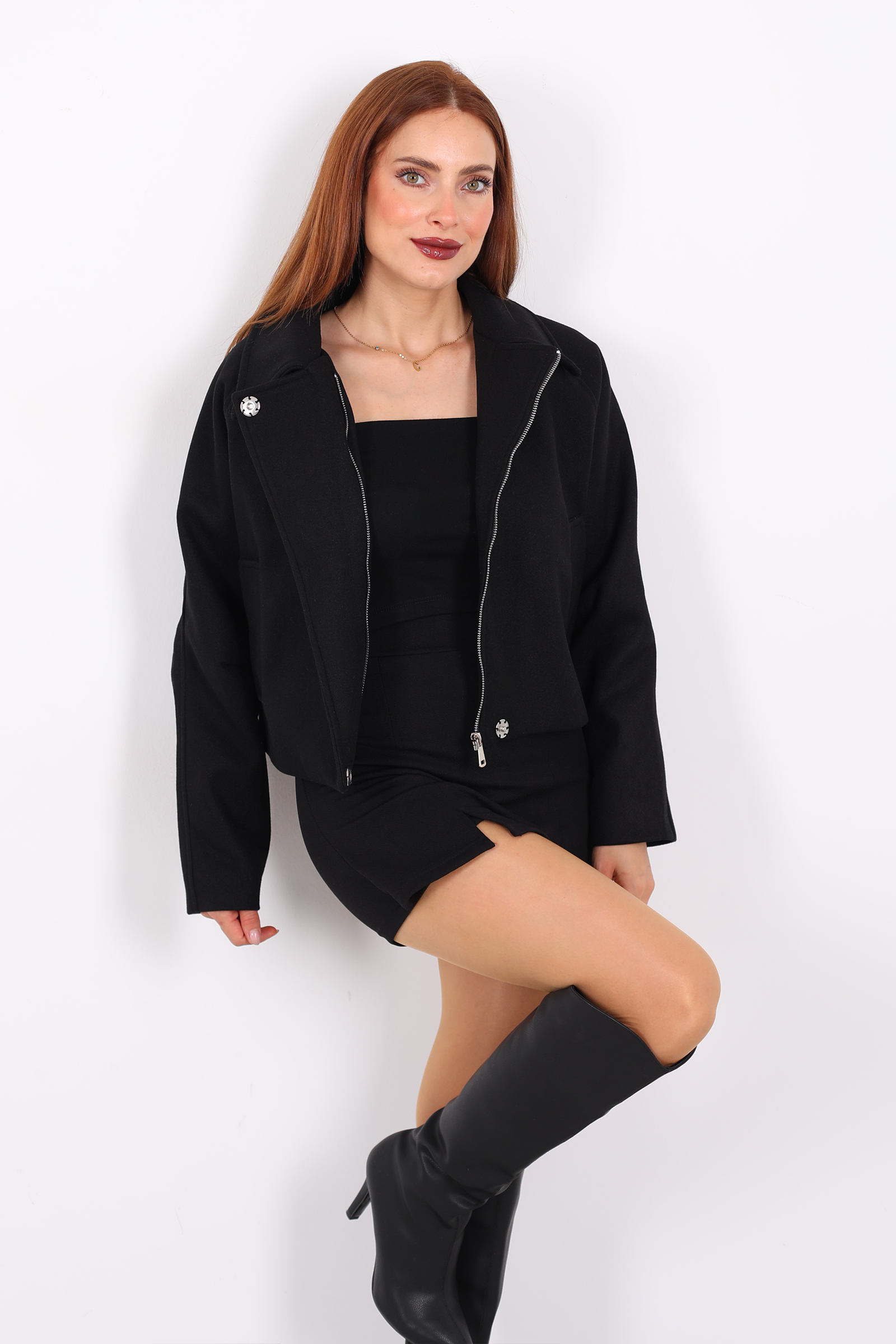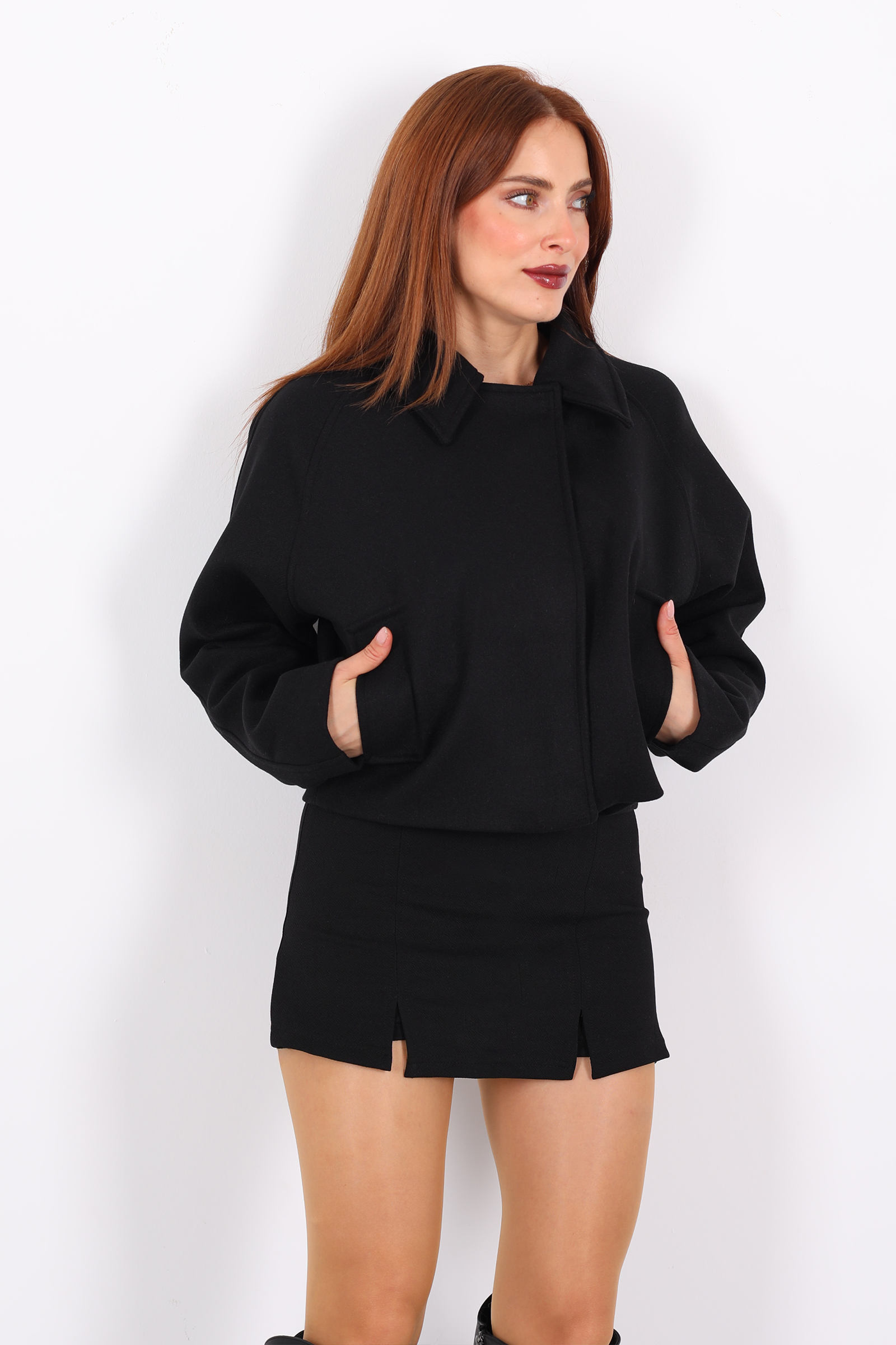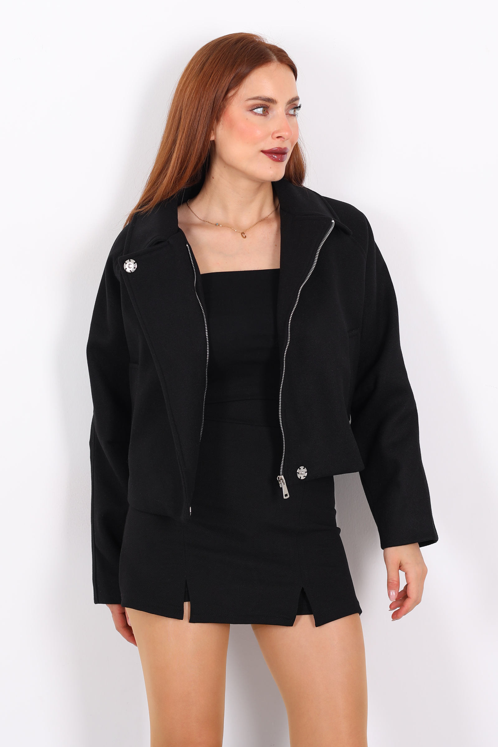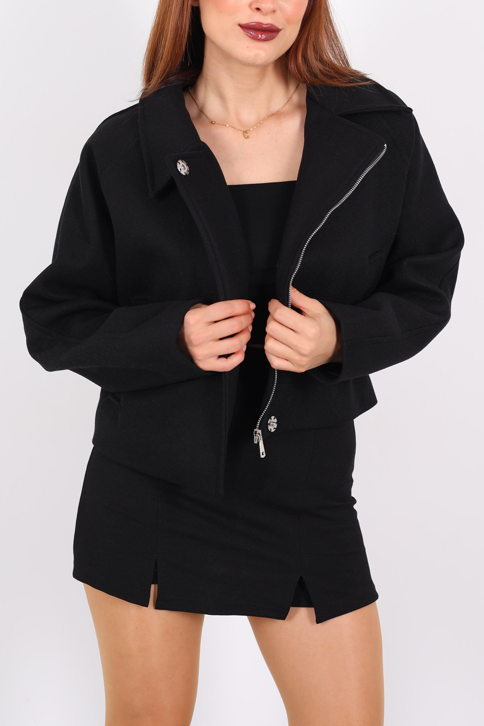 Siyahın zamansız şıklığını modern kesimle buluşturan bu kısa kaşe ceket, minimalist ama etkileyici bir stil sunuyor. Hafif tok dokusu, soğuk havalarda sıcaklık sağlarken, önden fermuar ve yan cepler cekete dinamik ve sportif bir karakter kazandırıyor. Kısa boy kesimi, farklı katmanlarla kombin yapmayı kolaylaştırıyor; oversize kazakların veya ince bluzların üzerinde rahatça taşınabiliyor.
