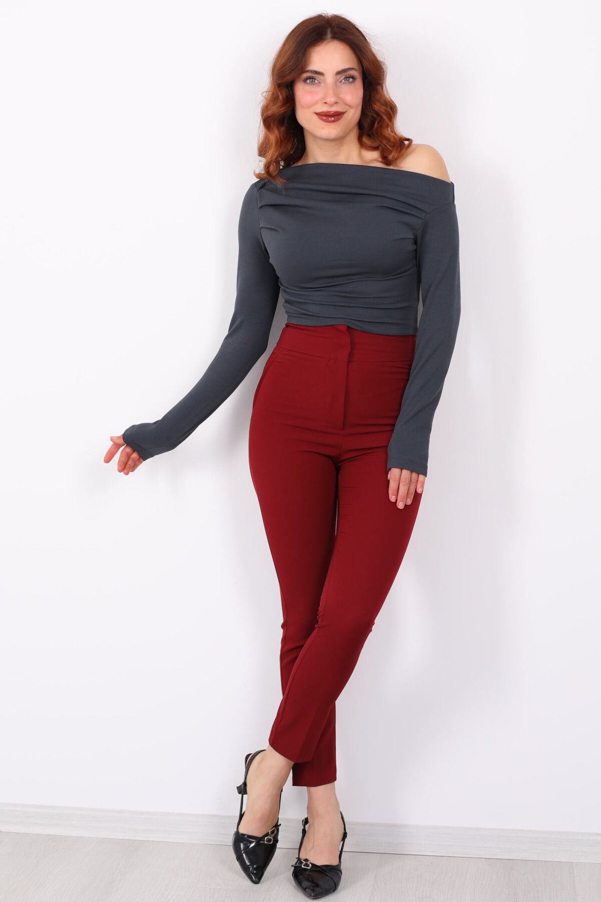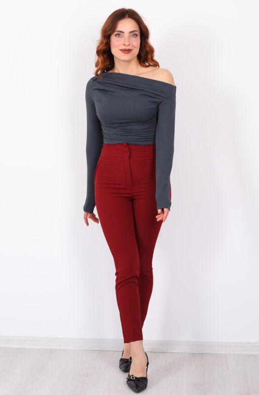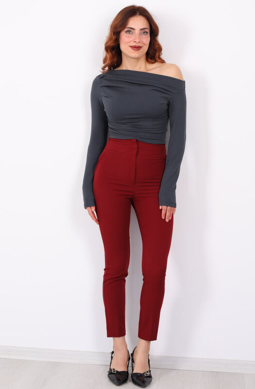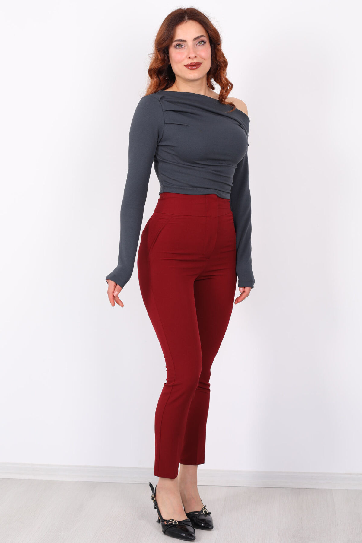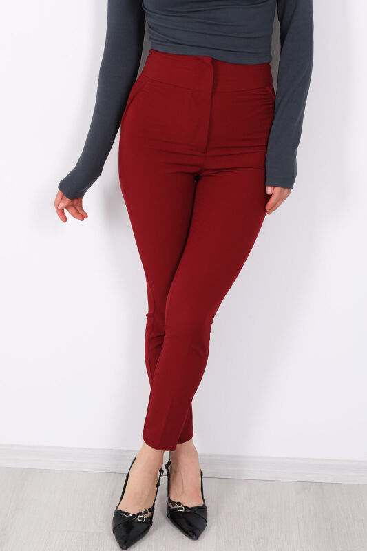 Cepsiz Yüksek Bel Bordo Kadın Kumaş Pantolon