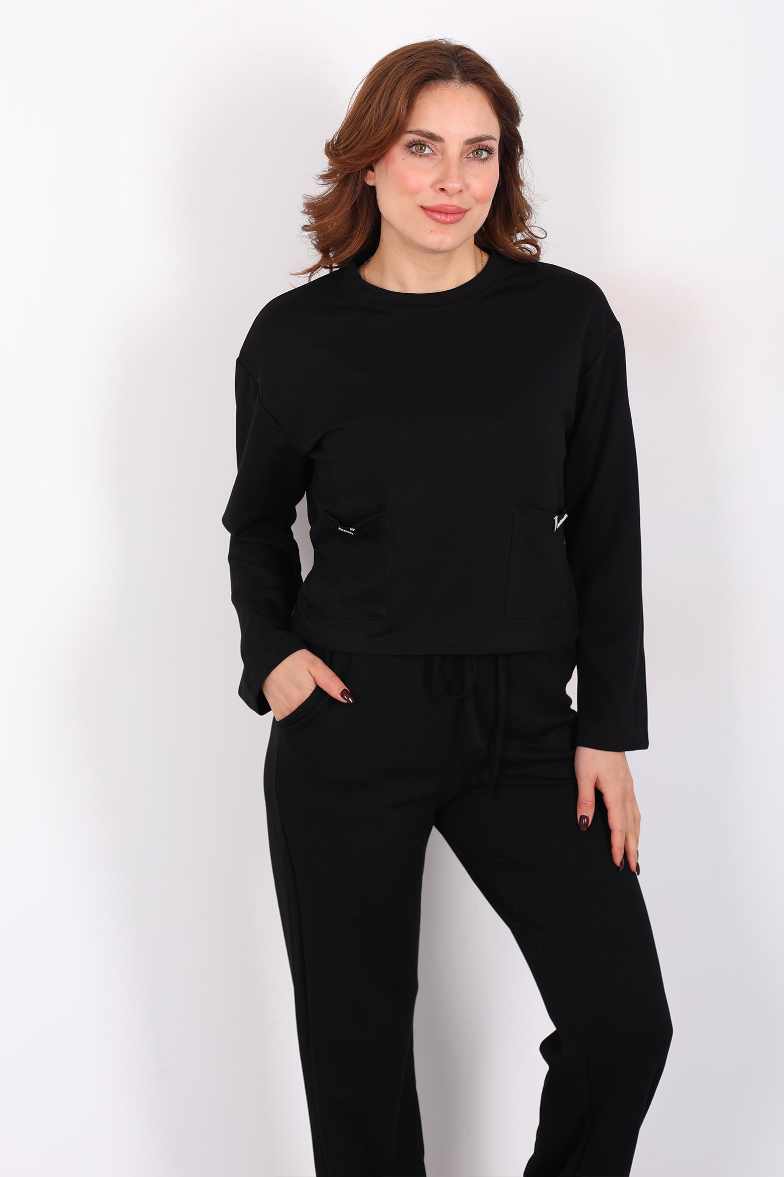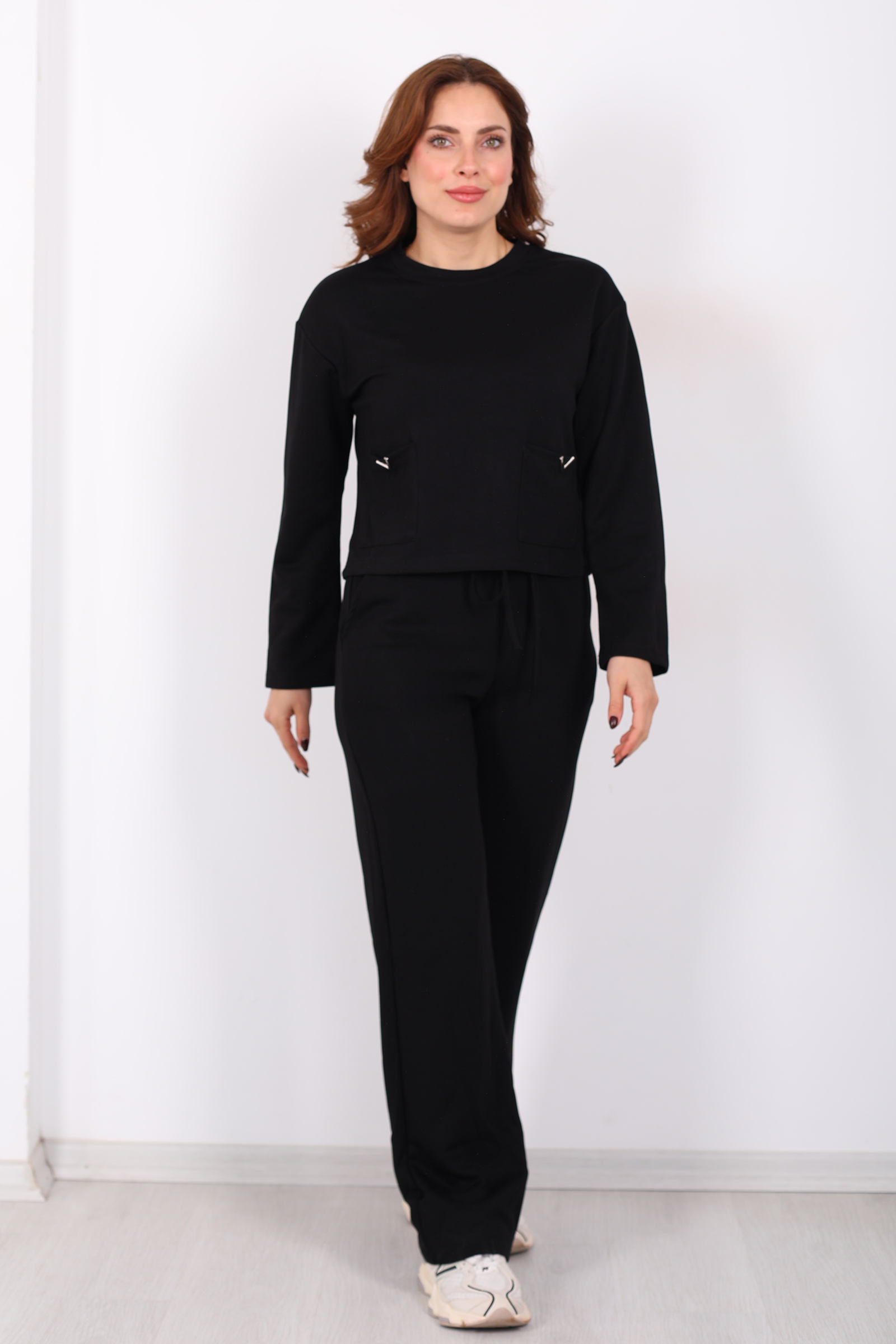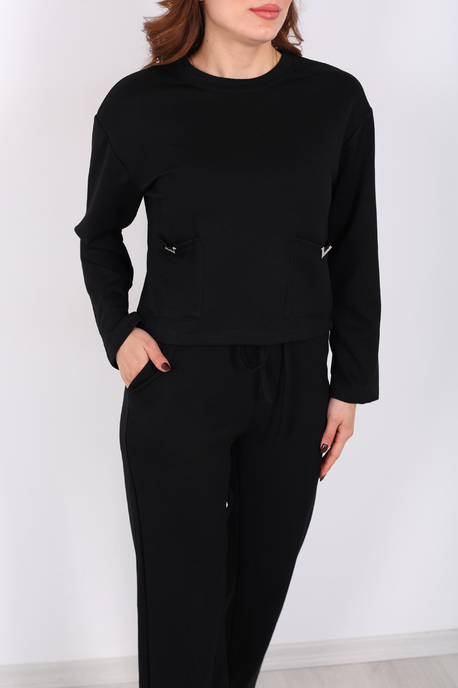 Çift Cepli Aksesuarlı Detaylı Siyah Kadın Pantolon Takım, fonksiyonelliği modern tasarım çizgileriyle buluşturarak günlük stilinizi yükselten göz alıcı bir settir. Çift cepli yapısı, pratik kullanım ve sade bir şıklık sunarken, aksesuar detayları tasarıma özgün bir karakter kazandırır. Siyahın zamansız duruşu, takımın sofistike çizgisiyle birleşerek hem gündelik kombinlerde hem de şehirli stilinizde güçlü bir ifade yaratır.